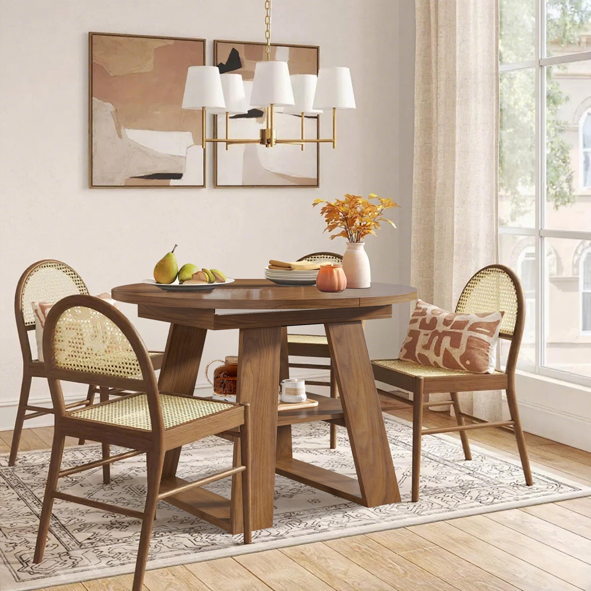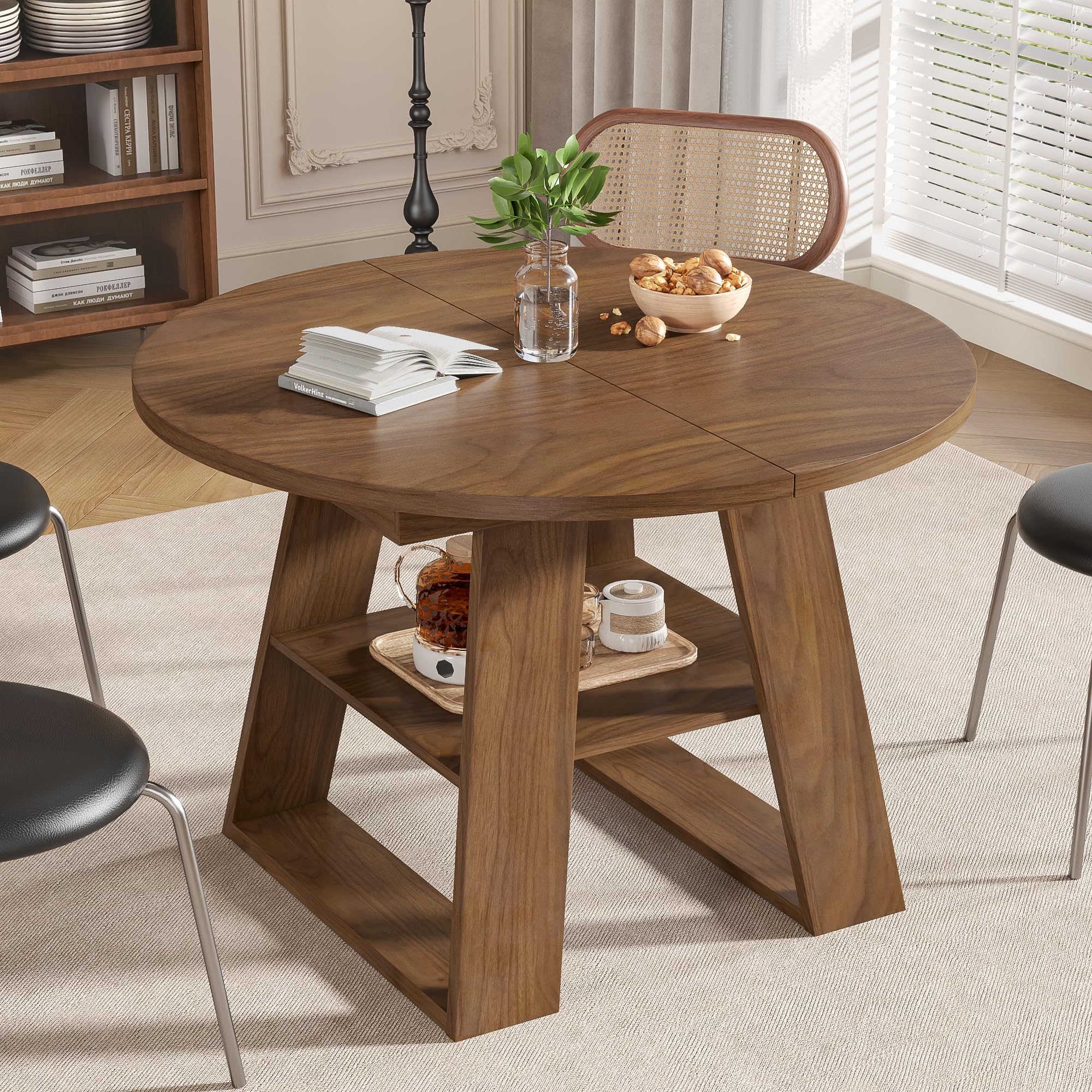 43.3in-59in Extendable Round Dining Table for 4-8,Modern Kitchen Oval Dining Table with Removable Leaves Space Saving,Wood Base with Storage Shelf for Kitchen Living Room (Walnut)