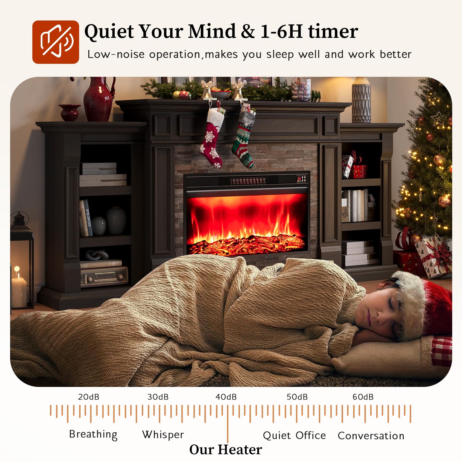 • 【2 Ways of Controlling】Enjoy ultimate convenience with dual control options for the flame, heat, and timer. Operate your electric fireplace using touch buttons or the handy remote control, which works from a maximum distance of 26 ft, allowing you to adjust settings effortlessly from anywhere in the room.