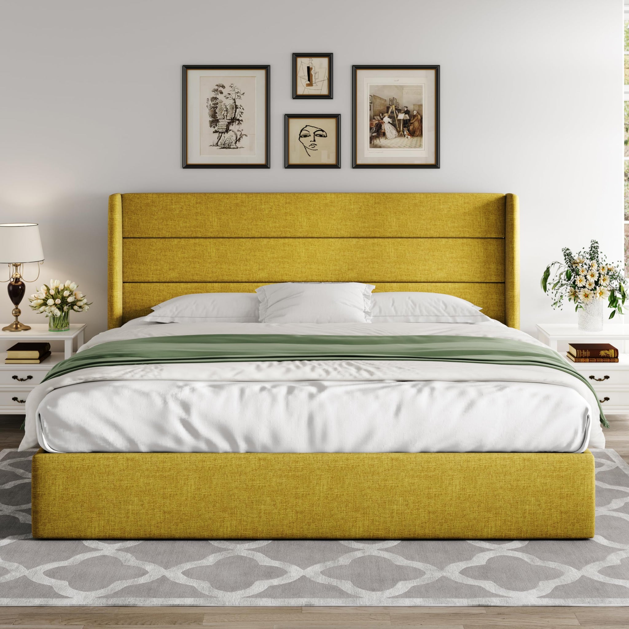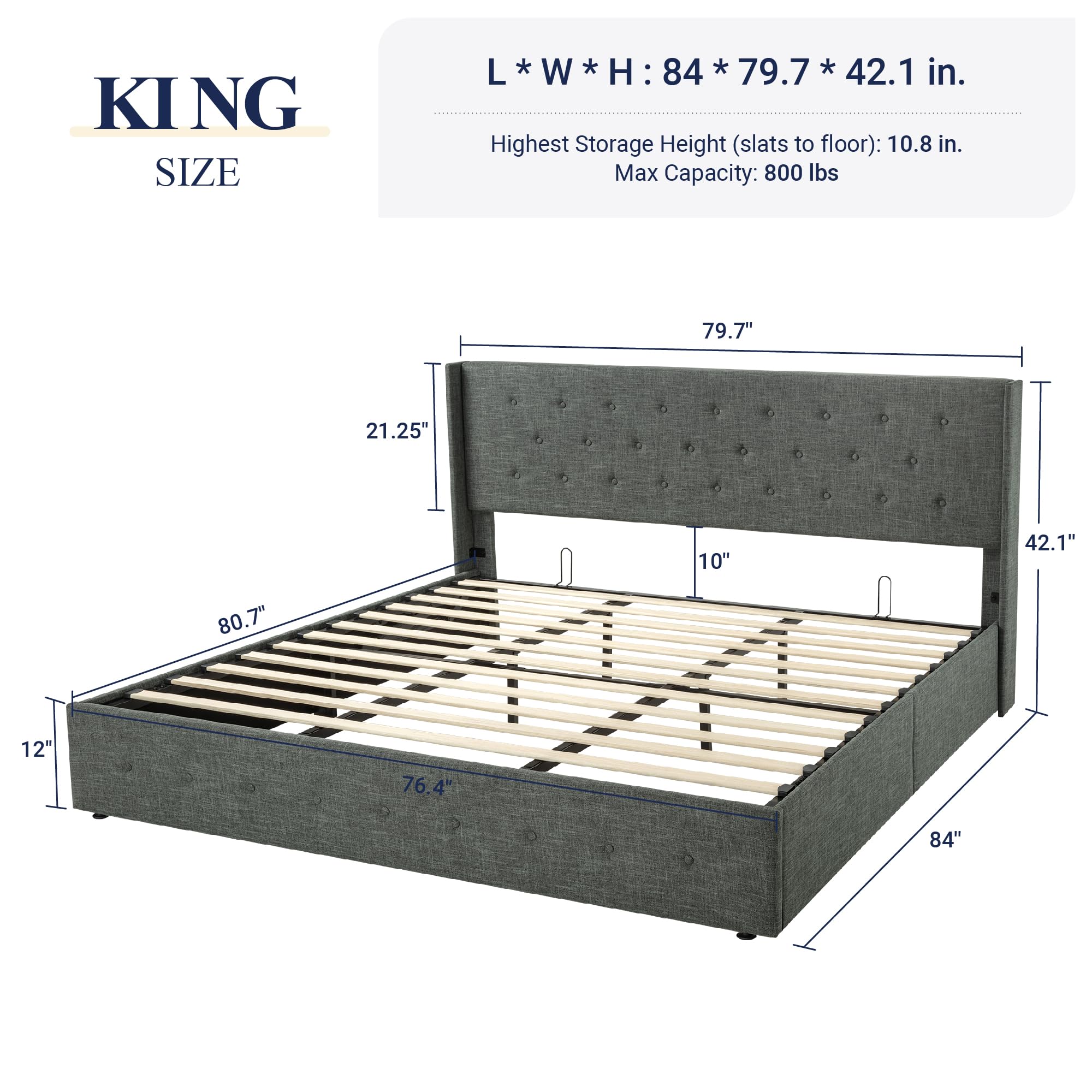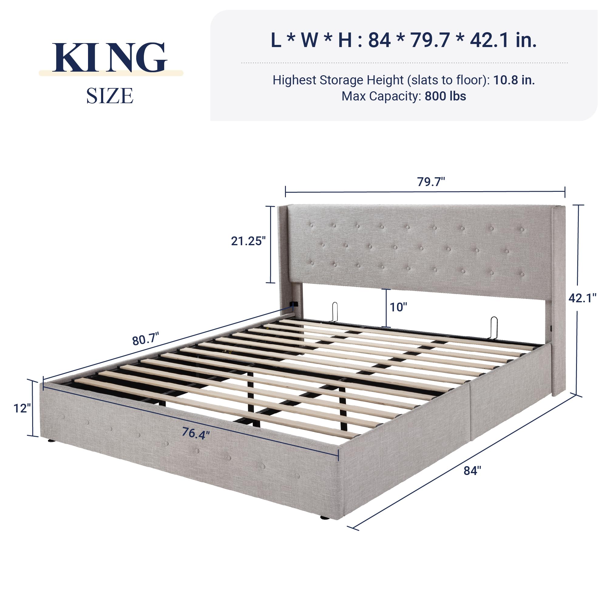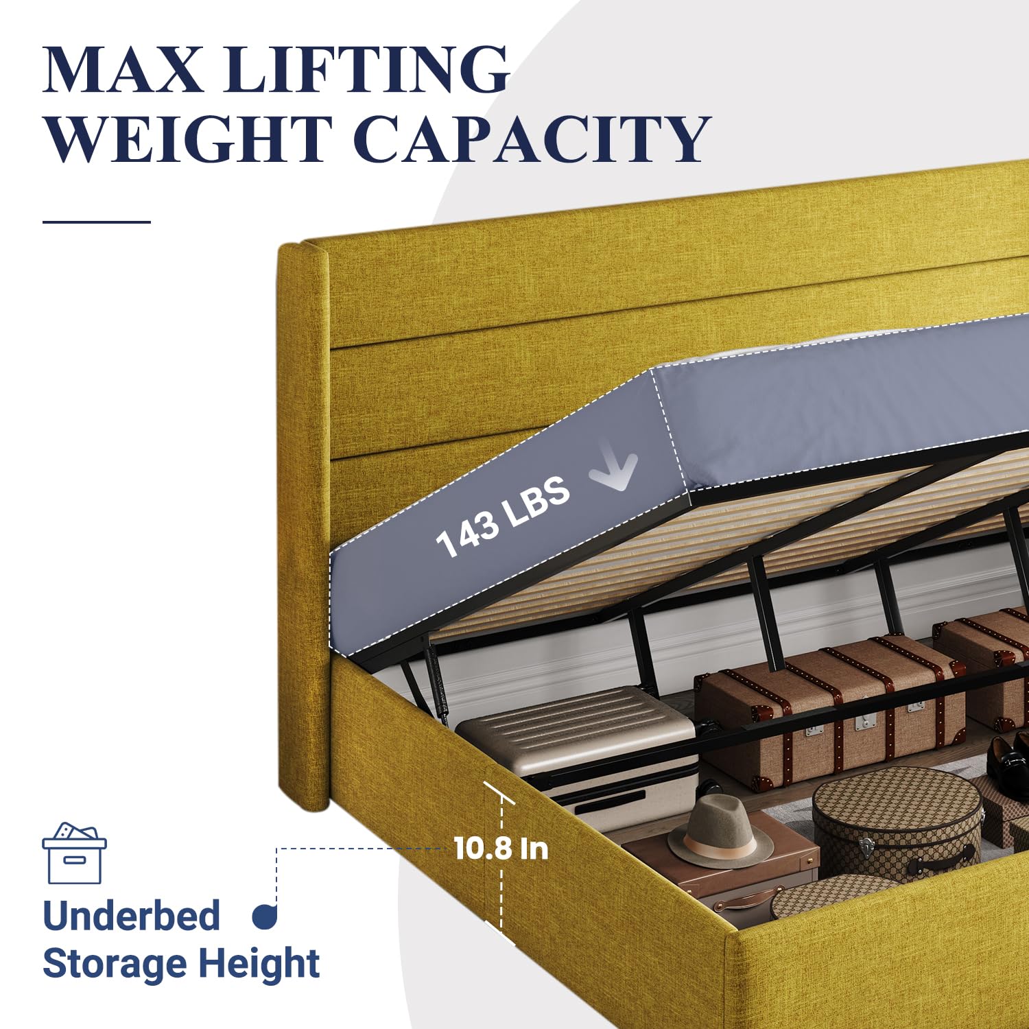 Space-Saving Storage: With its lifting up storage feature, this bed frame provides ample space to store extra bedding, clothing, shoes, and other items, especially helpful for smaller bedrooms or apartments where storage space is limited