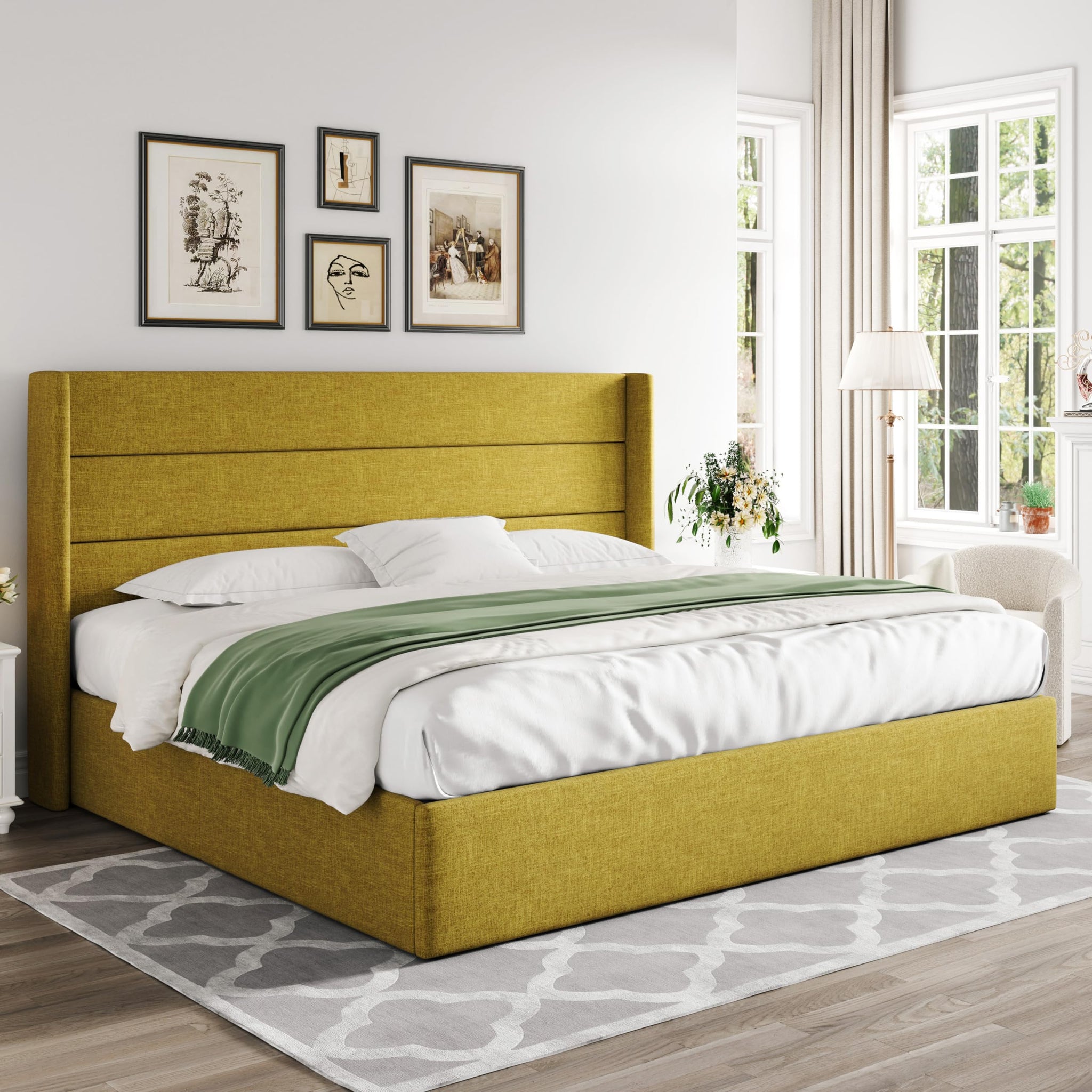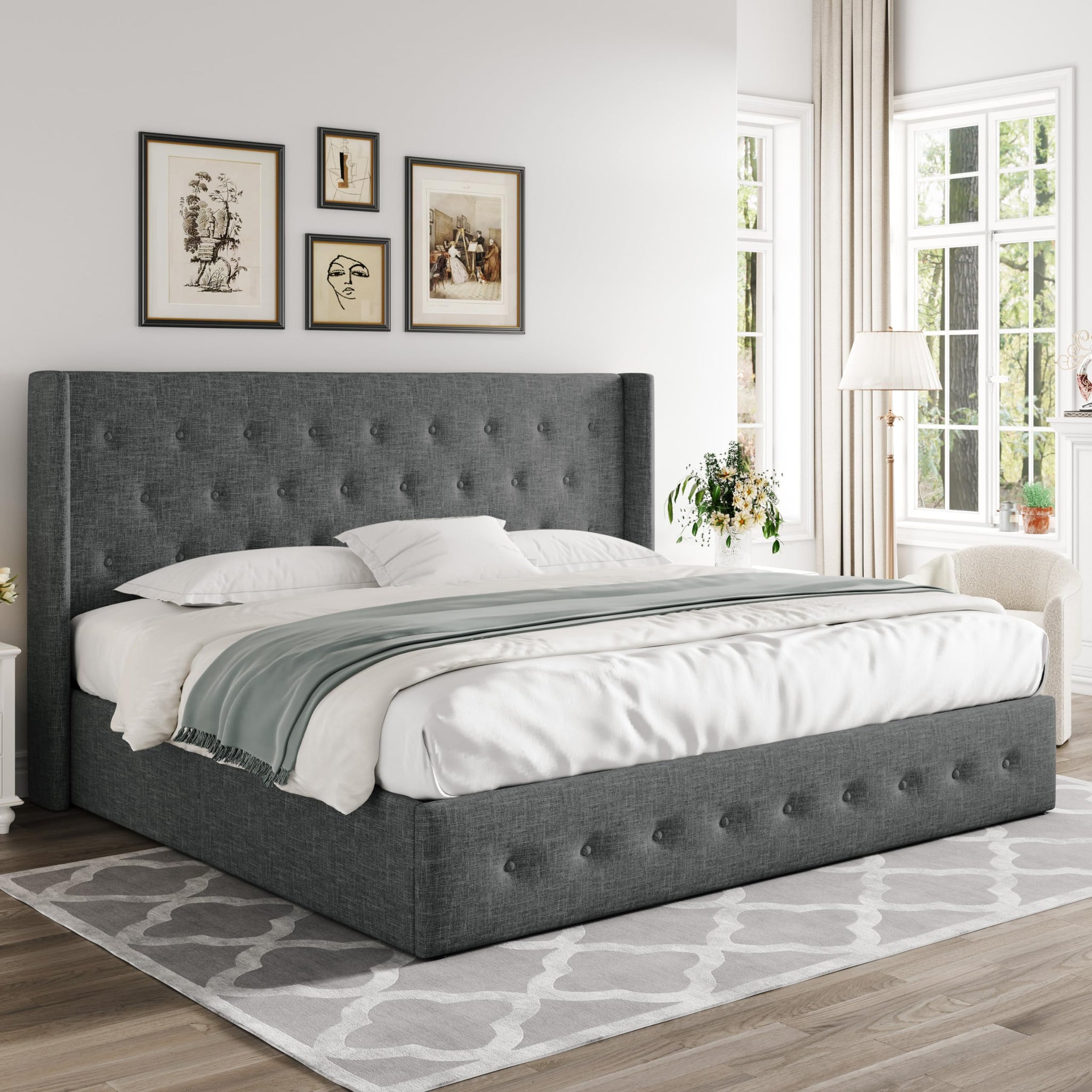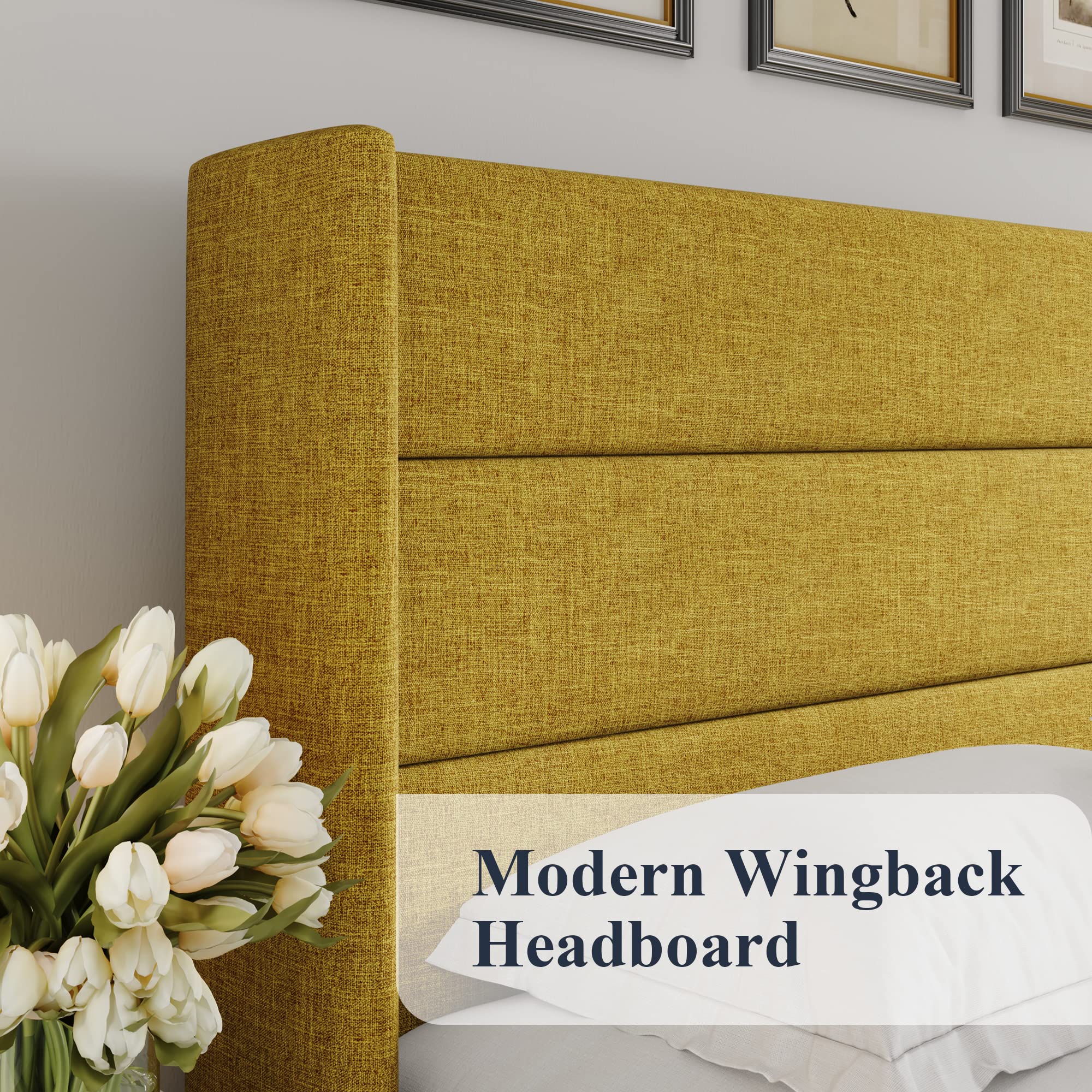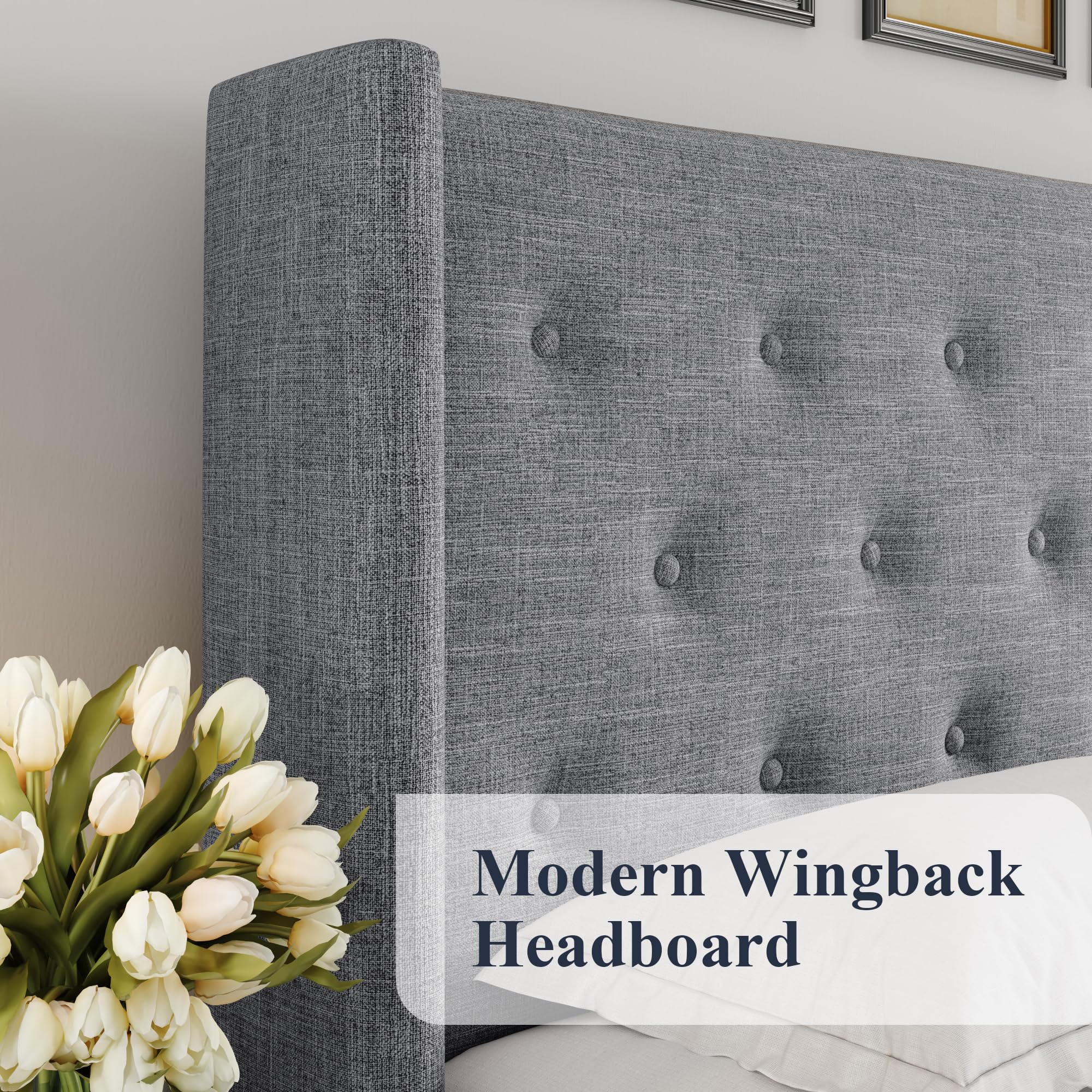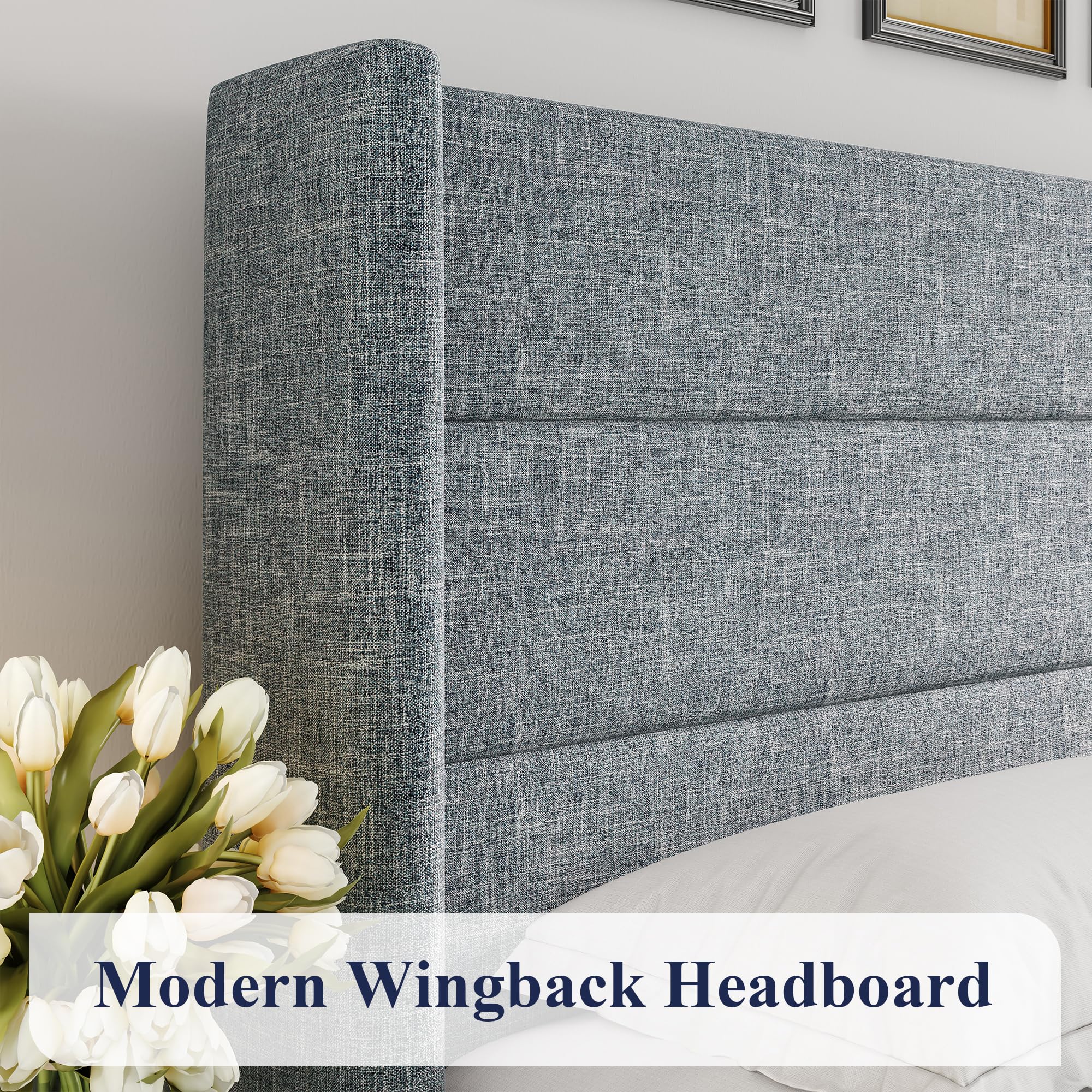 Elegant Headboard: High wingback headboard adds elegant aesthetics to your bedroom. Horizontal channel pattern illuminates stylish and minimalist trends