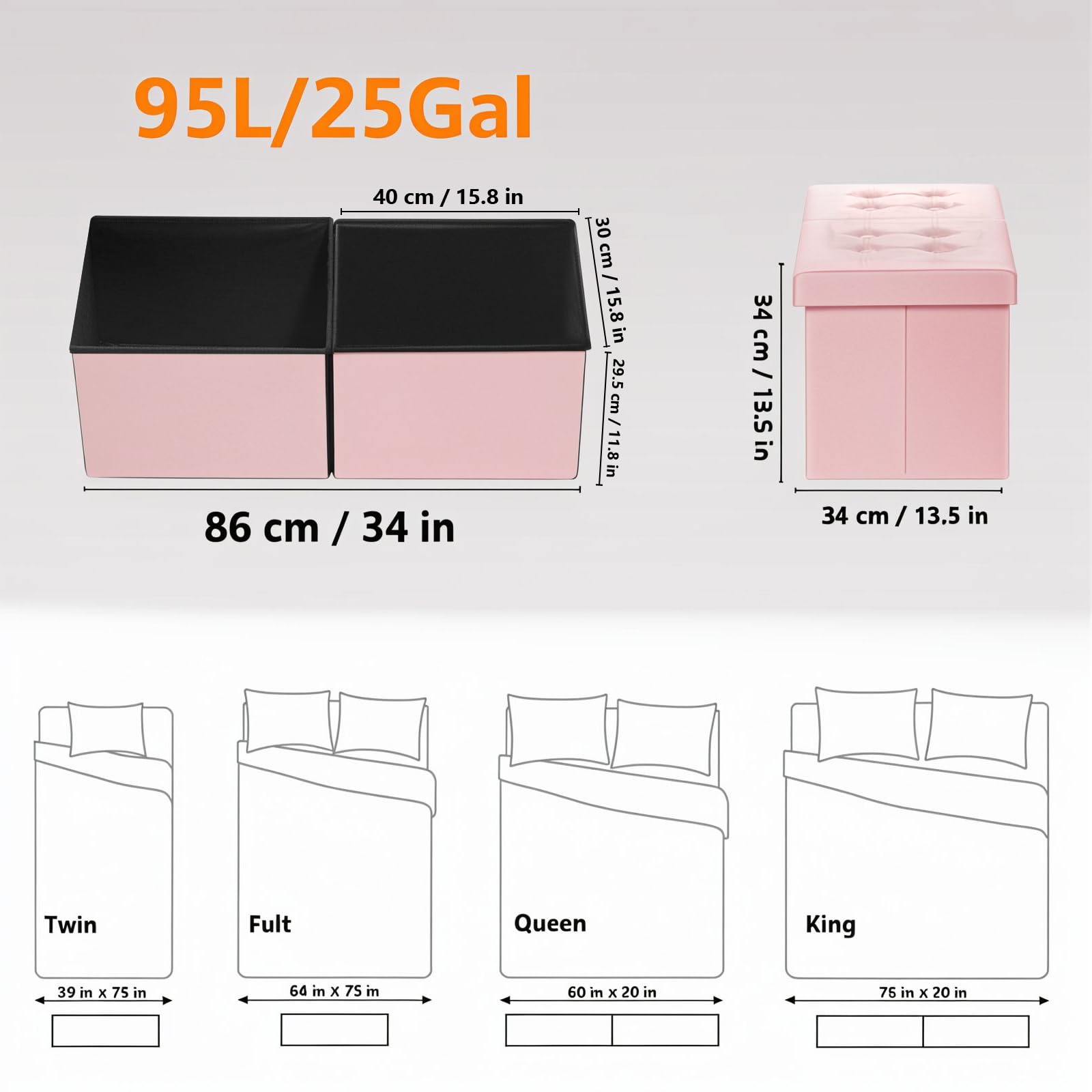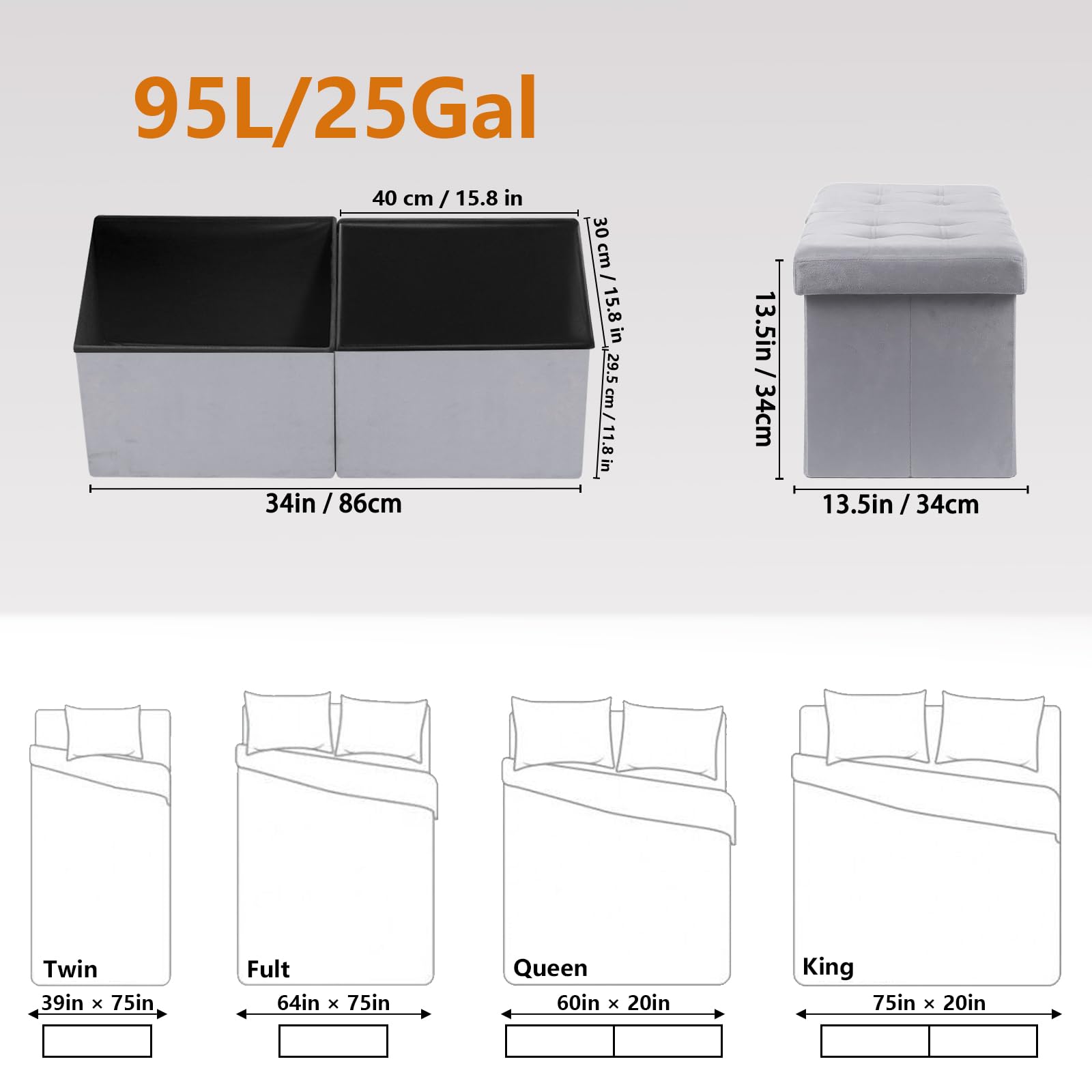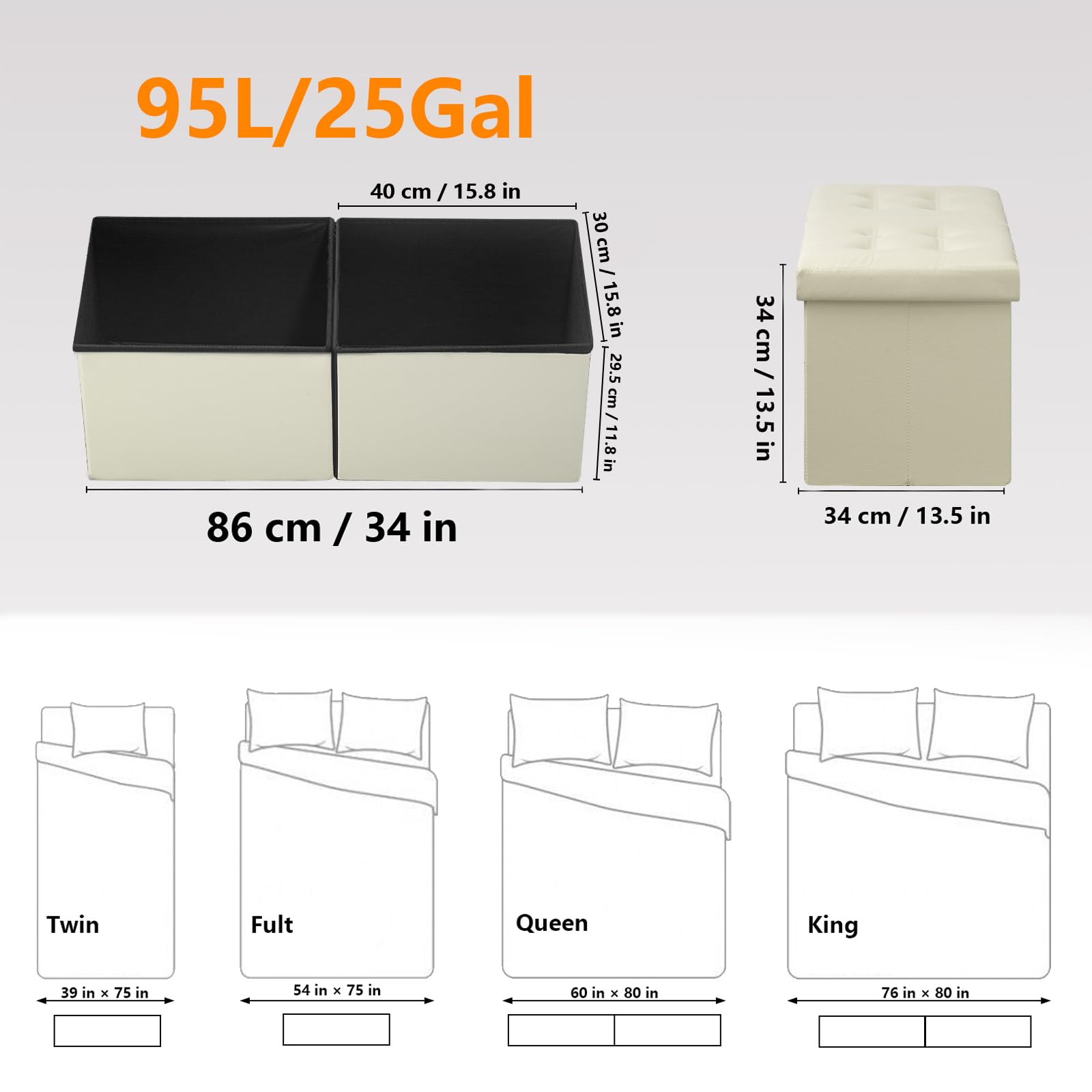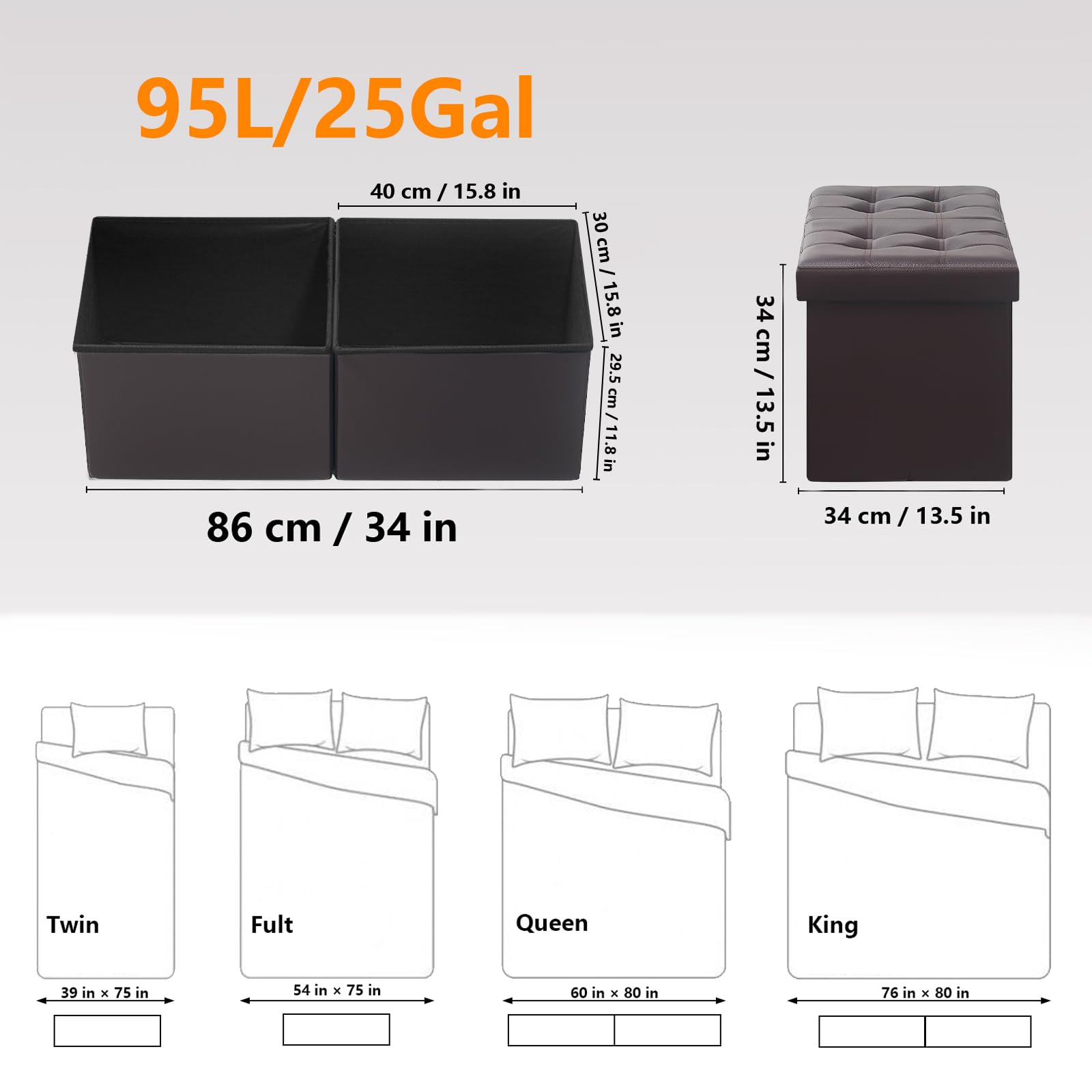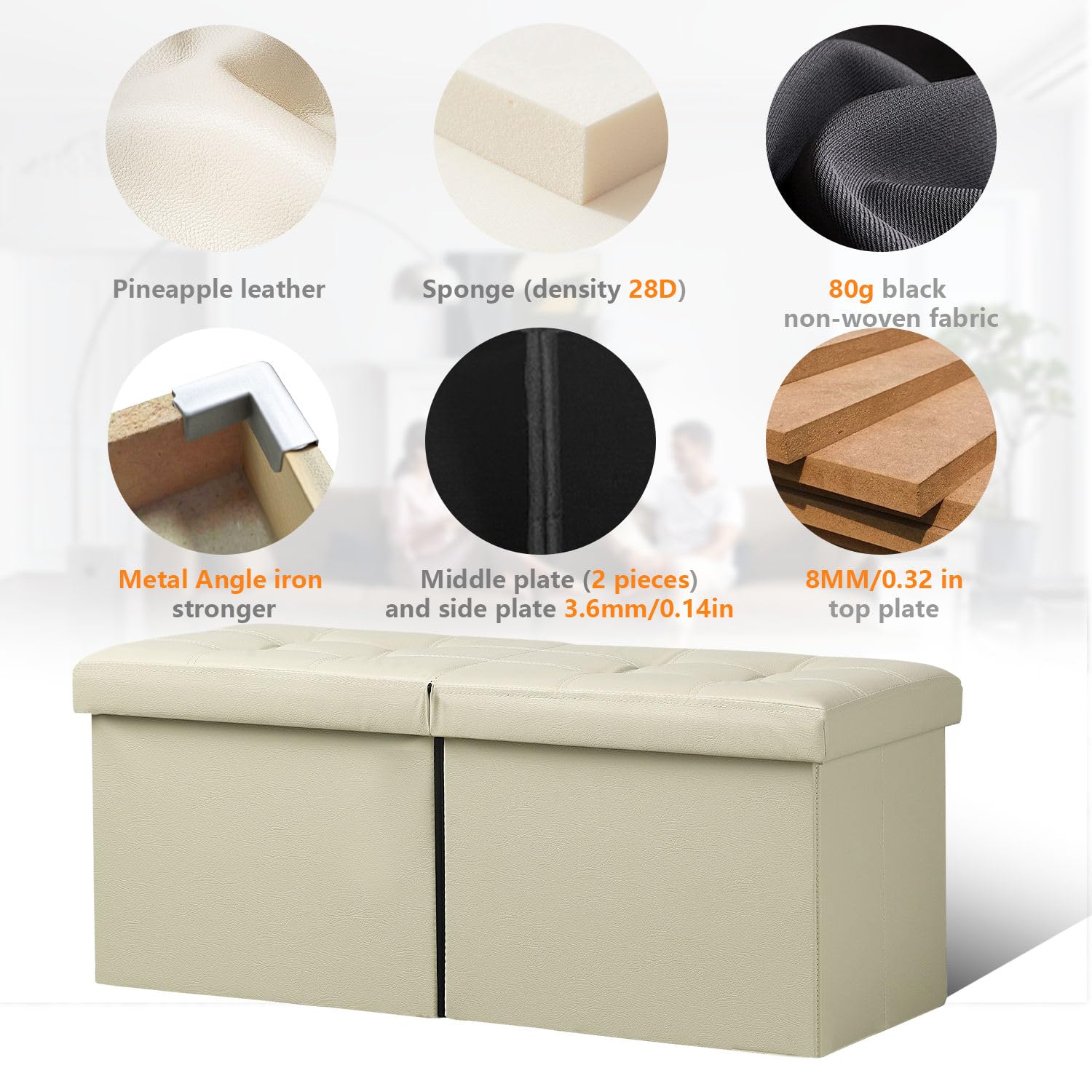 • 【Stylish & Sturdy ottoman with storage 】 Upgraded Leather makes the bench more durable and extends its life. This folding storage footstool can hold up to 2*9.5 Gal. The solid fixed plate and thicker high quality MDF wood give the bench a sturdy and non-deforming frame, even sedentary will not deform