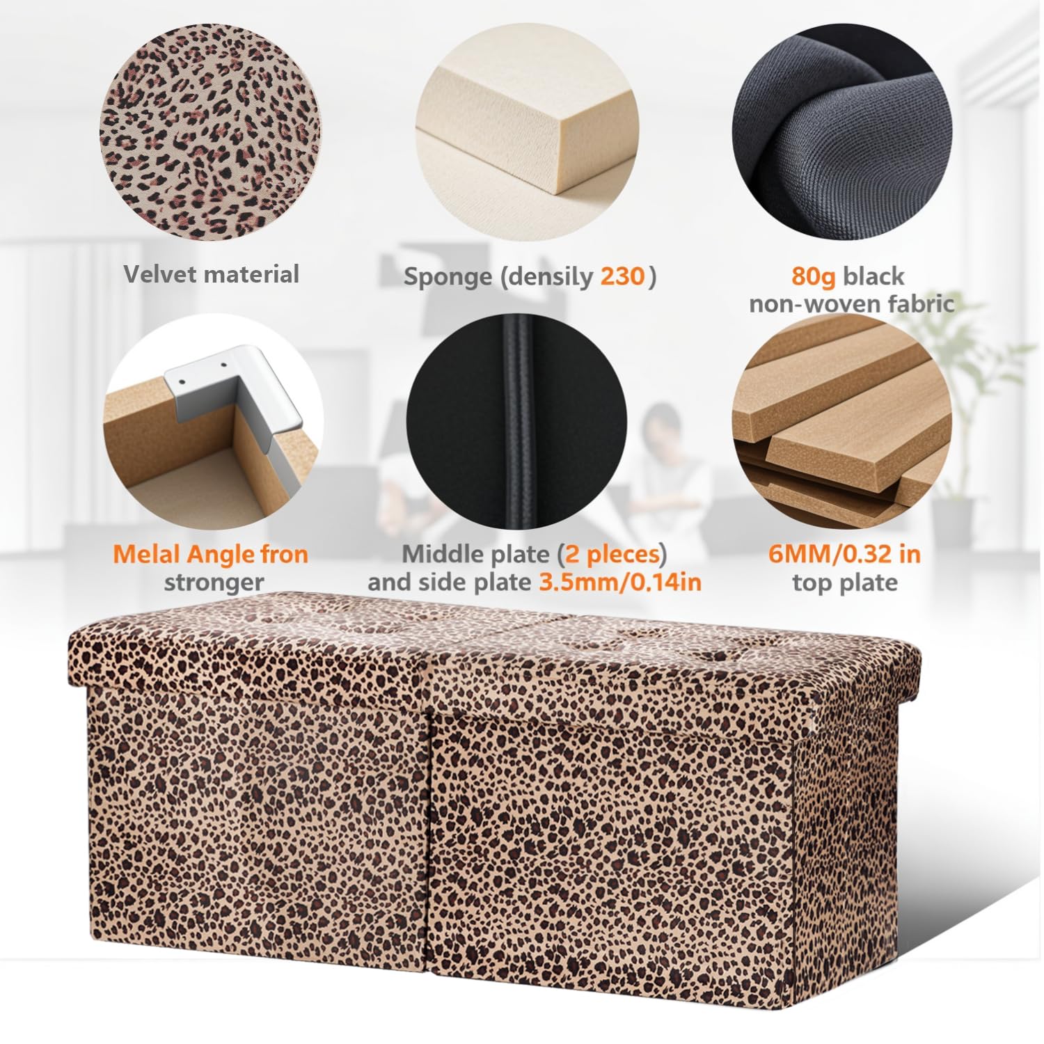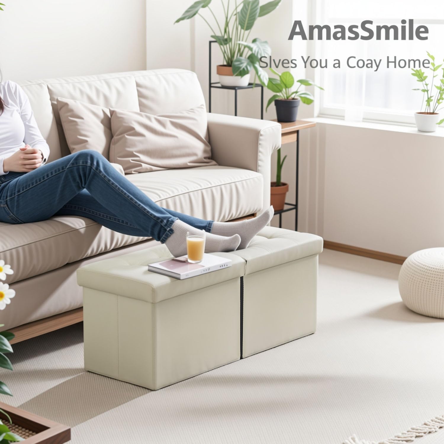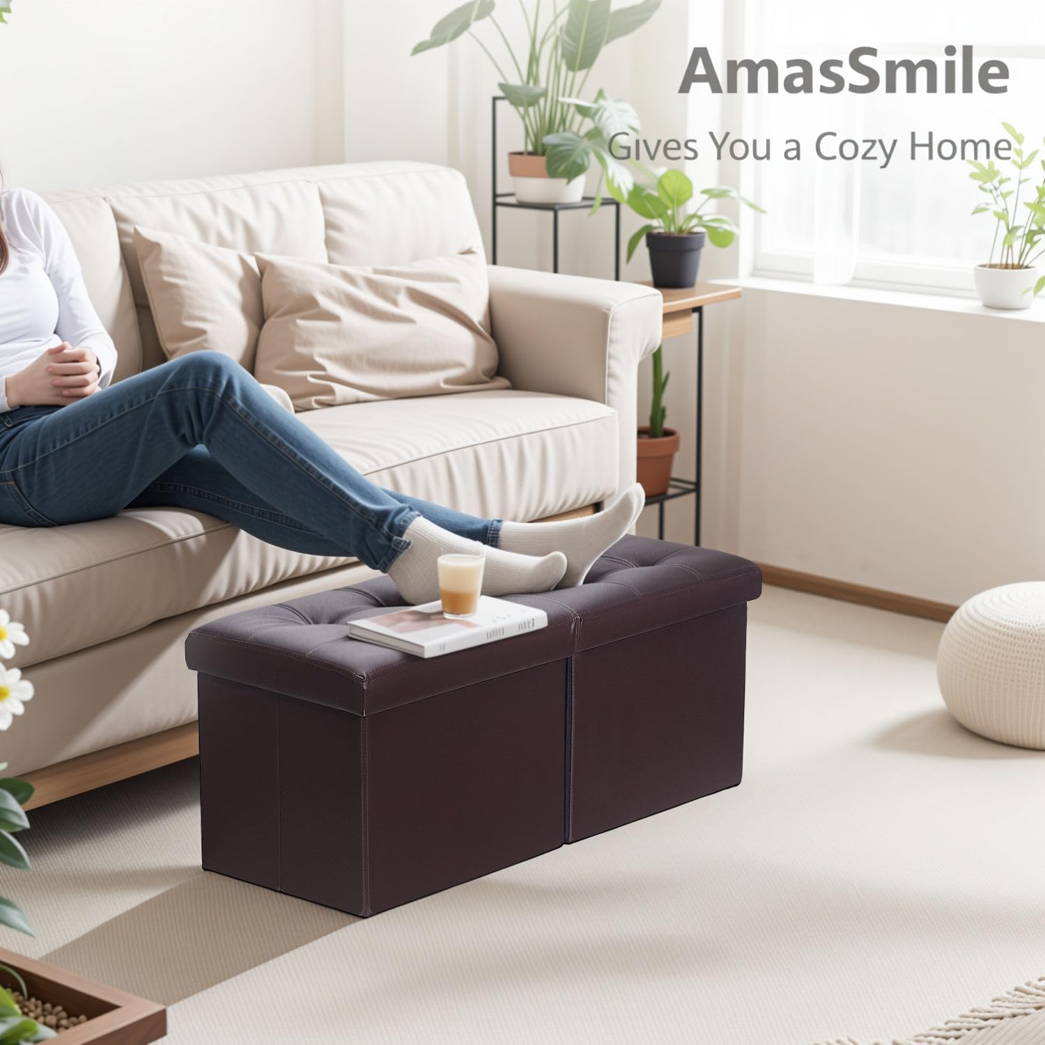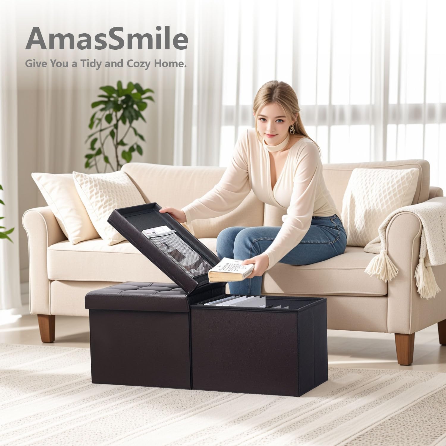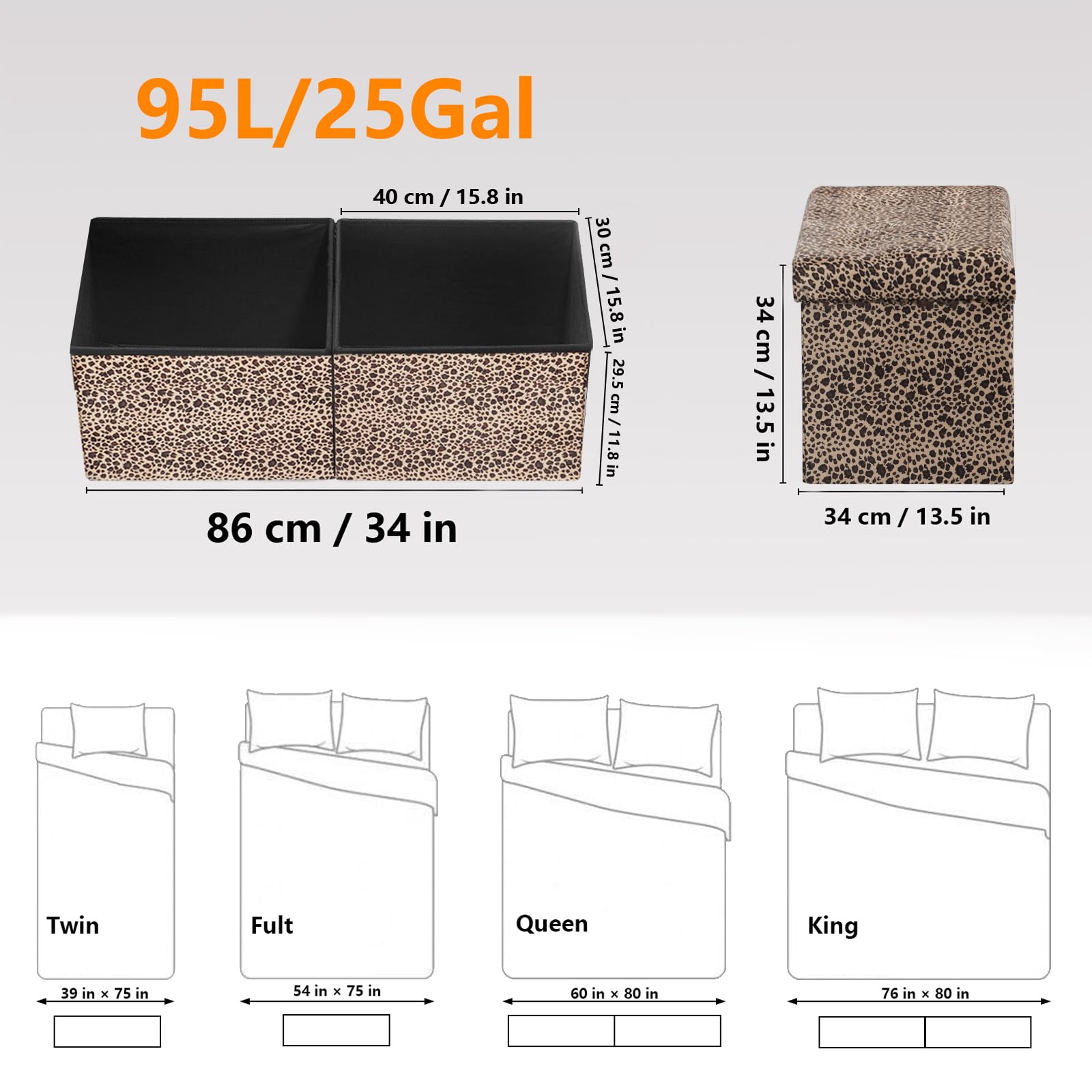 • 【Stylish & Sturdy ottoman with storage 】 Upgraded Leather makes the bench more durable and extends its life. This folding storage footstool can hold up to 2*9.5 Gal. The solid fixed plate and thicker high quality MDF wood give the bench a sturdy and non-deforming frame, even sedentary will not deform