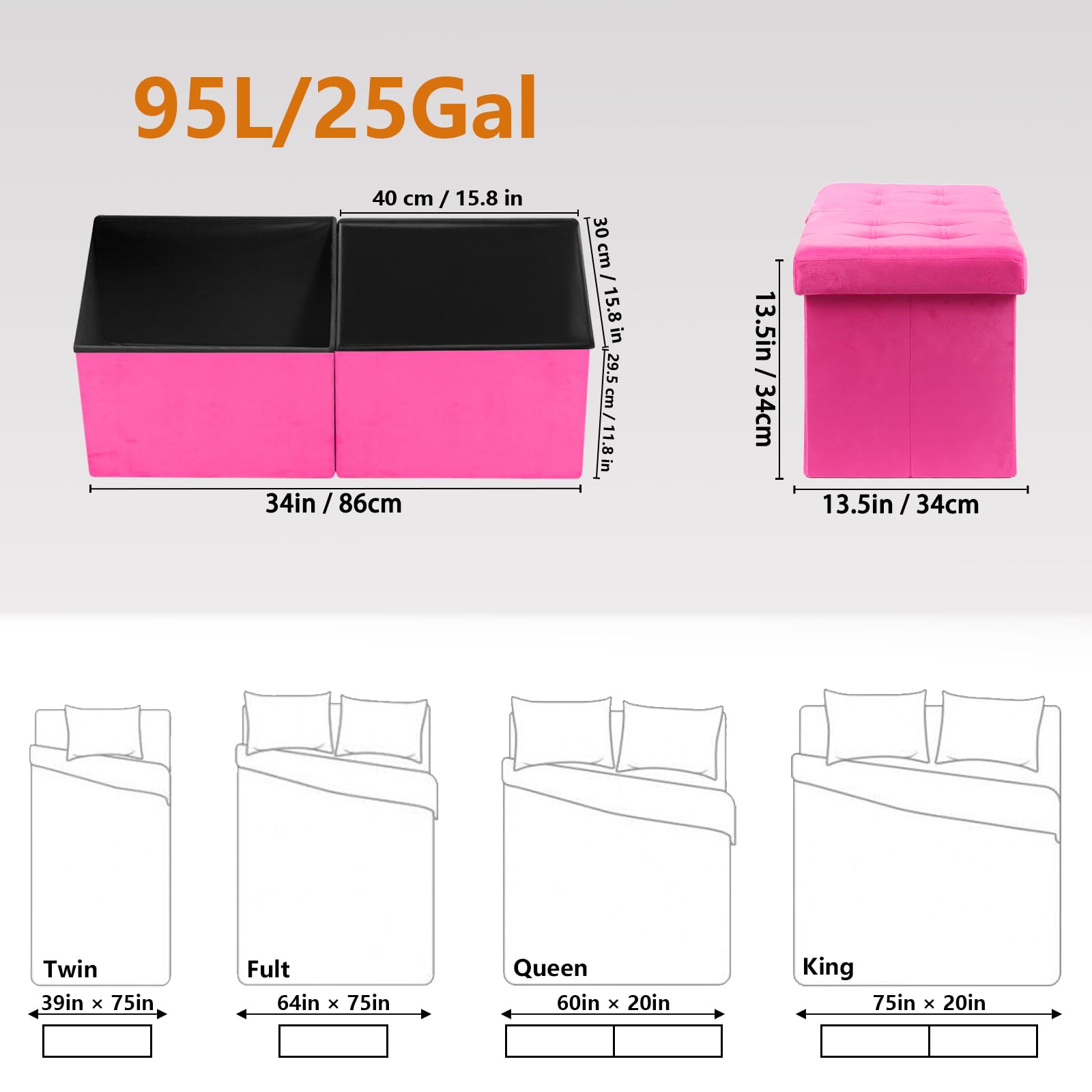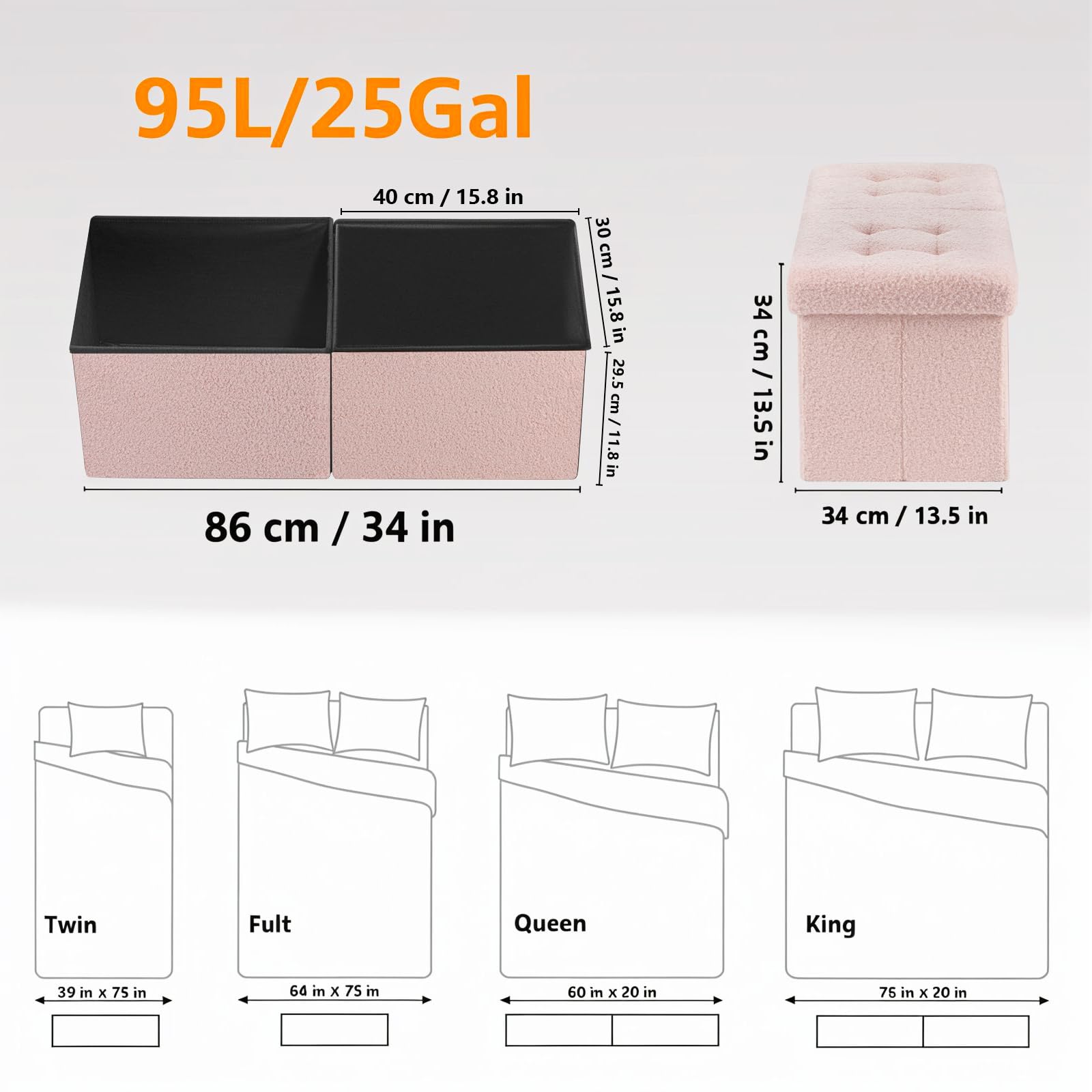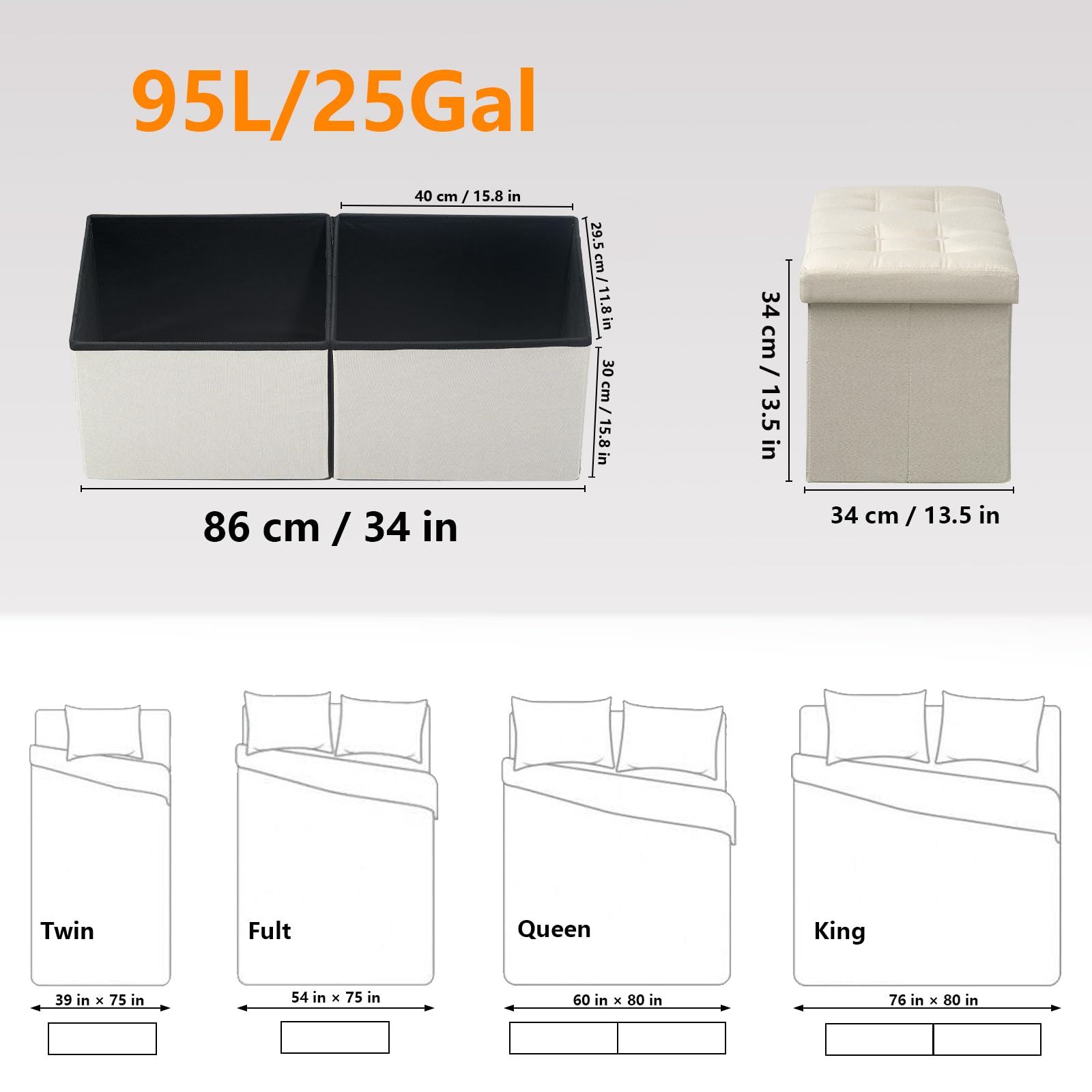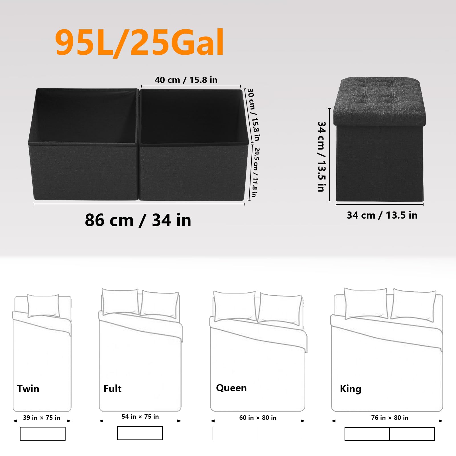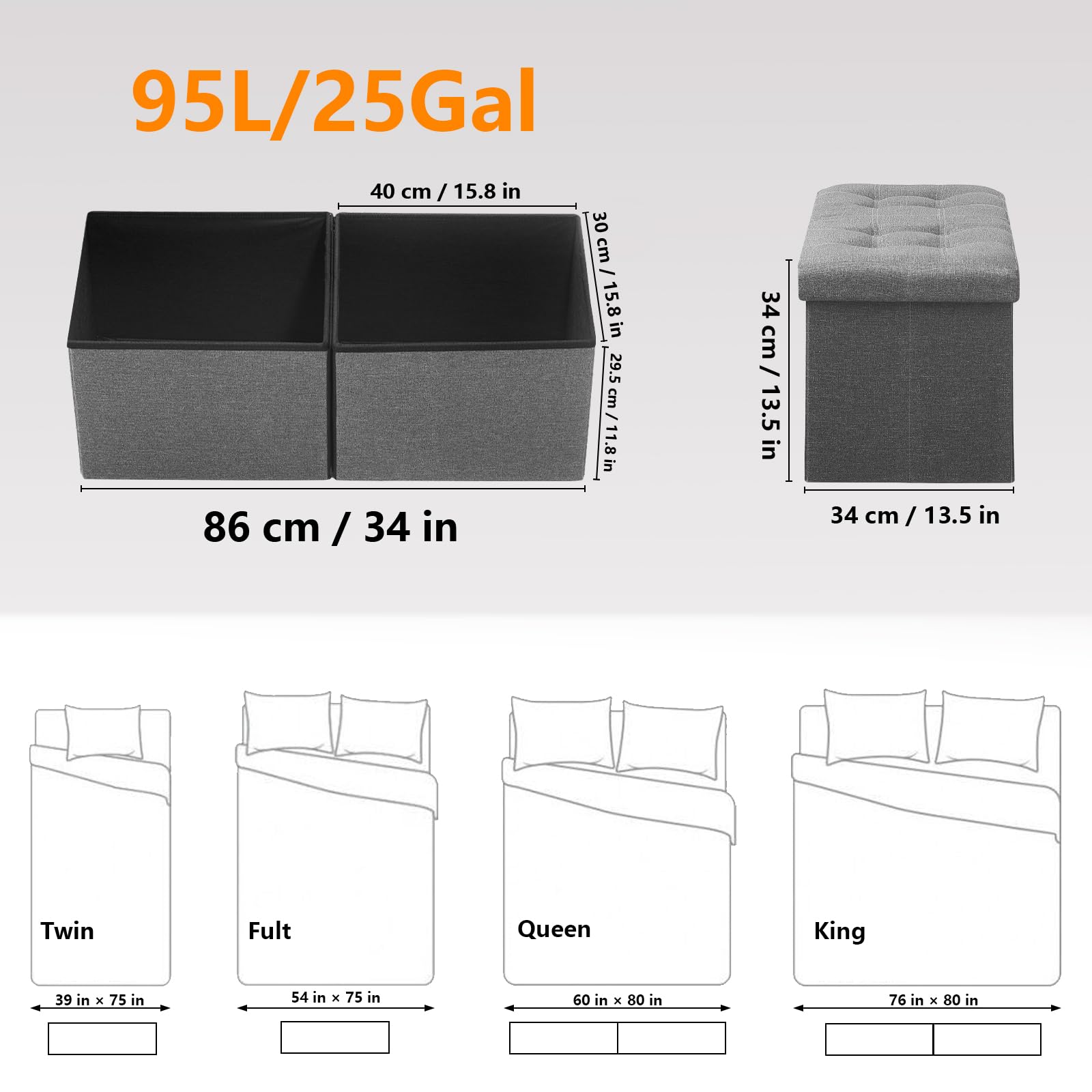 • 【Plenty of Storage Space】The folding ottoman bench sized 34”D x 13"W x 13”H (86 x 34 x 34 cm), can be reduces clutter in the home and allows you to store your blankets, cushions, books and sports equipment in the living room.