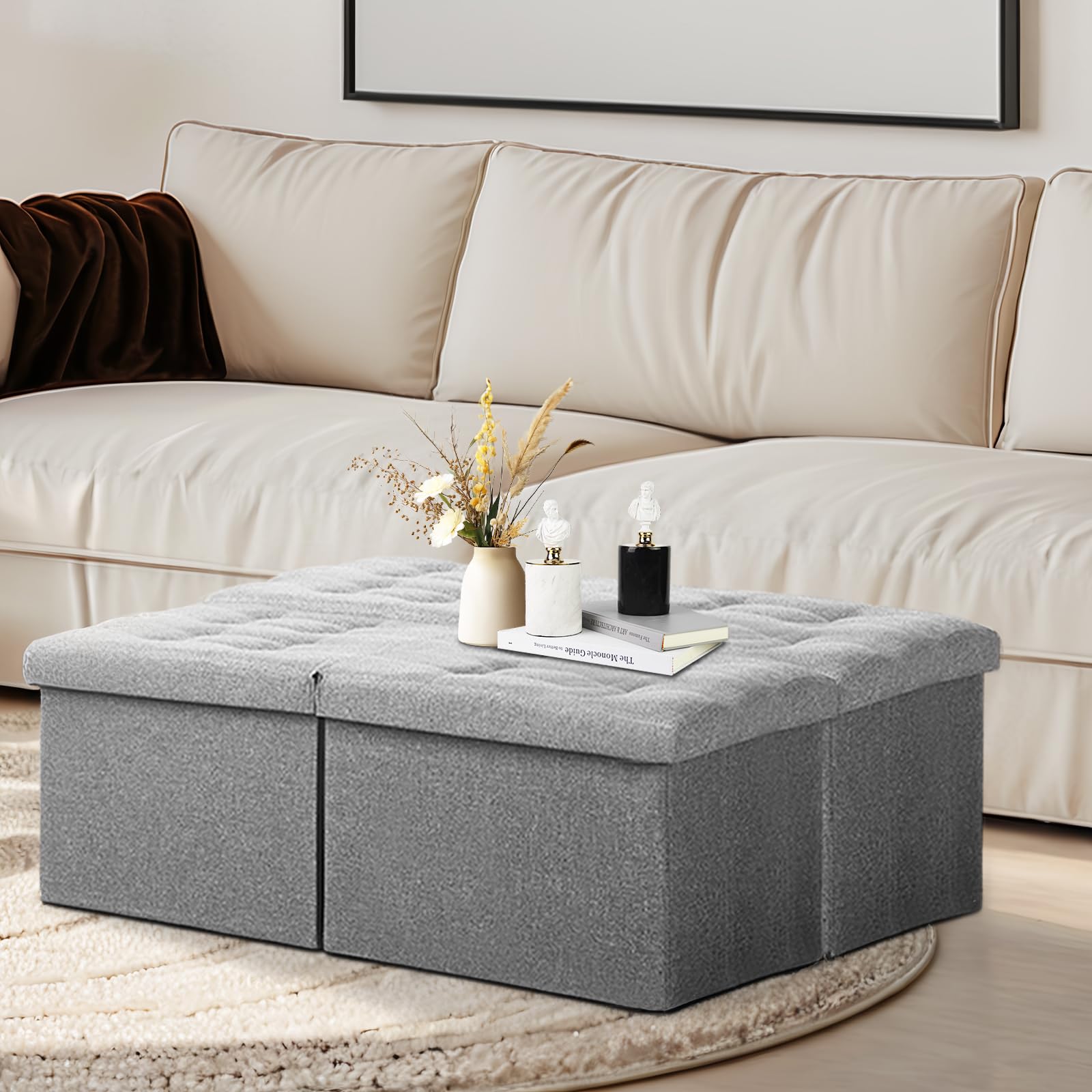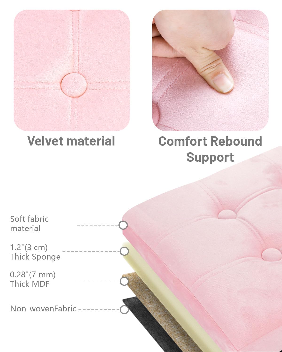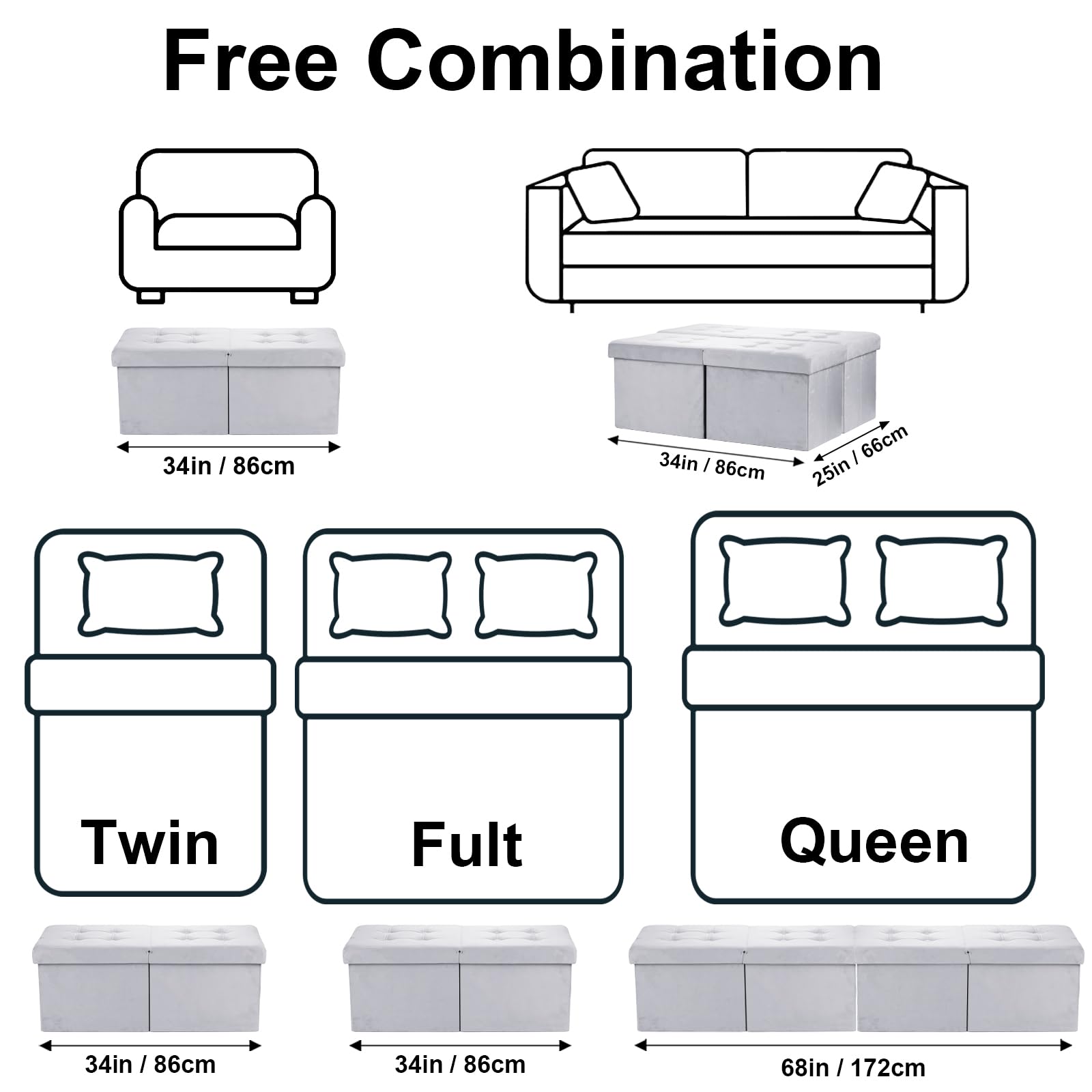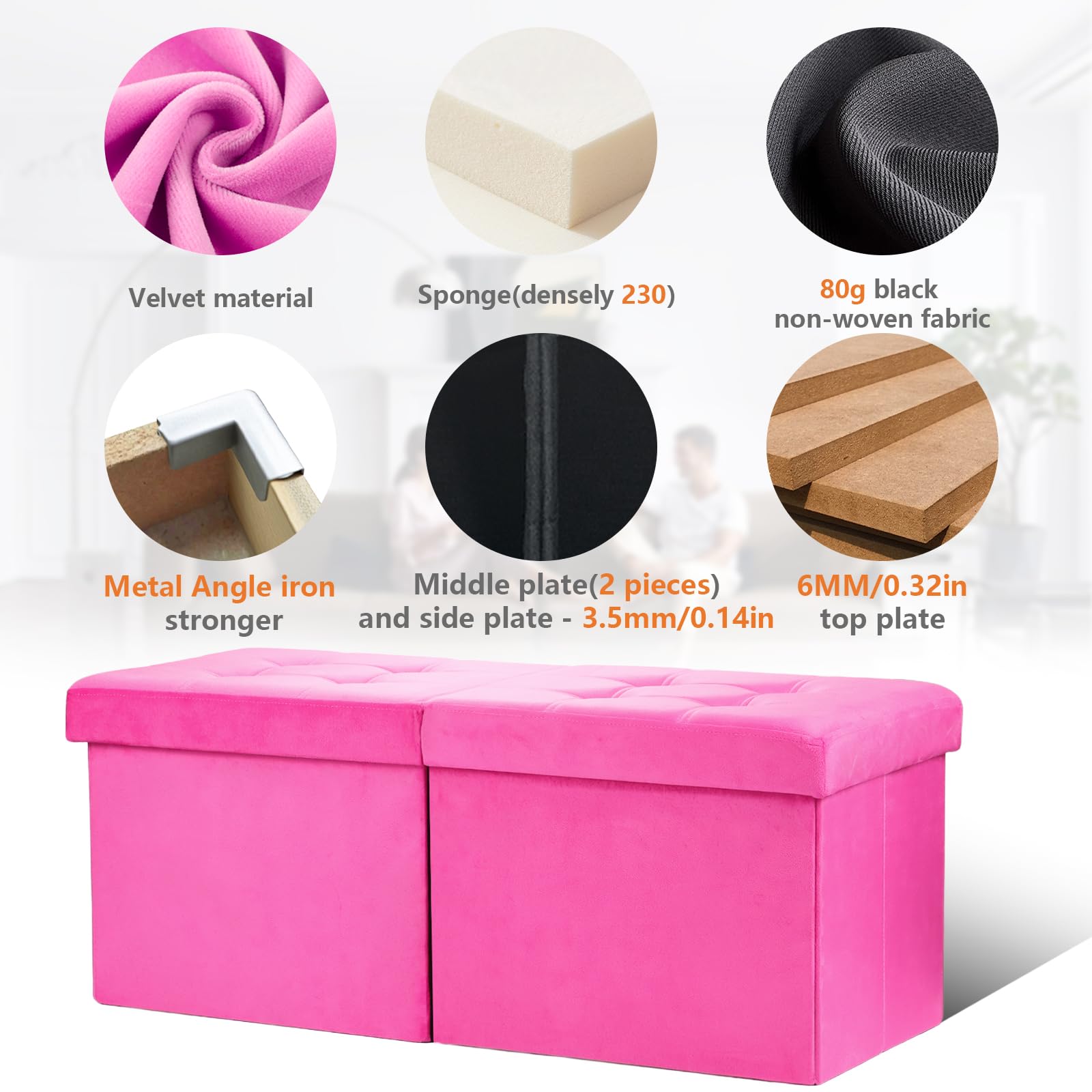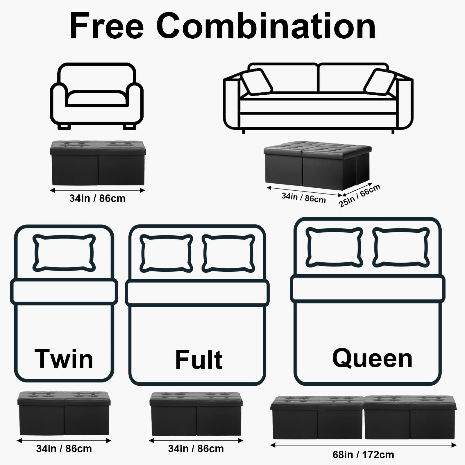 • 【Plenty of Storage Space】The folding ottoman bench sized 34”D x 13"W x 13”H (86 x 34 x 34 cm), can be reduces clutter in the home and allows you to store your blankets, cushions, books and sports equipment in the living room.