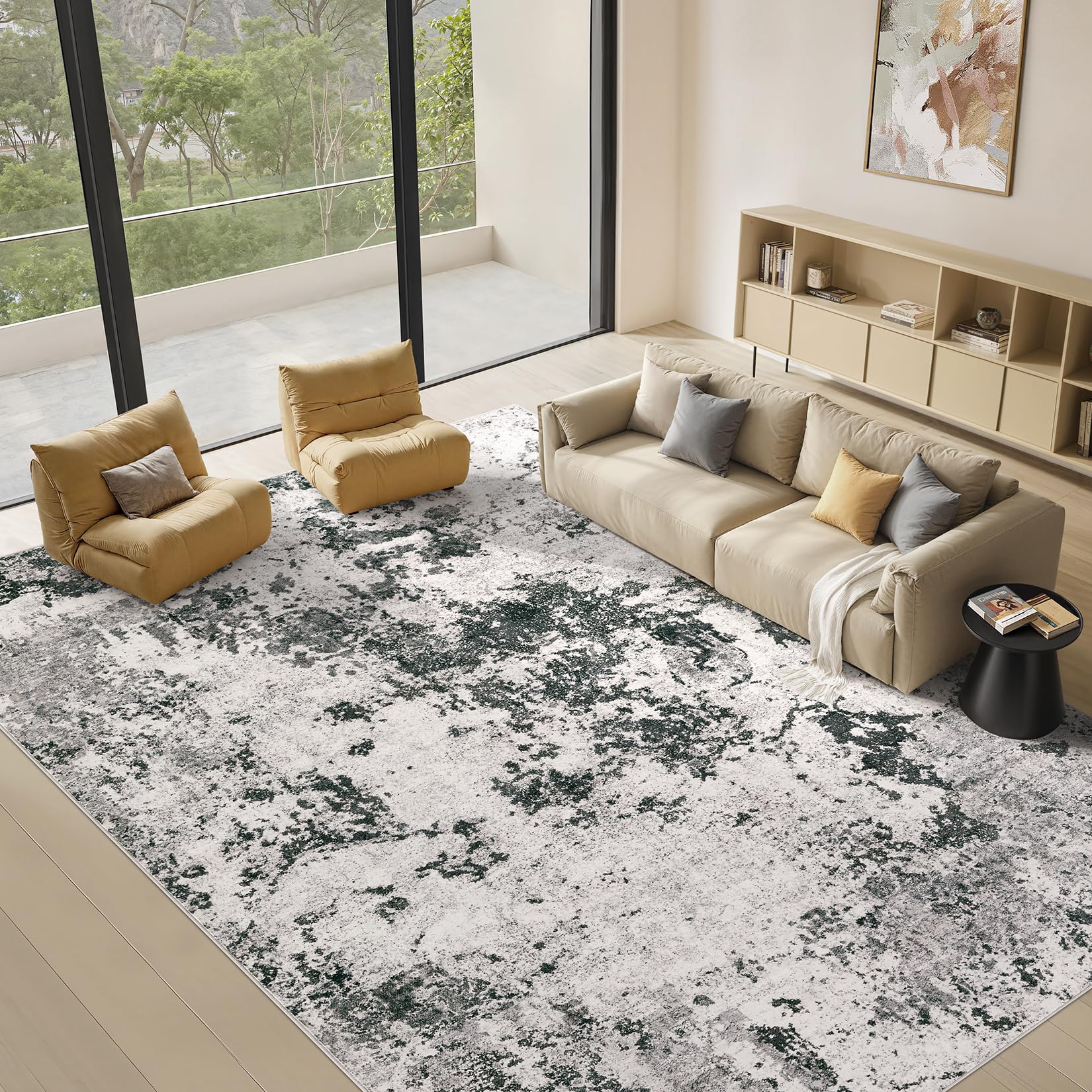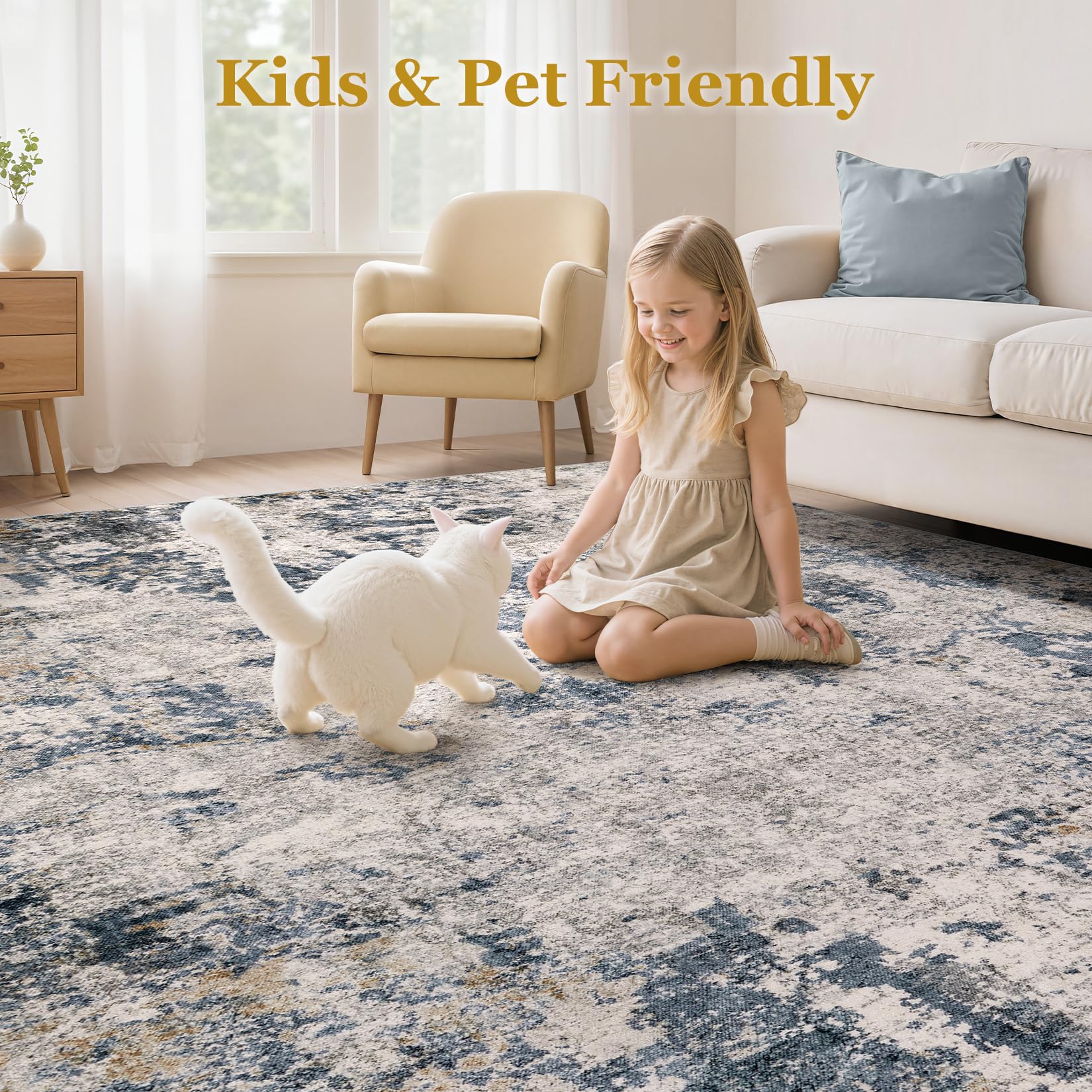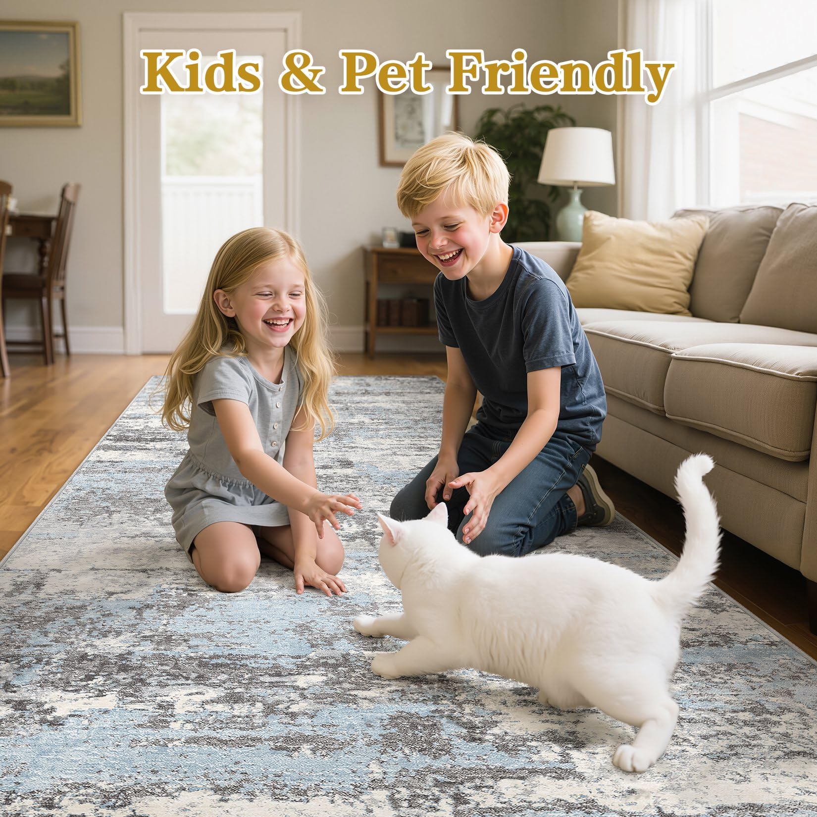 • Skin-friendly for Kids & Pets: Our area rug is gentle on the skin and does not cause irritation or allergies. The area rug for living room is made from environmentally friendly materials, making it comfortable for kids and pets to walk, run, and play on. This large area rug ensures a safe and cozy environment for your loved ones