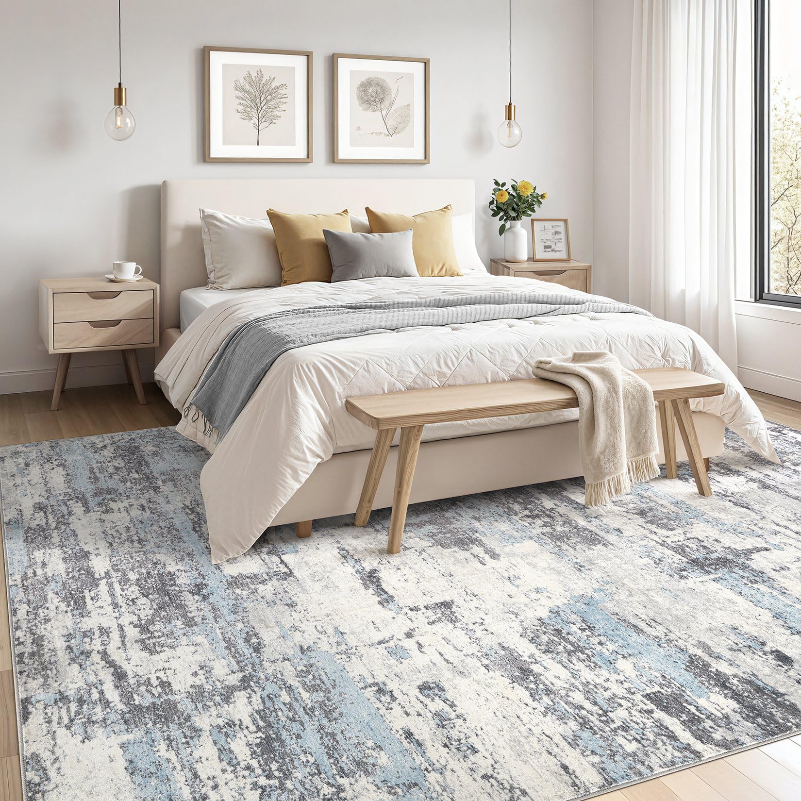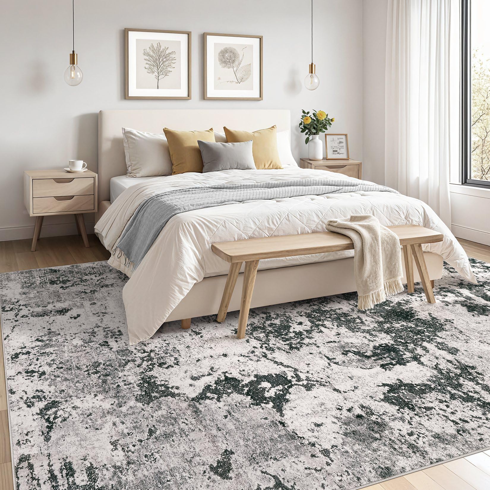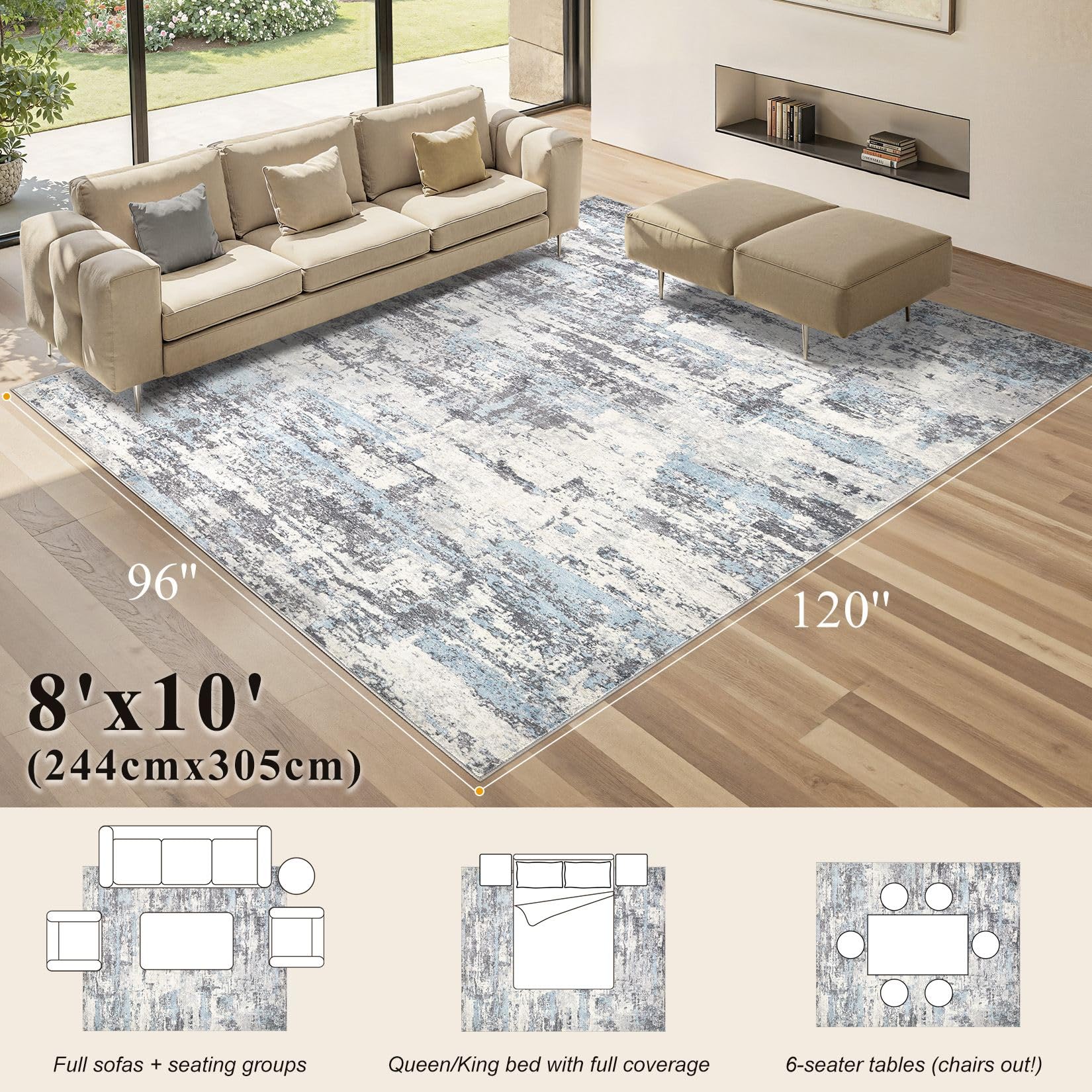 • Skin-friendly for Kids & Pets: Our area rug is gentle on the skin and does not cause irritation or allergies. The area rug for living room is made from environmentally friendly materials, making it comfortable for kids and pets to walk, run, and play on. This large area rug ensures a safe and cozy environment for your loved ones