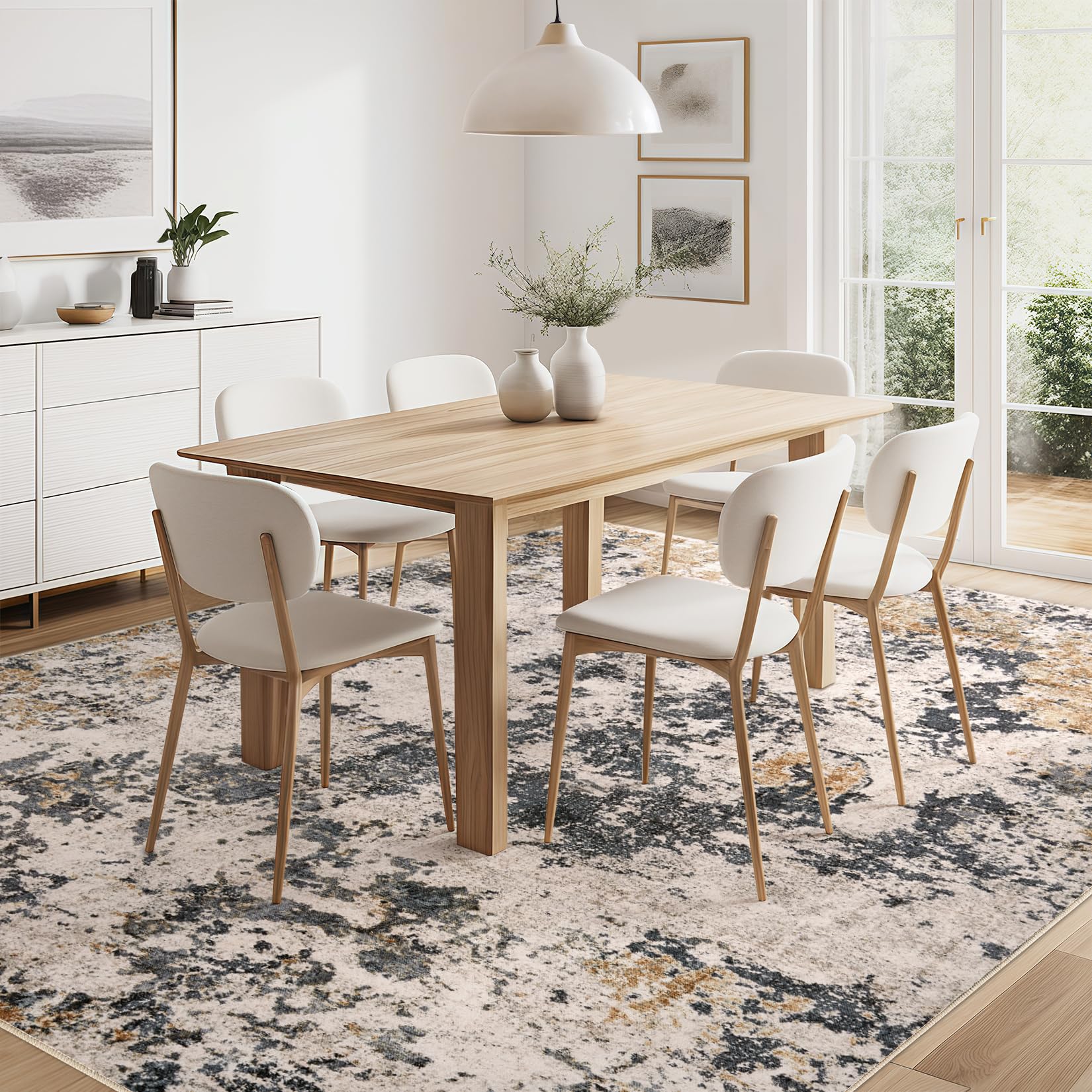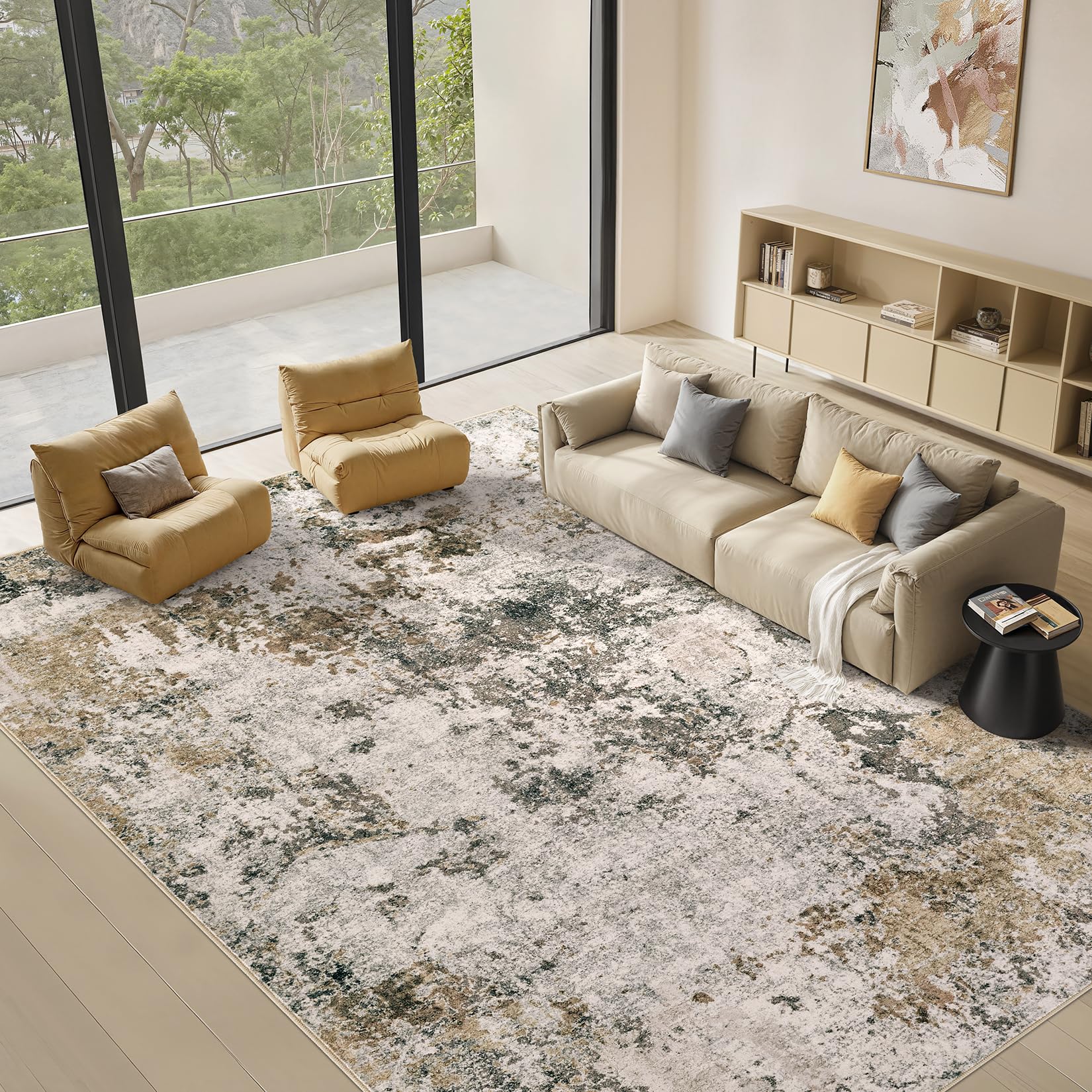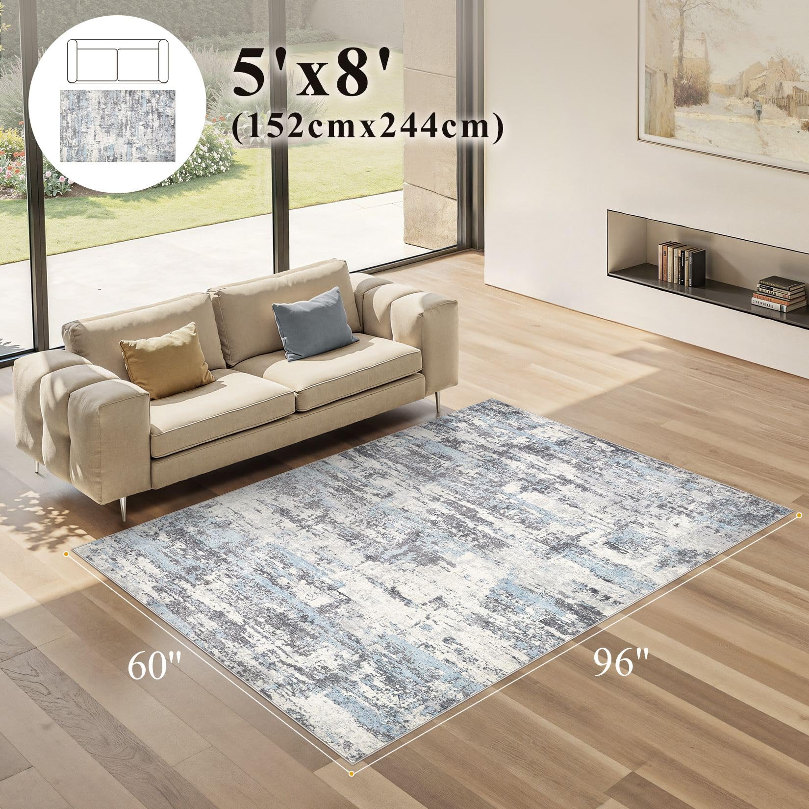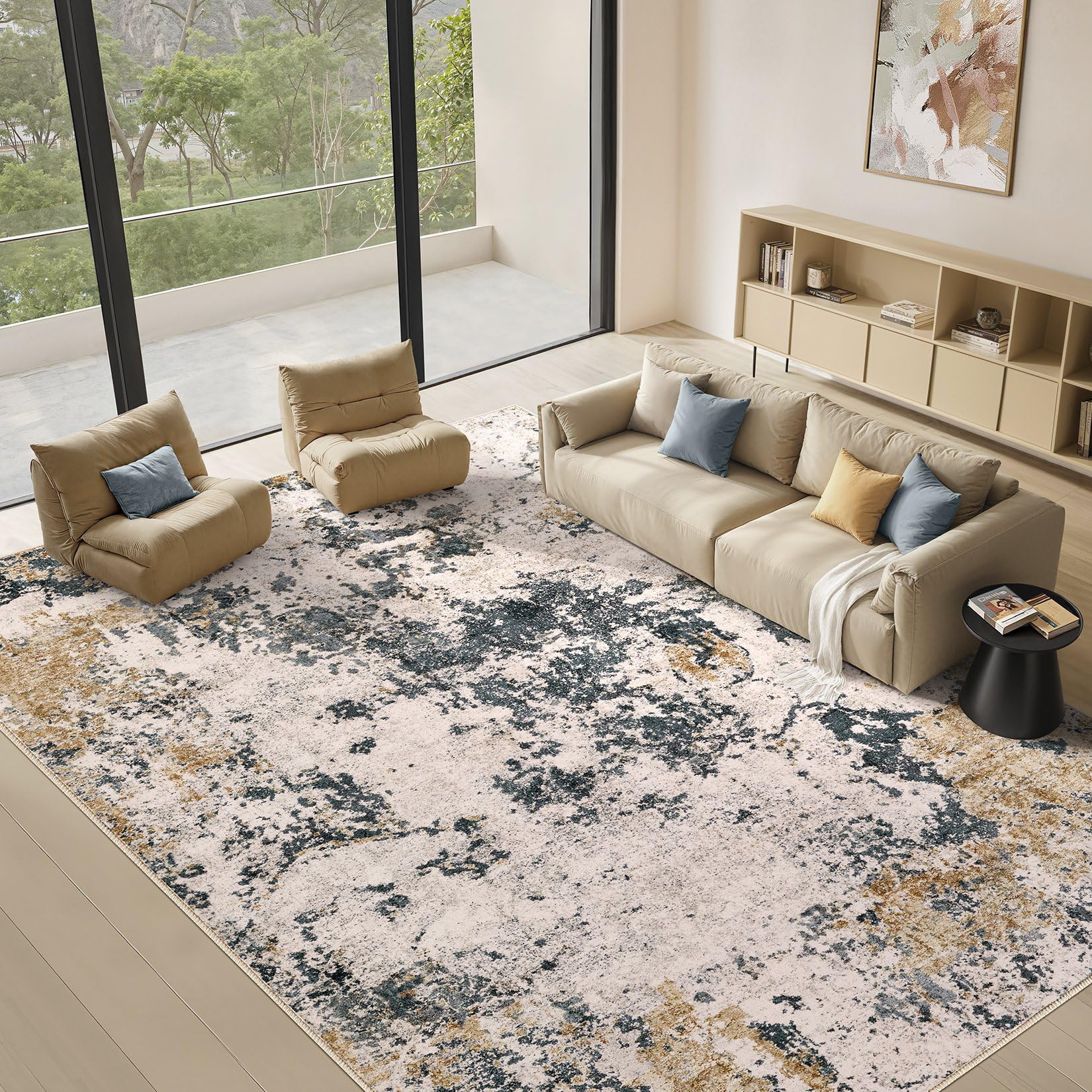 • Modern Abstract Aesthetic Rug: With modern neutral abstract design, whether placed the area rugs on the floor of living room, bedroom, or dining room rugs for under table, area rugs can integrated with home spaces perfectly, bringing you a warm home