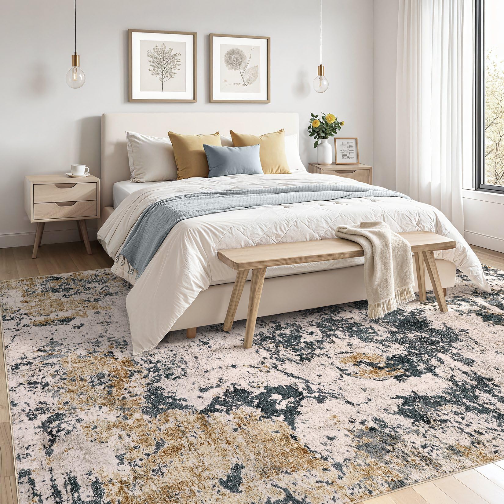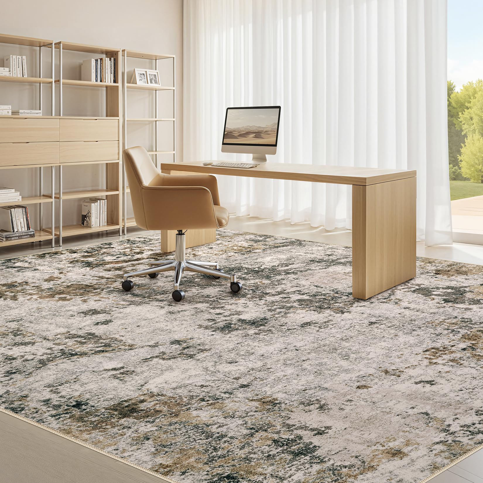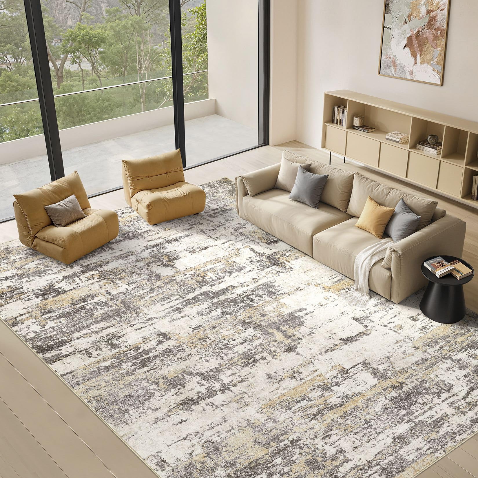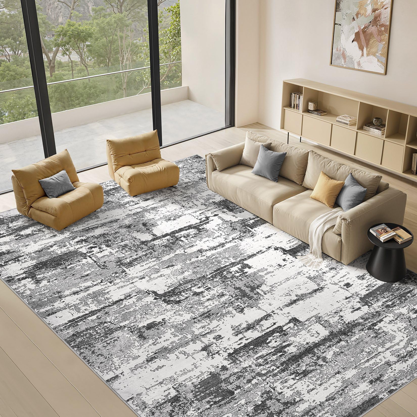 • Modern Abstract Aesthetic Rug: With modern neutral abstract design, whether placed the area rugs on the floor of living room, bedroom, or dining room rugs for under table, area rugs can integrated with home spaces perfectly, bringing you a warm home