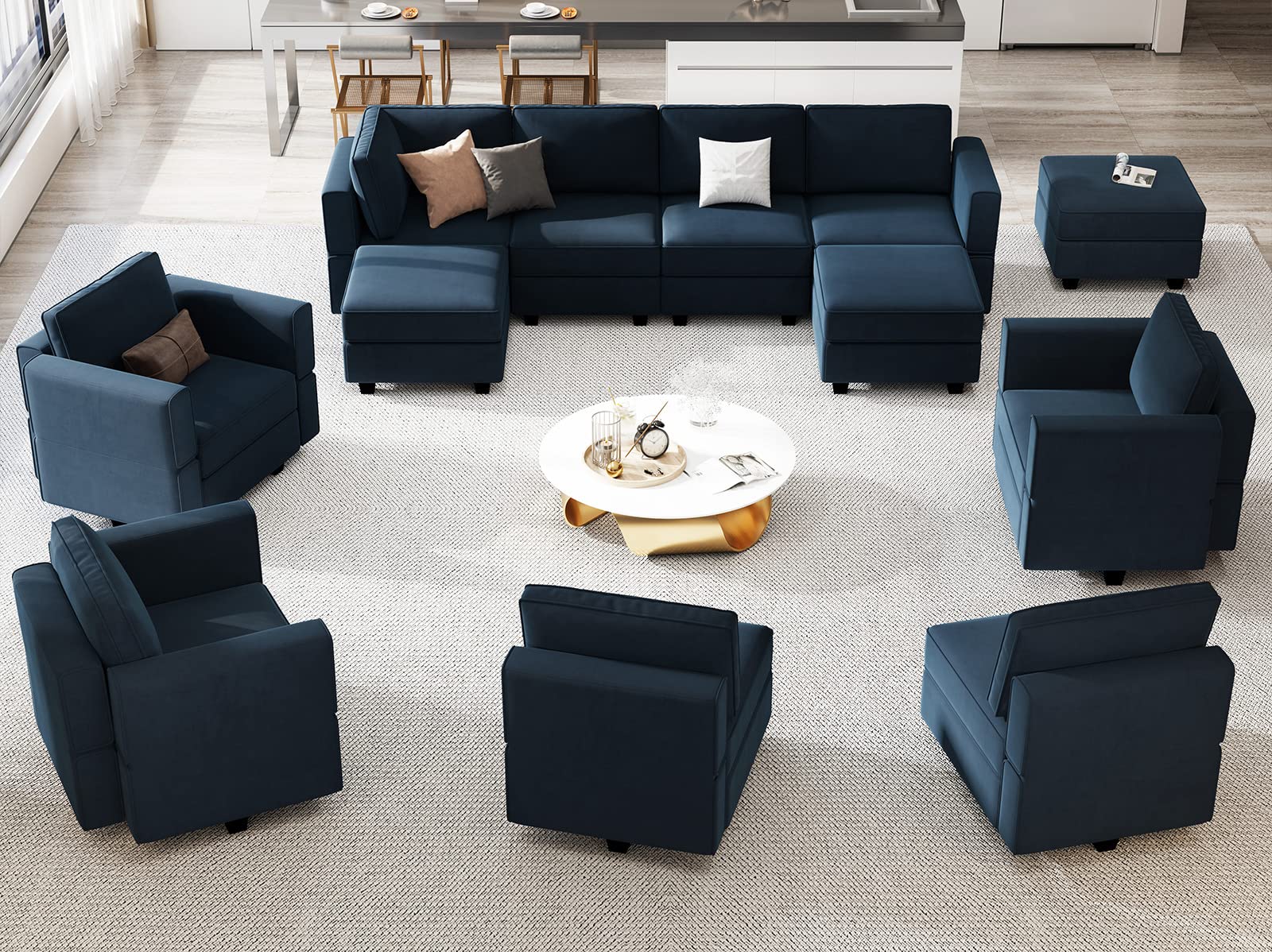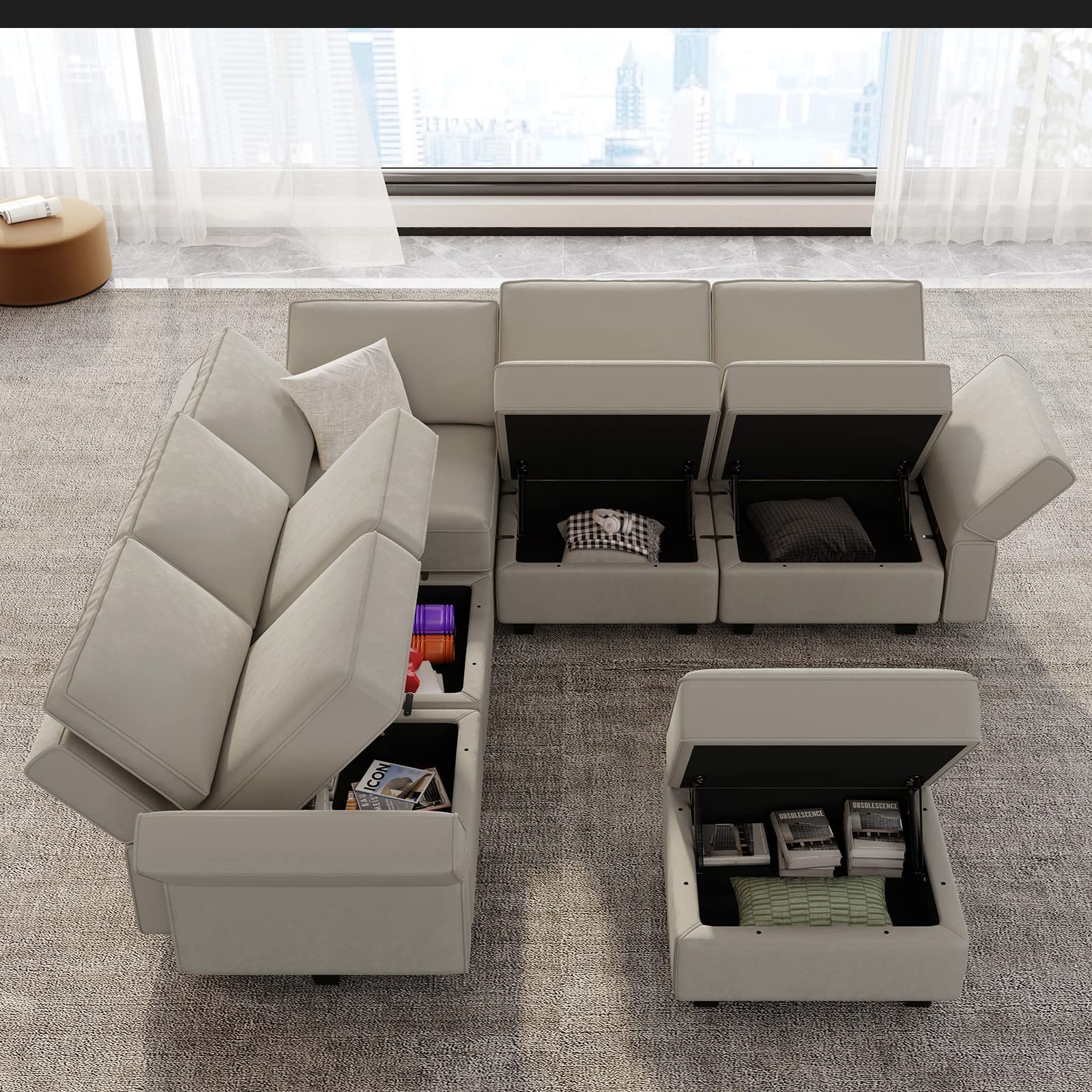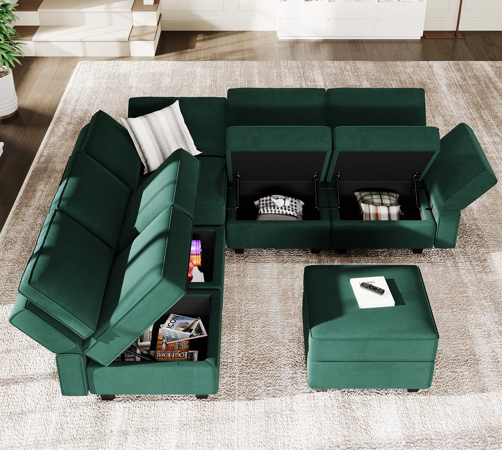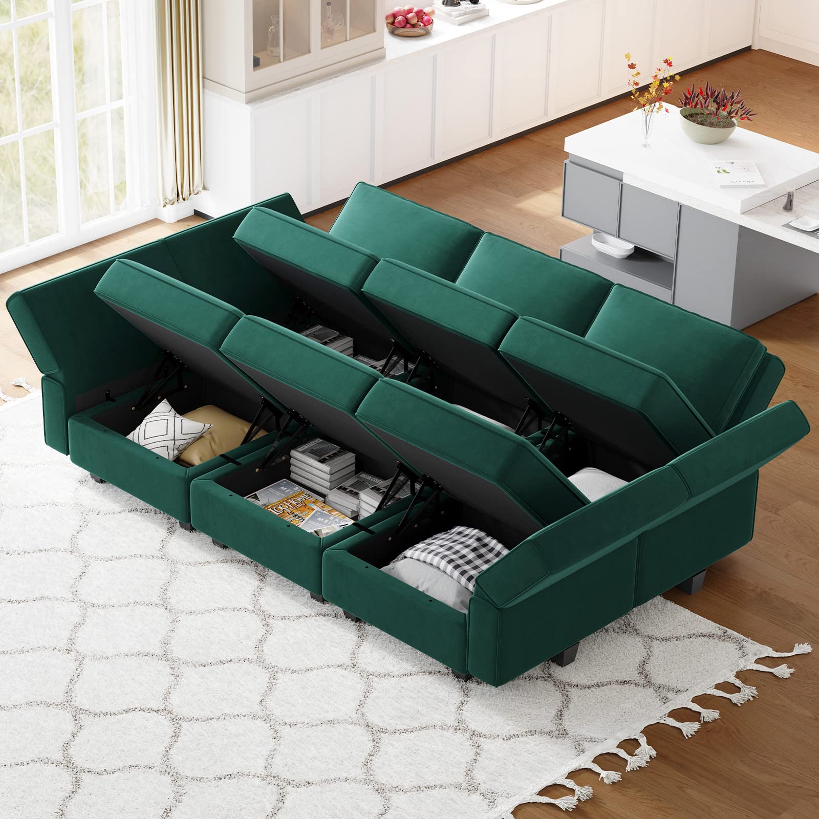 • Storage-friendly Seats: There are storage spaces under each seat of modular sectional 9-piece couch. It is convenient for you to make the room neat and clean. Storage dimensions: 22.40''(L)*22.40''(W)"*5.70"(H).