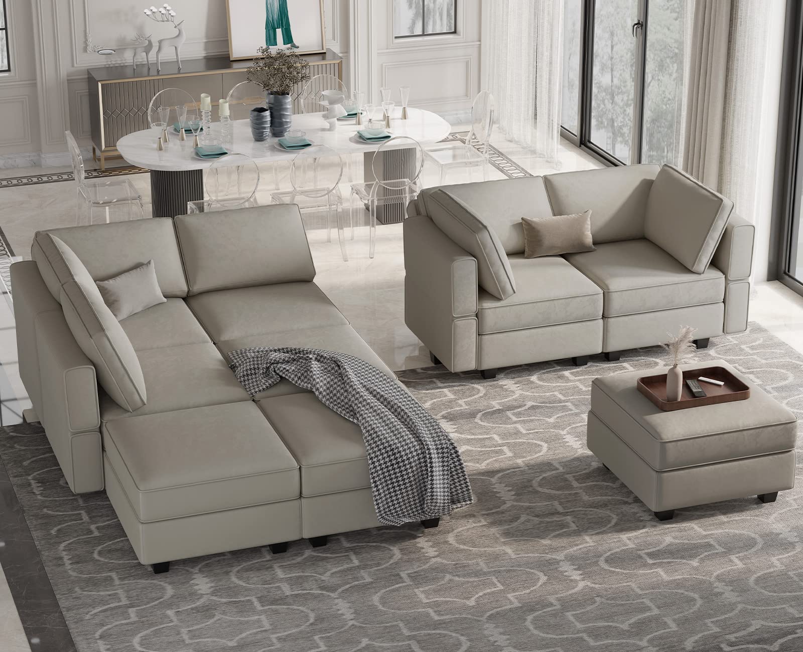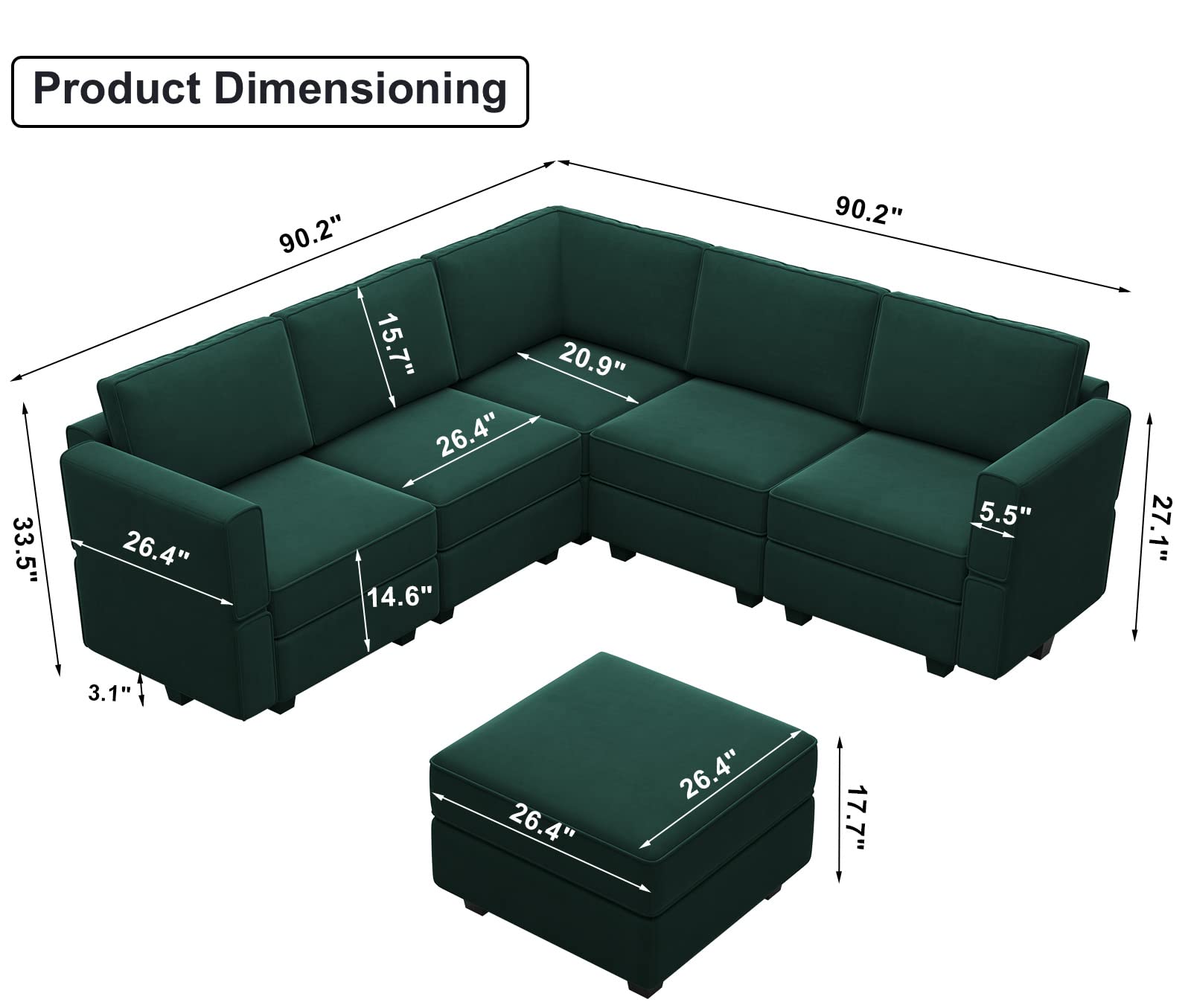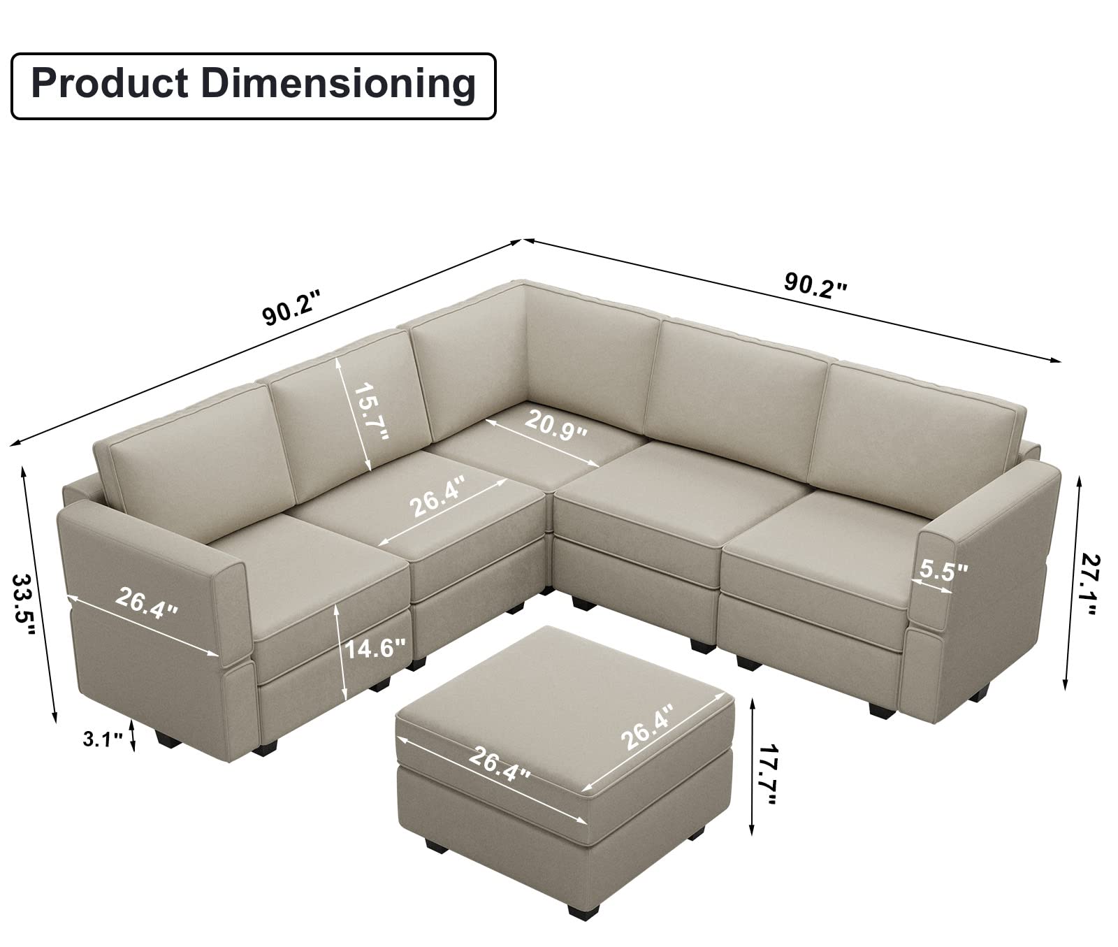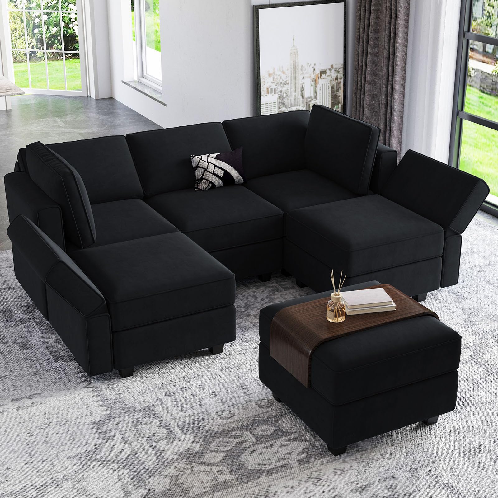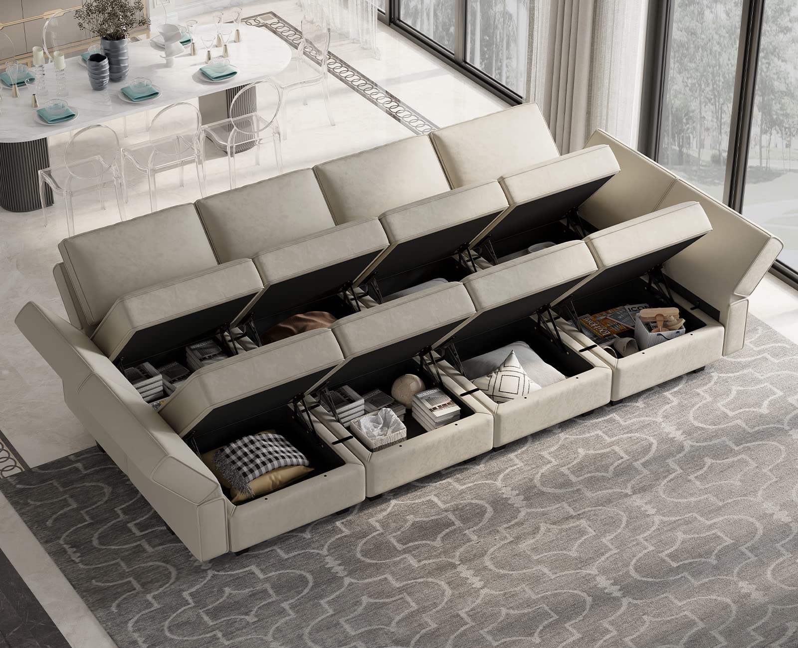 • Storage-friendly Seats: There are storage spaces under each seat of modular sectional 9-piece couch. It is convenient for you to make the room neat and clean. Storage dimensions: 22.40''(L)*22.40''(W)"*5.70"(H).