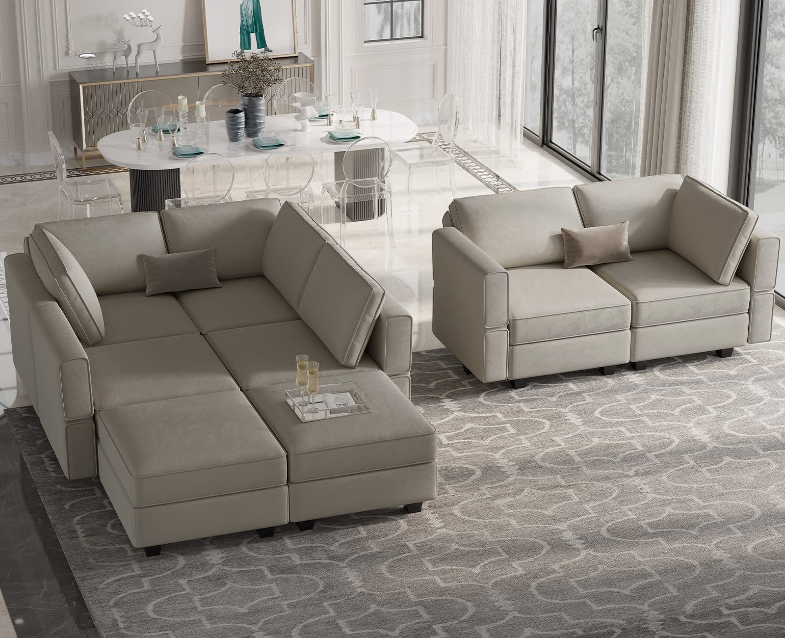 • Modular Sleeper Sofa: The modular sectional sofa features with elegant double piping, clear lines, and cozy 3 colors that brings minimalist style to a living space. The velvet fabric is soft and high-quality which stands up well to wear and tear. Simple and generous appearance and comfortable seat experience constitute the basic charming of modular sofa.