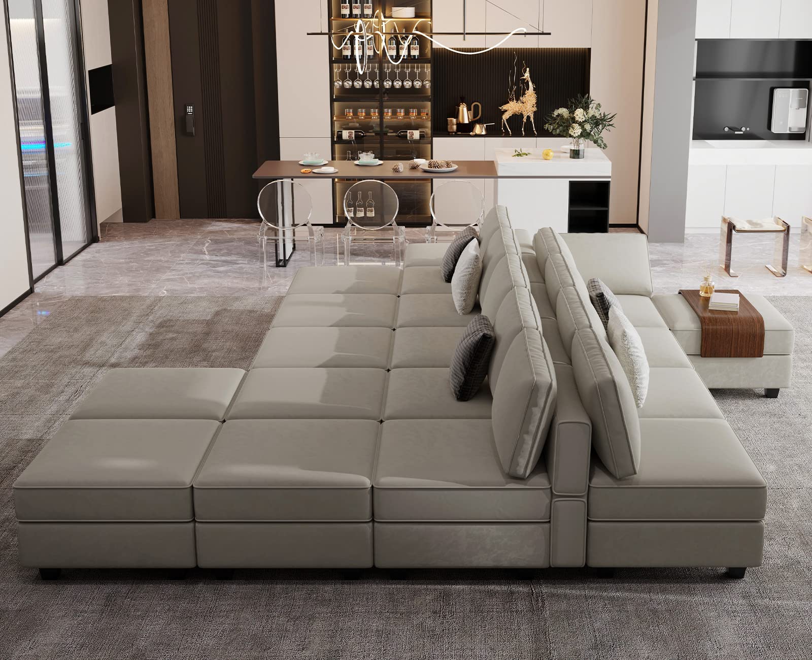 • Multi-function Modular Sofa: The seats of the sleeper sofa are movable so the modular sofa can be convertible into any shapes you like. The sectional sofa is suitable for your living room seating needs or can be rearranged into a sleeper sofa to meet the needs of lying and sleeping. The modular sofa bed can accommodate maximum for people who are 6.1 feet tall.