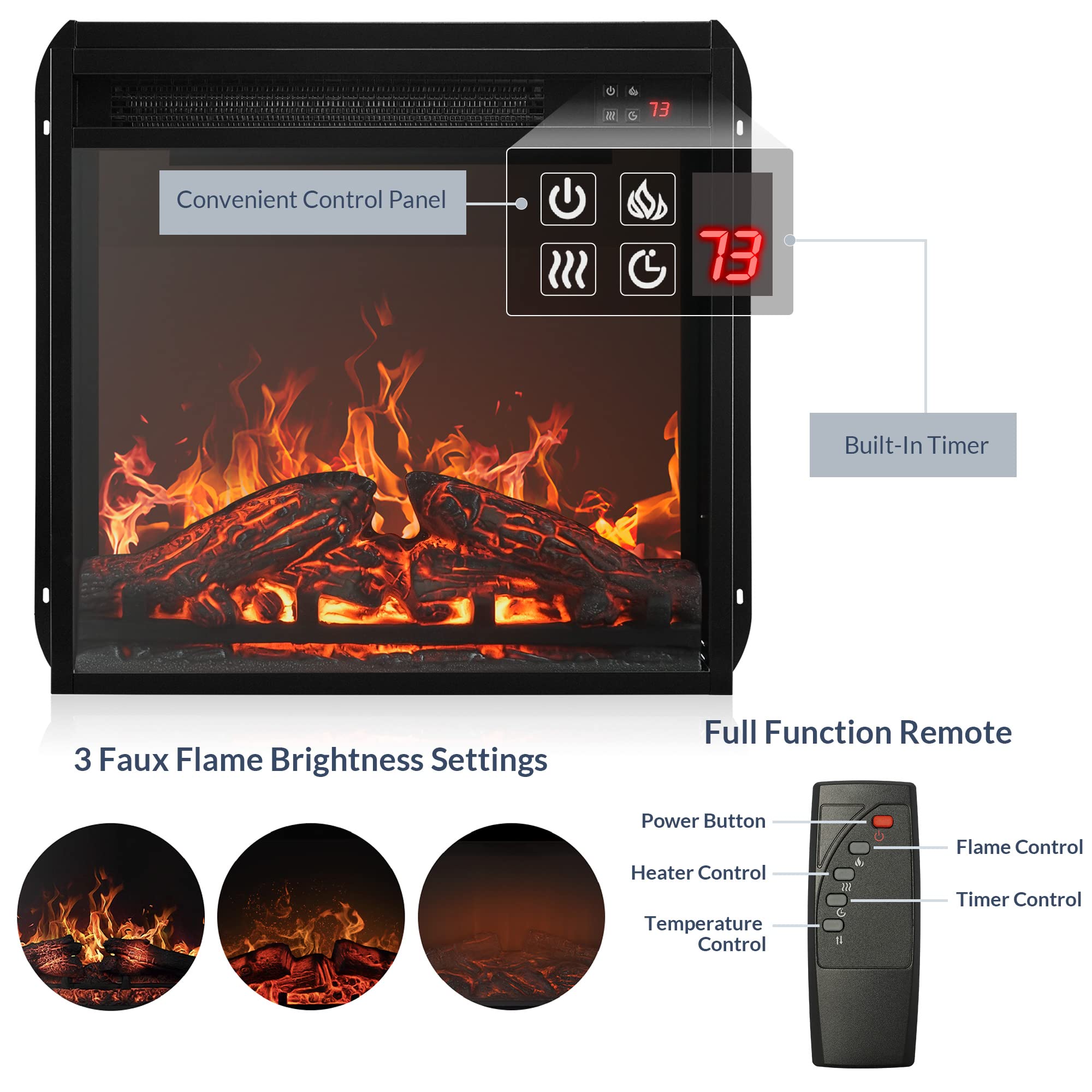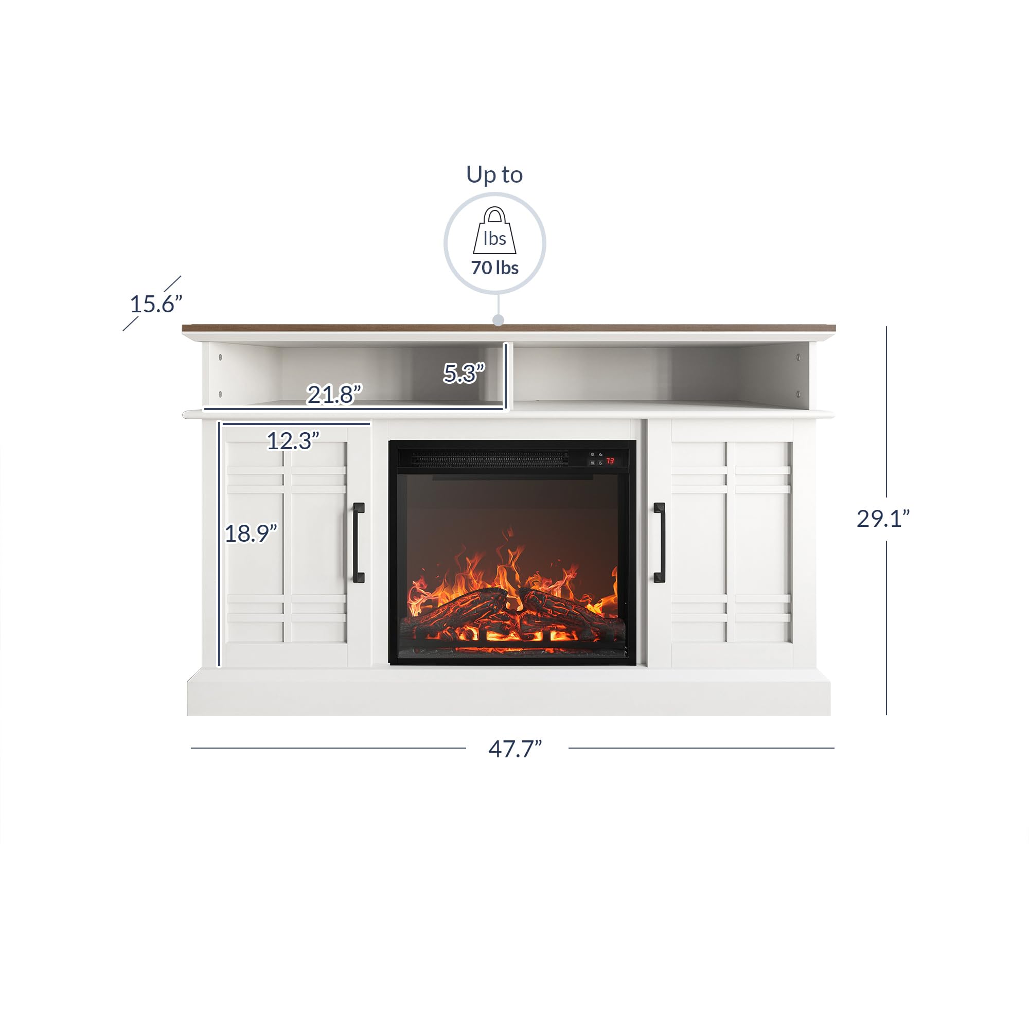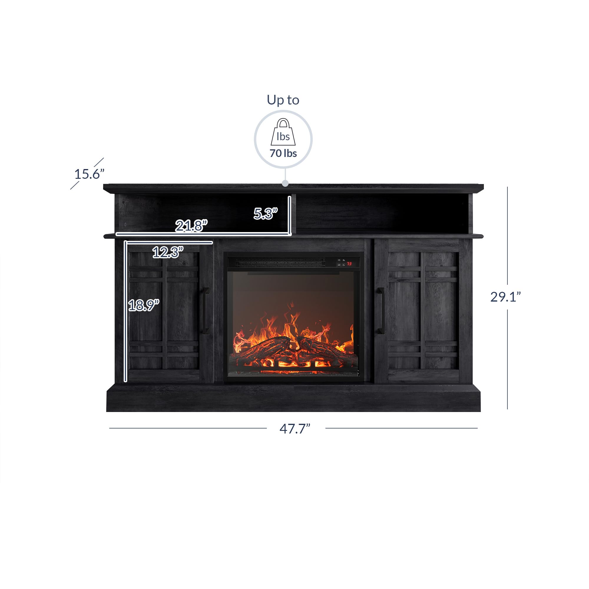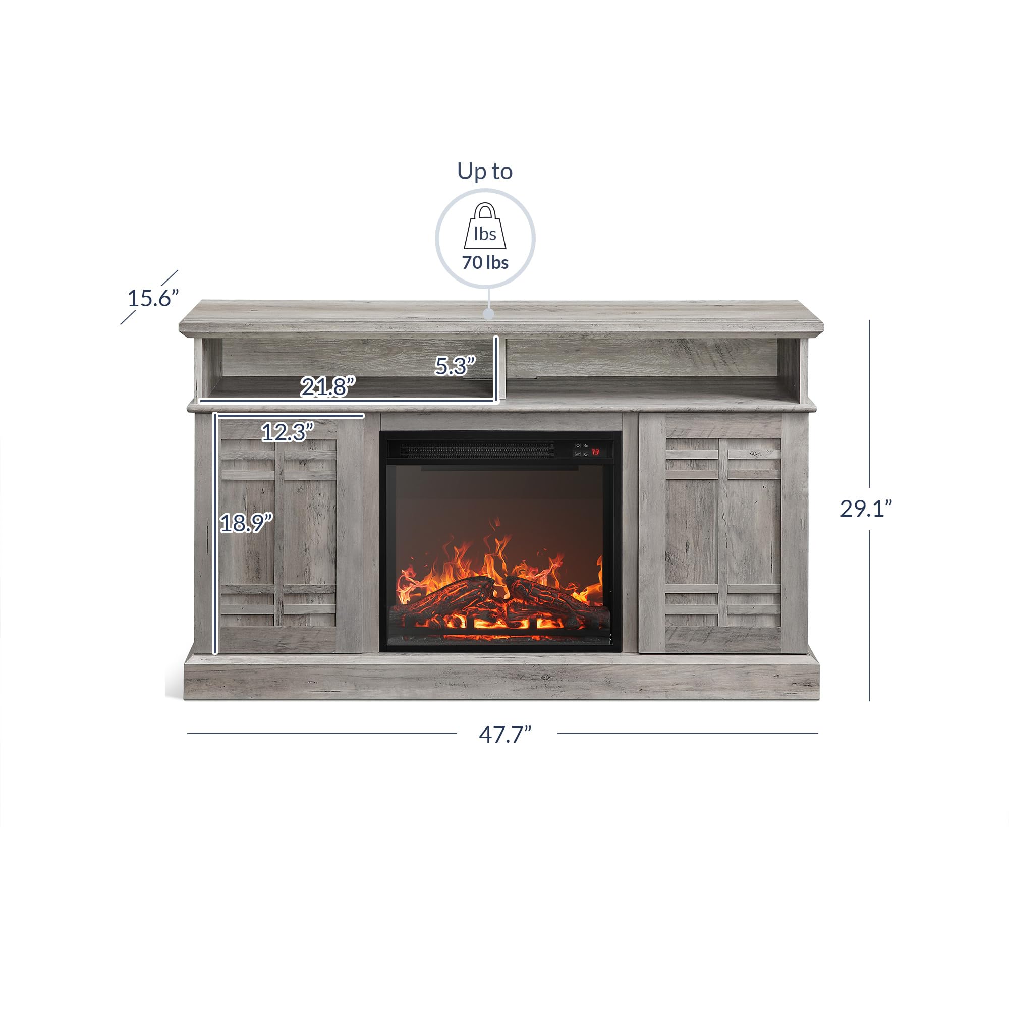 • [ELECTRIC FIREPLACE INCLUDED] Enjoy the warmth and beauty of a fireplace without the smoke and ashes but with fire crackling sound. Comes with a 120 V, 1400W electric fireplace that can warm up rooms up to 400 square feet. Overall dimensions of the fireplace are 23"L x 5.09"W x 17.17"H.