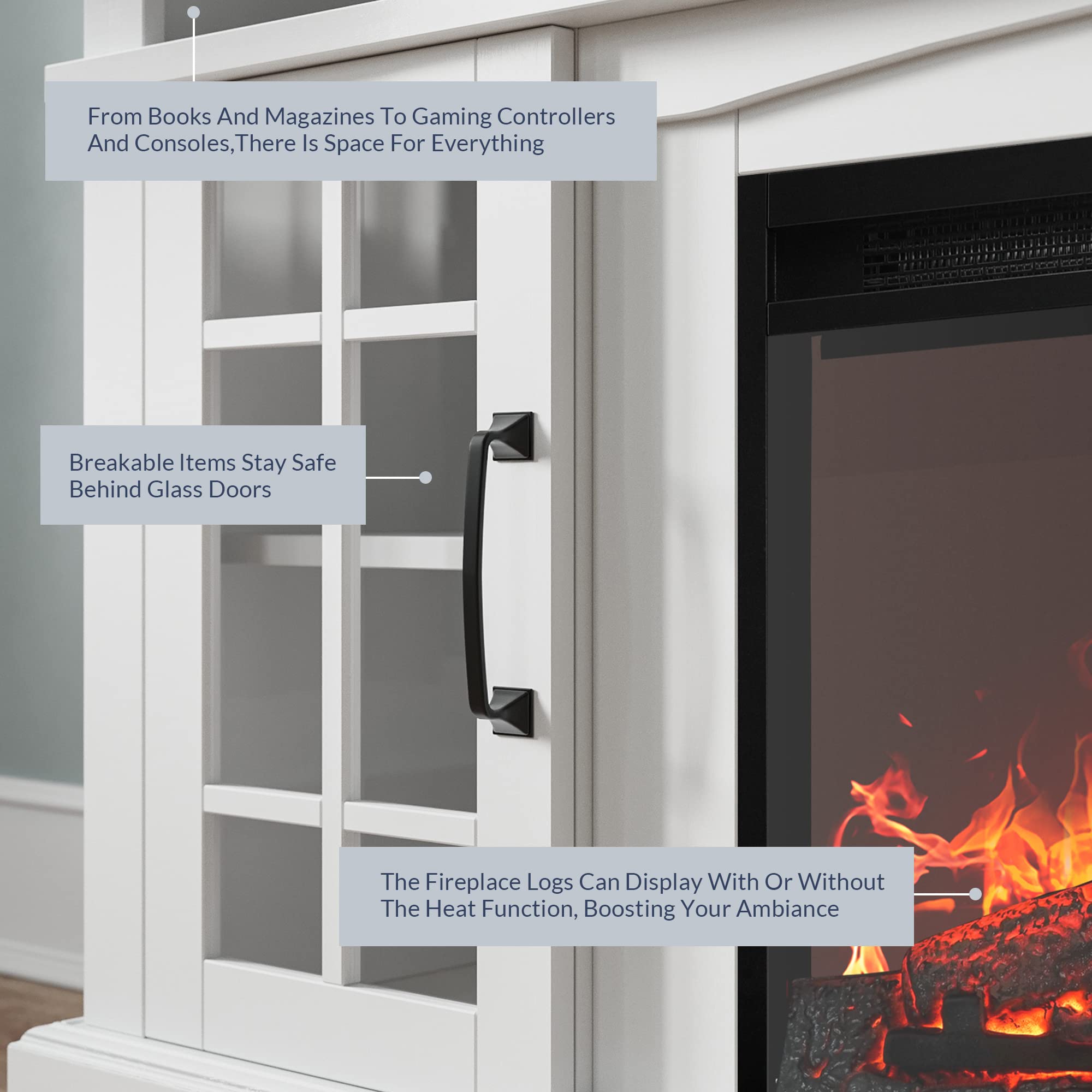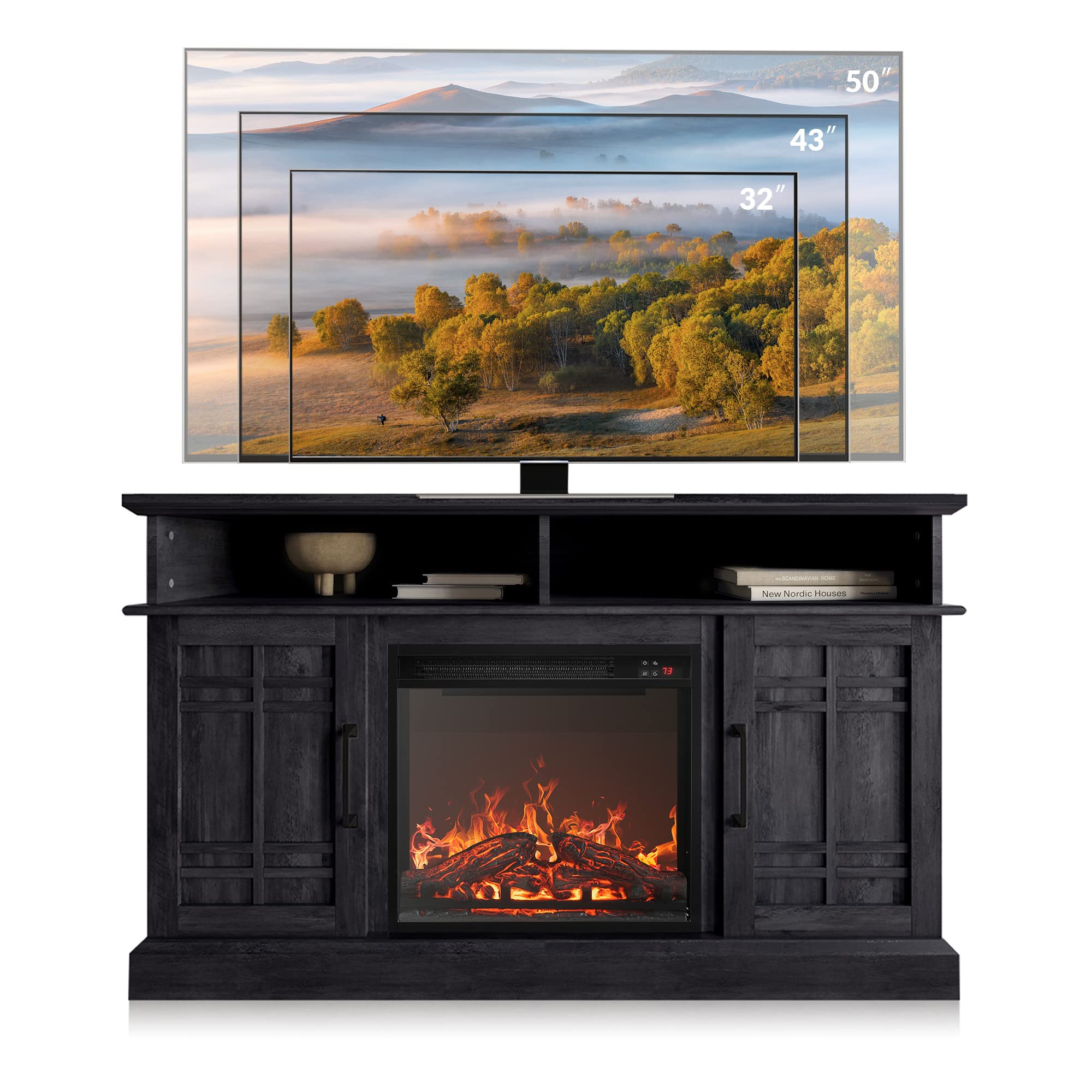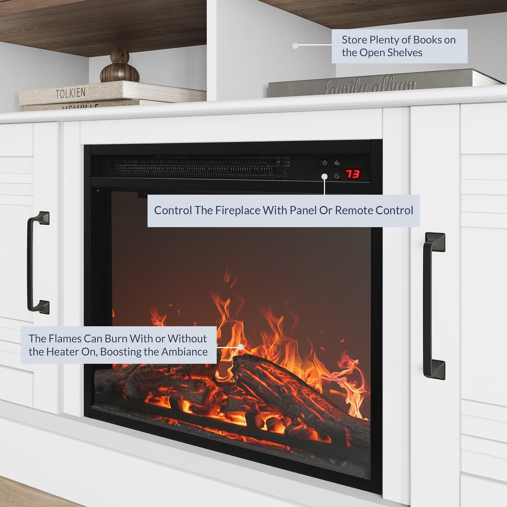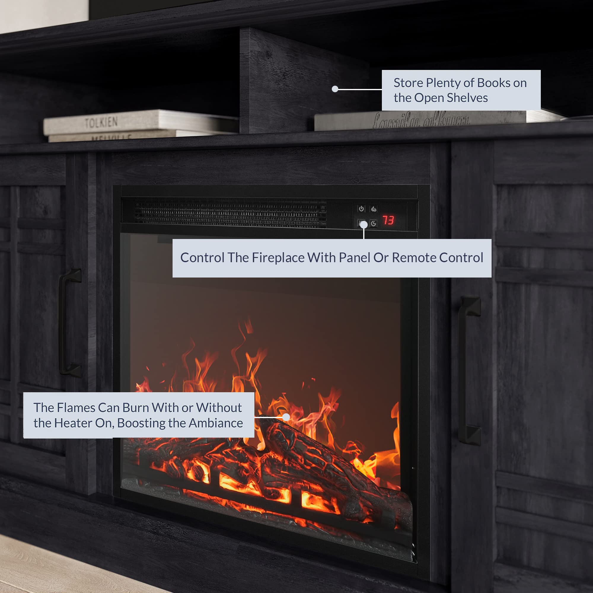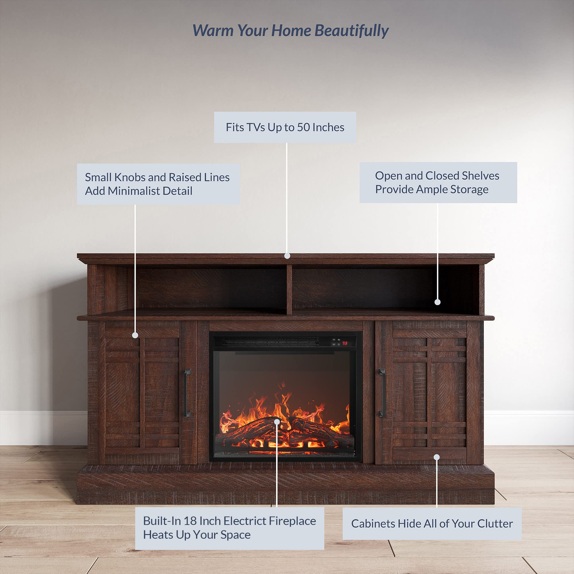 BELLEZE Traditional 58" Rustic TV Stand with 23" Electric Fireplace Heater with Sound, Media Entertainment Center Console Table for TV up to 65" with Open Storage Shelves and Cabinets - Espresso