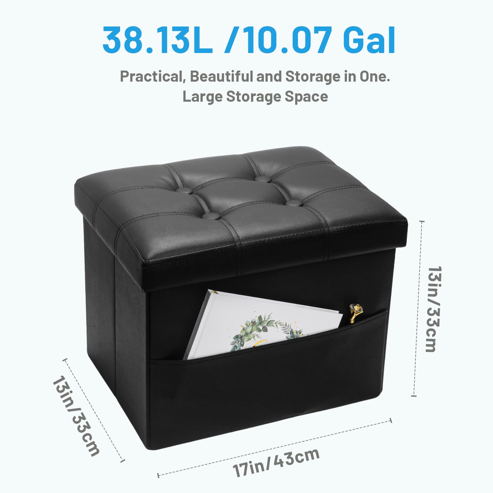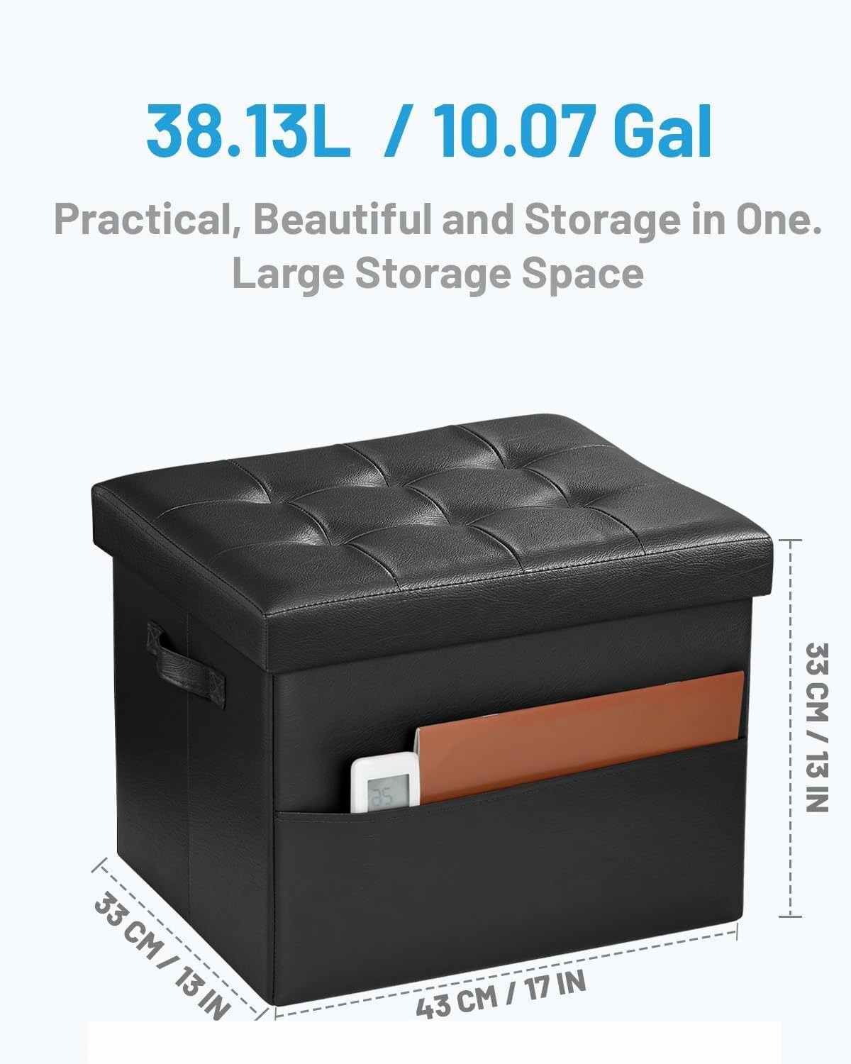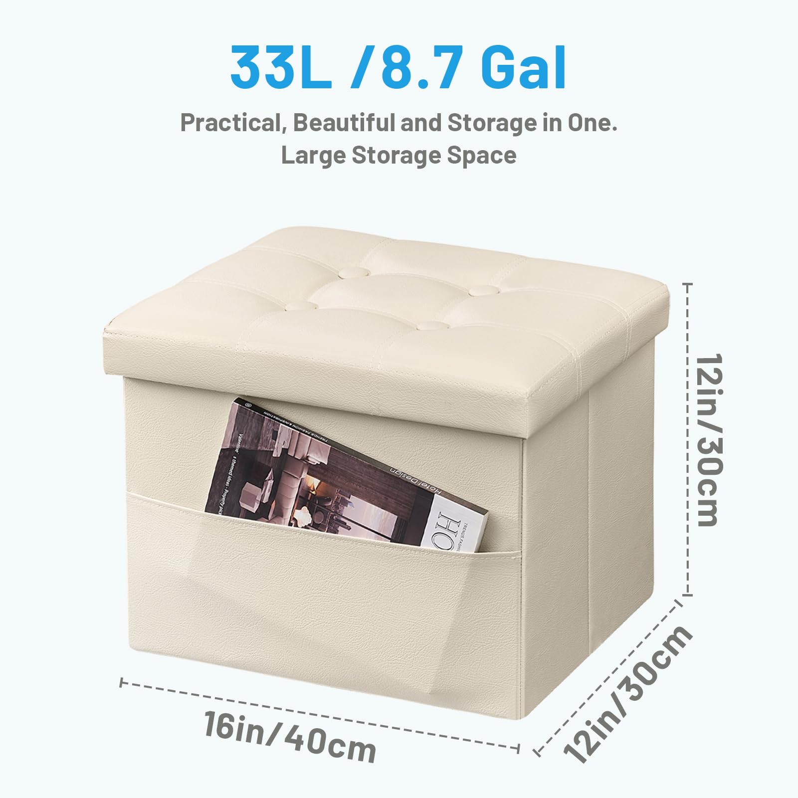 • VERSATILE & PRACTICAL: This multi-purpose storage ottoman can provide extra seating as a step stool/bench or work as a coffee table/puppy step/bed foot stool and many other daily uses, while the faux leather is waterproof and soft, super easy to wipe clean.