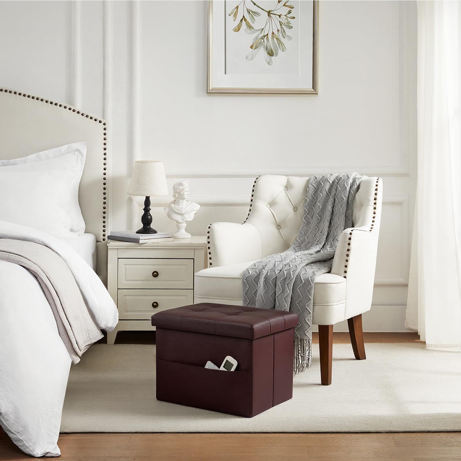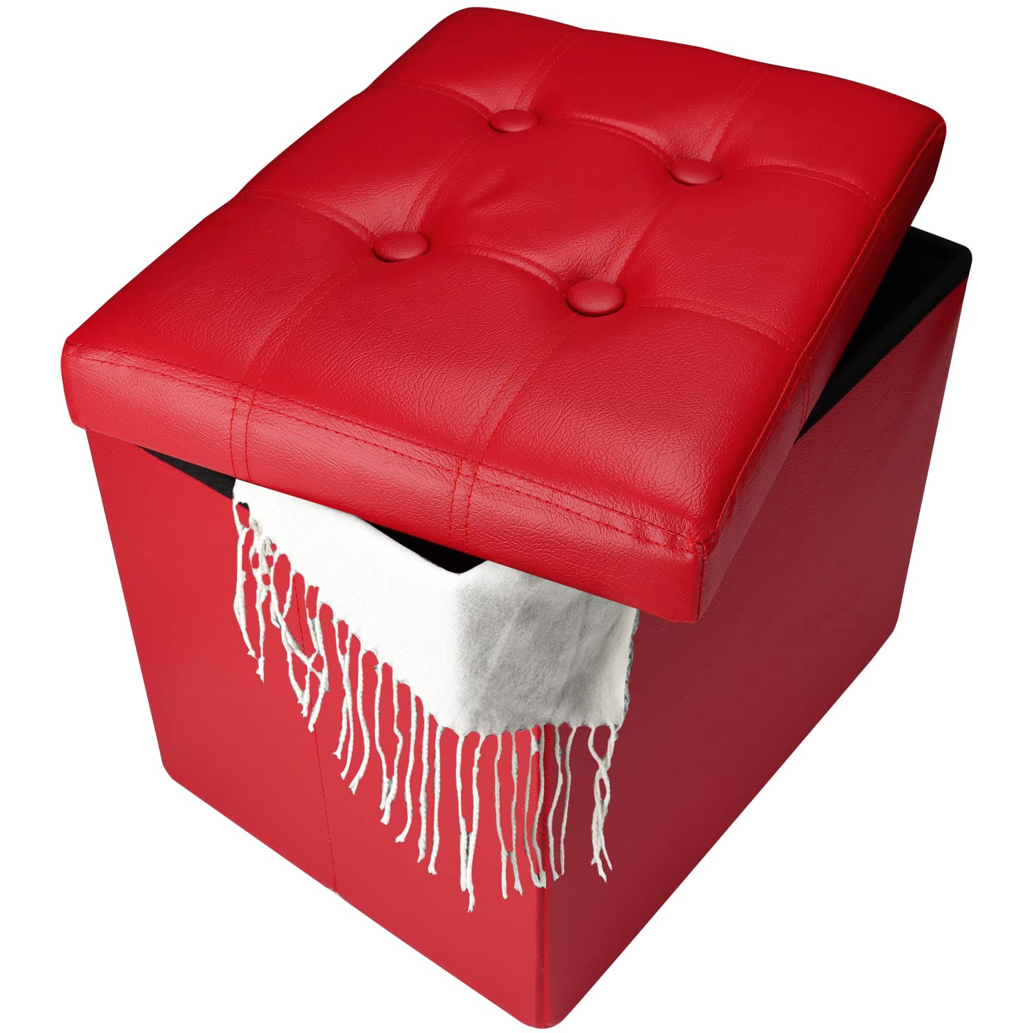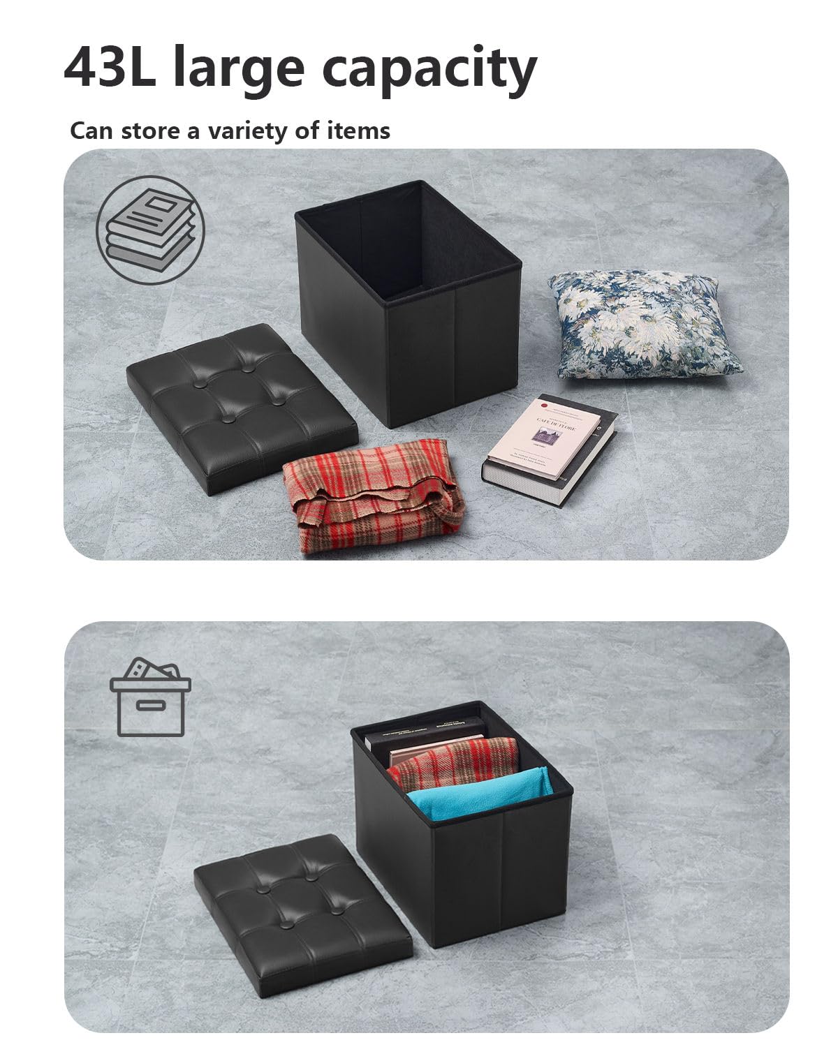 • VERSATILE & PRACTICAL: This multi-purpose storage ottoman can provide extra seating as a step stool/bench or work as a coffee table/puppy step/bed foot stool and many other daily uses, while the faux leather is waterproof and soft, super easy to wipe clean.