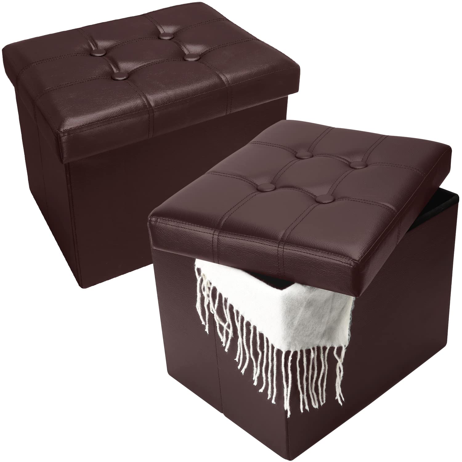 • COMFORTABLE & DURABLE SEAT: High resilient sponge padded, cover elegant and durable faux leather, these square ottomans will bring you Superior sitting experience; soft Corners protect you and Your families from bumps.