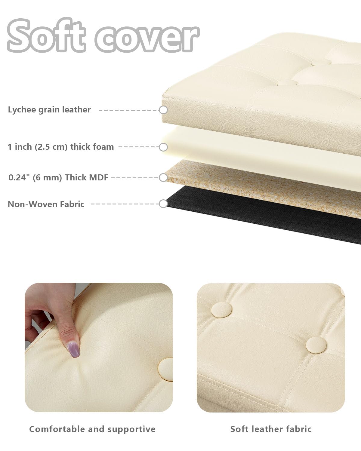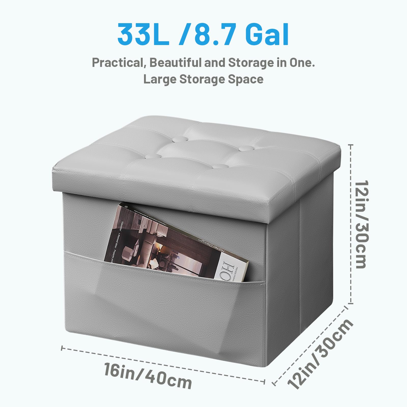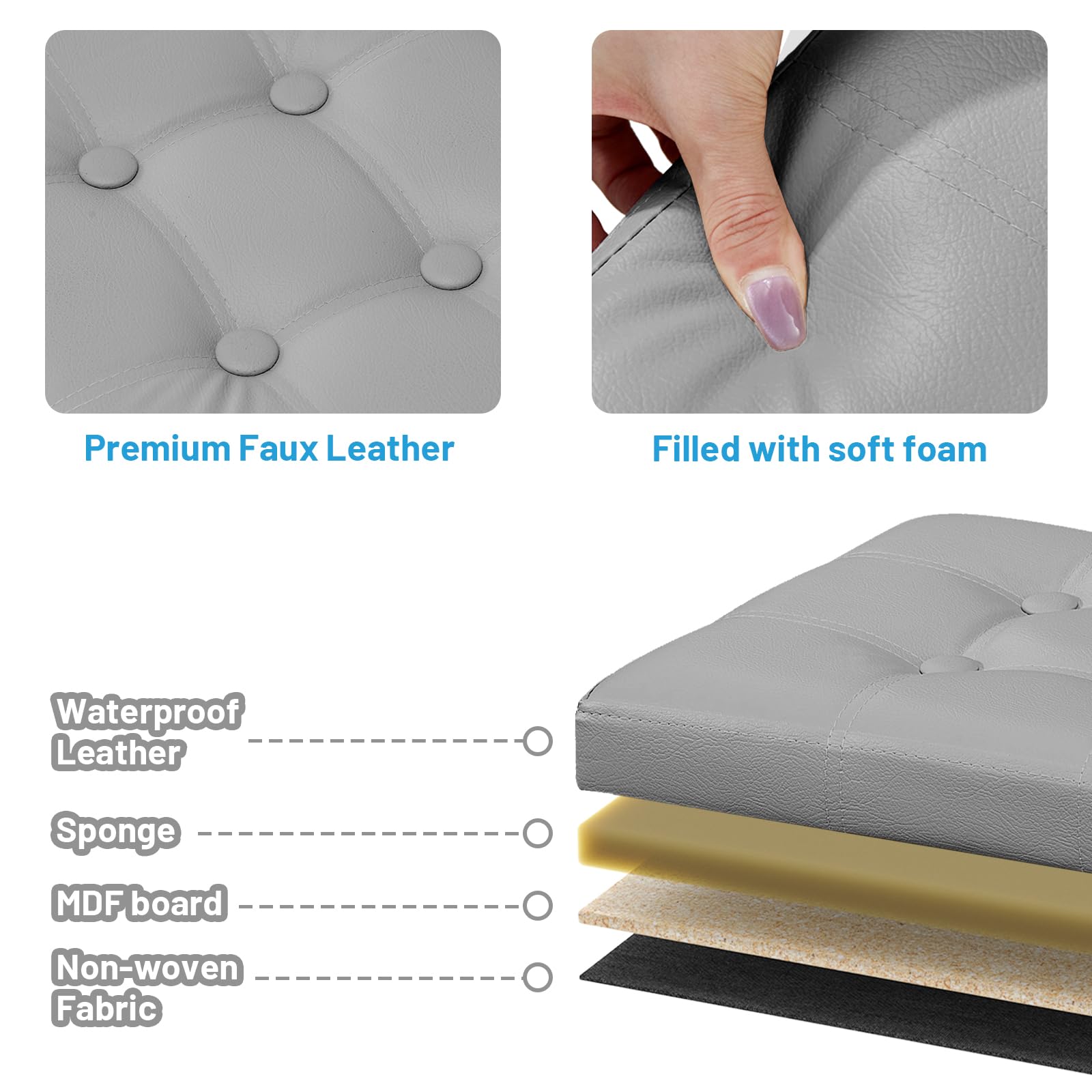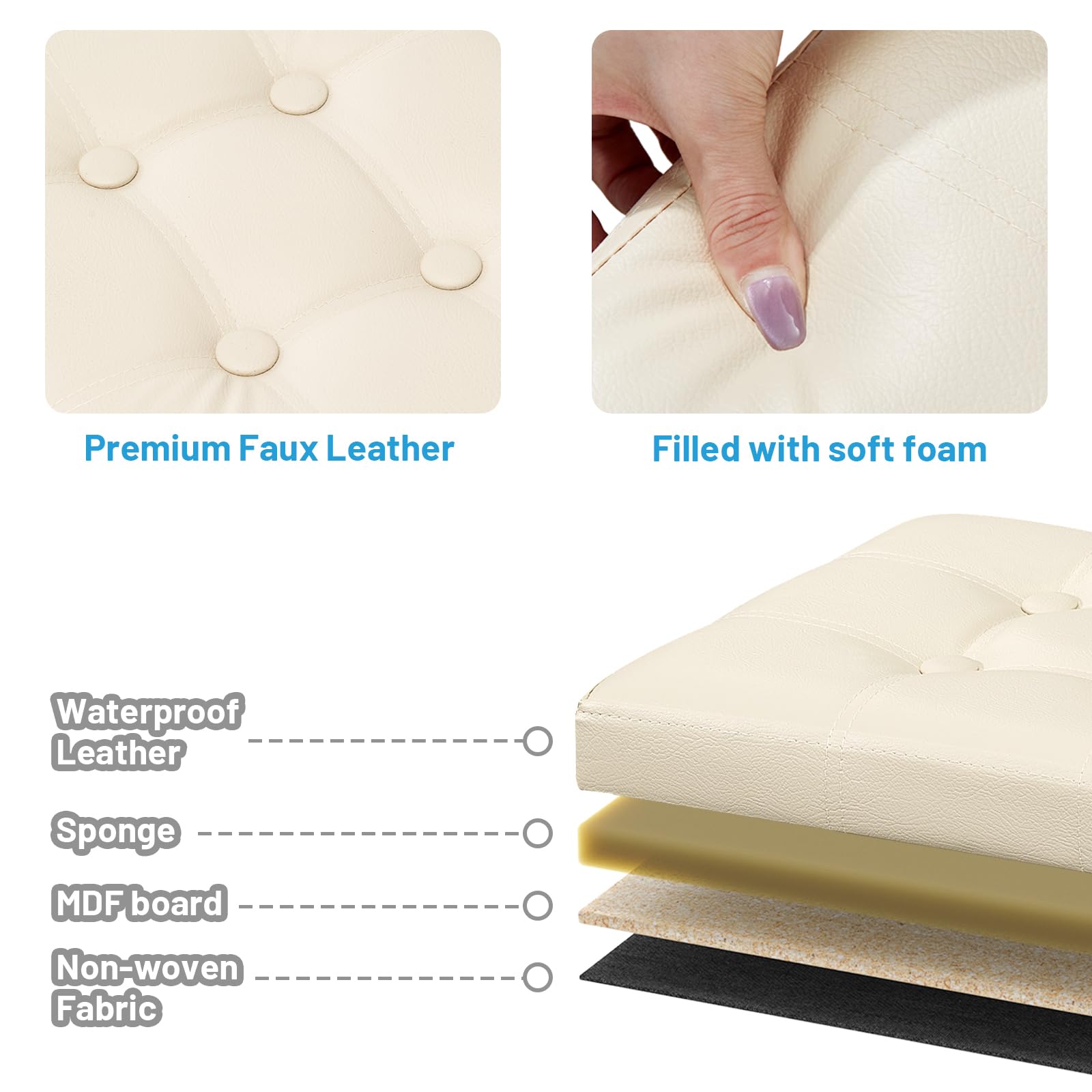 • DURABLE DESIGN: Crafted by Thickened MDF boards, holds up to 440lb (static load capacity), this storage ottoman ensures great stability, practical and perfect as a foot rest and foot stool.