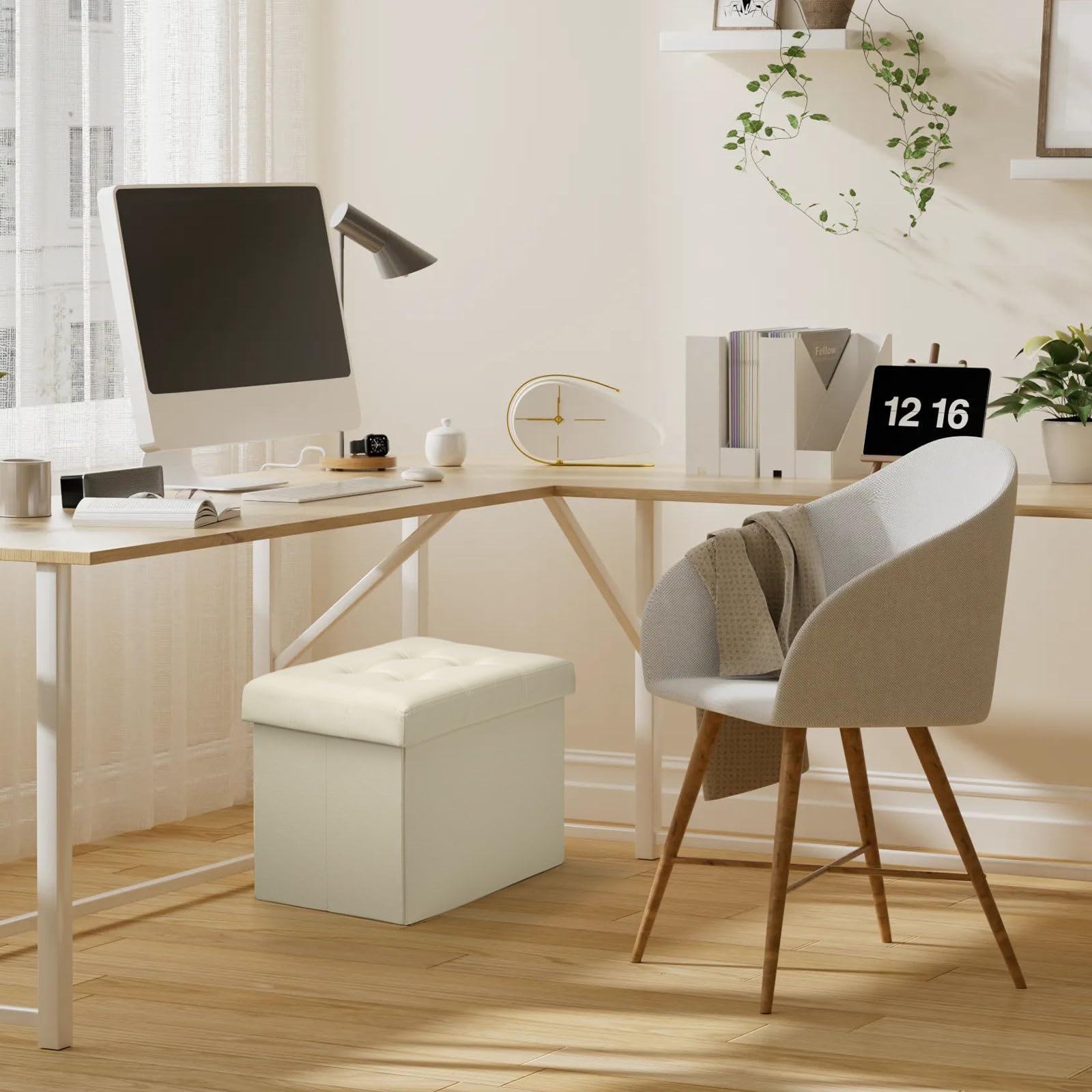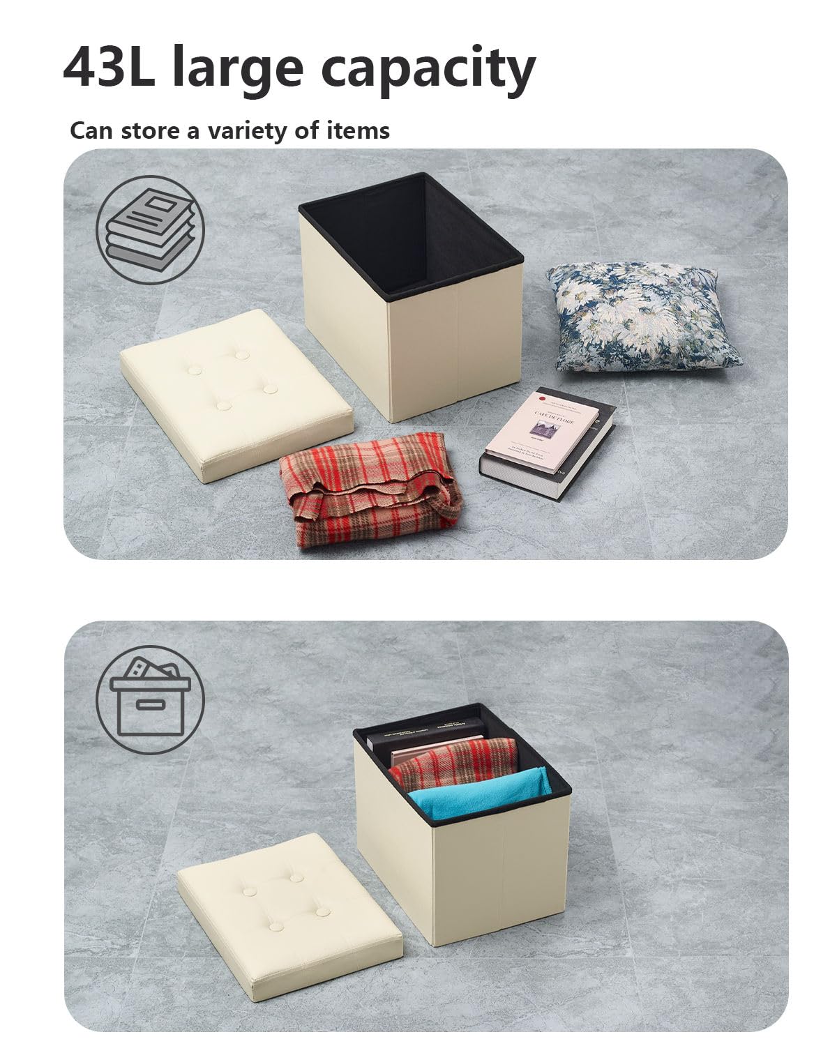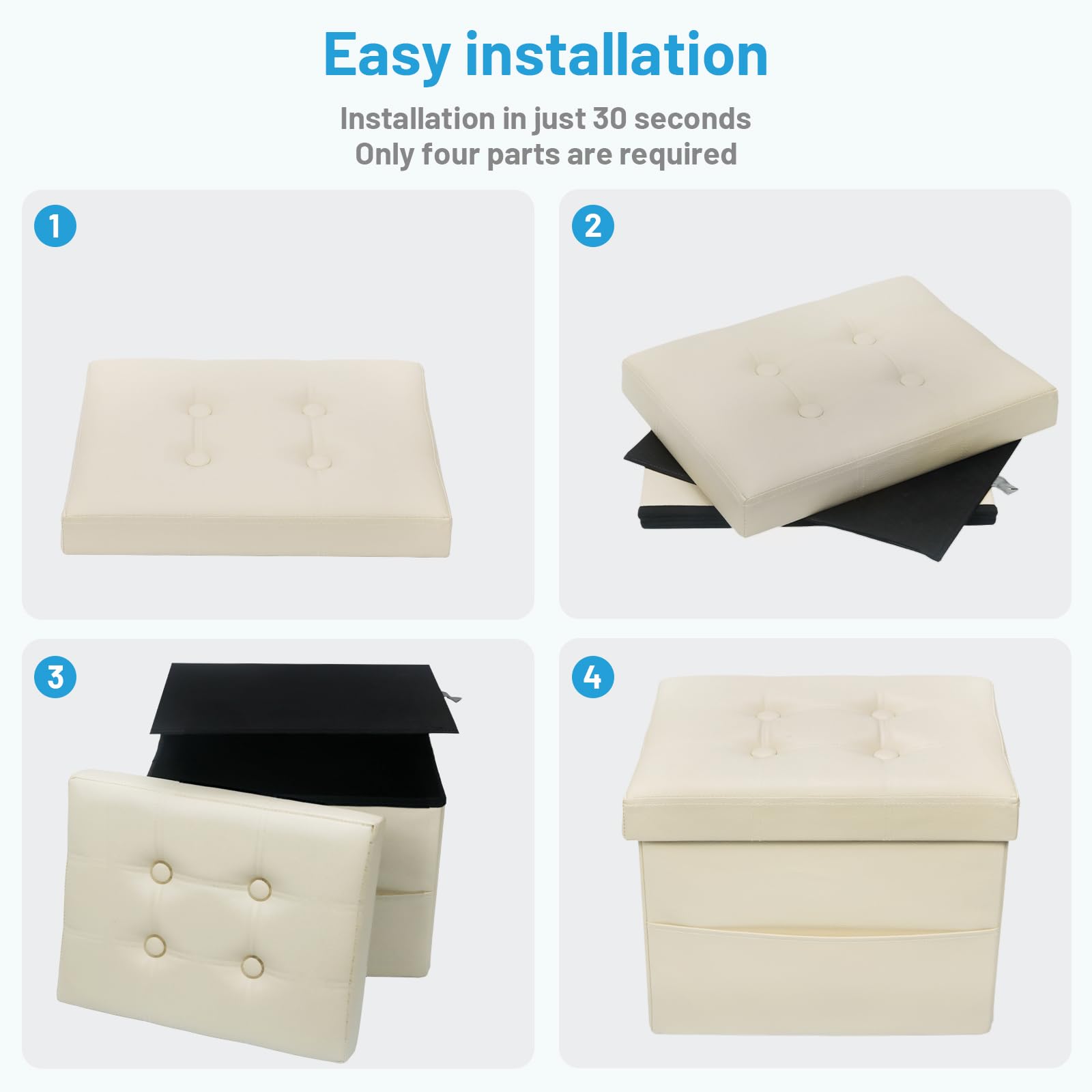 • FOLDABLE & EASY TO ASSEMBLE: Setup takes seconds only. Unfolding, pose base board and cover it then. It’s lightweight folding design allows you to store this ottoman away when not in use.