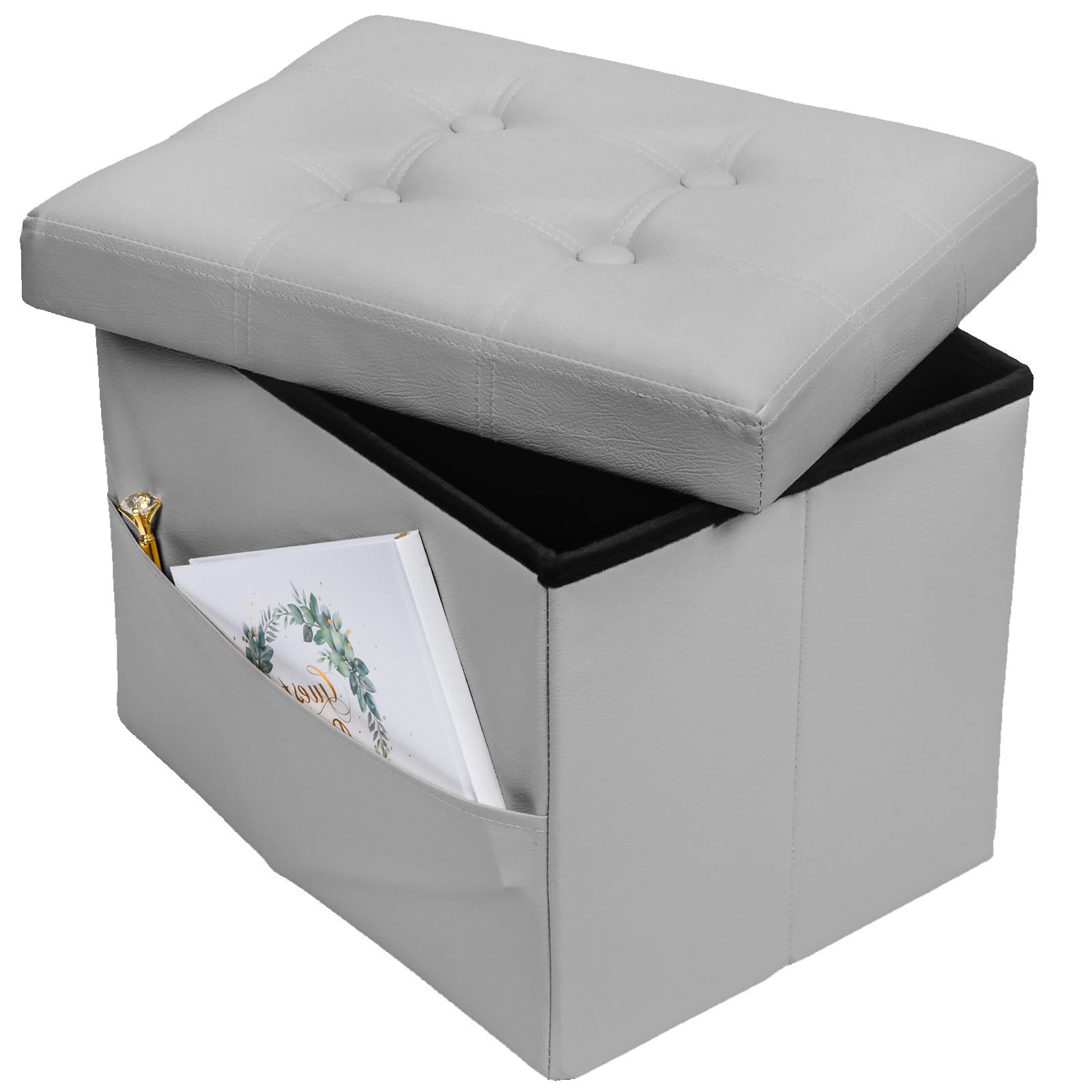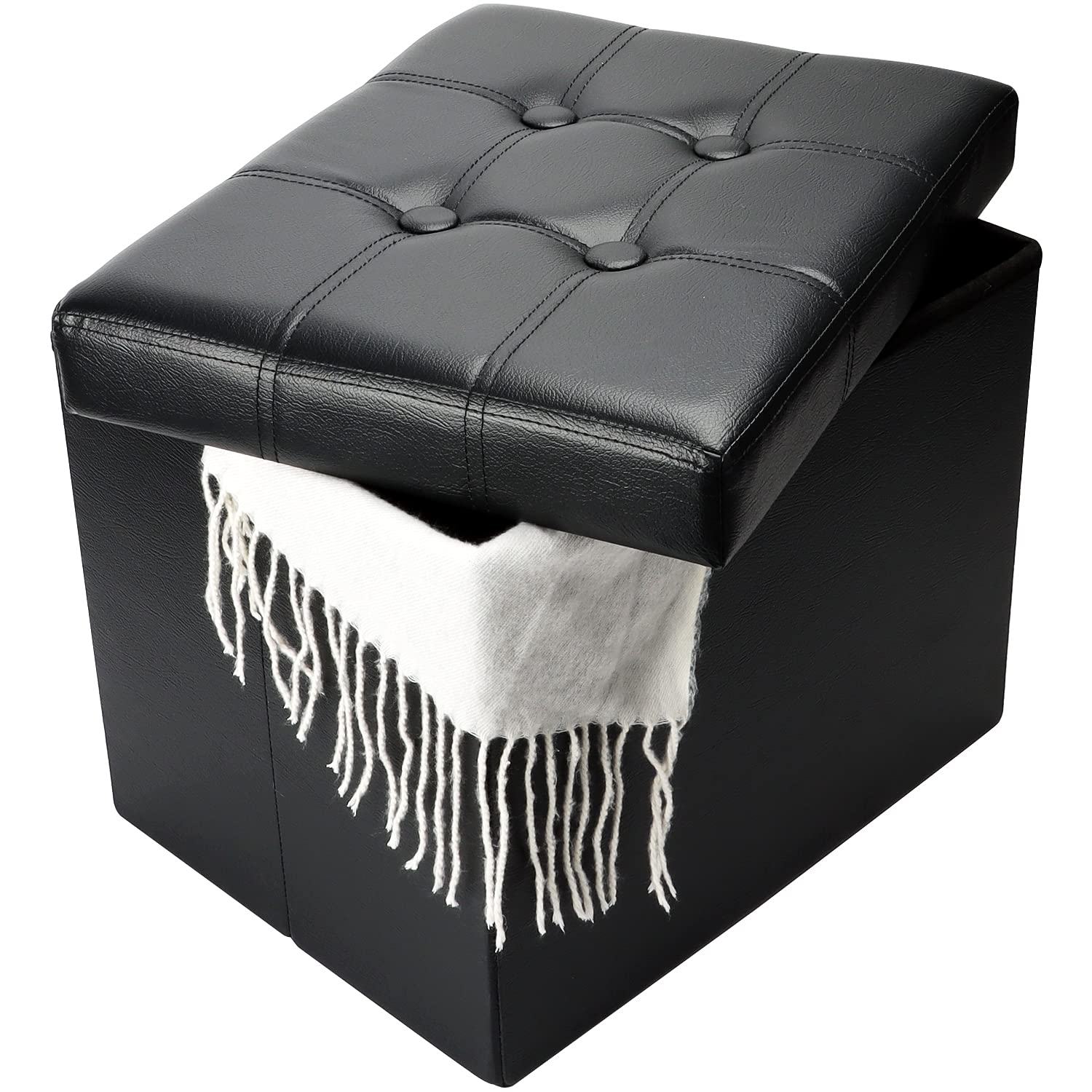 Bsketa Storage Ottoman, Folding Foot Stool with Thicker Foam Padded Seat Small Leather Storage Ottoman Bench Foot Rest for Living Room Foldable Coffee Table 17x13x13in,Black