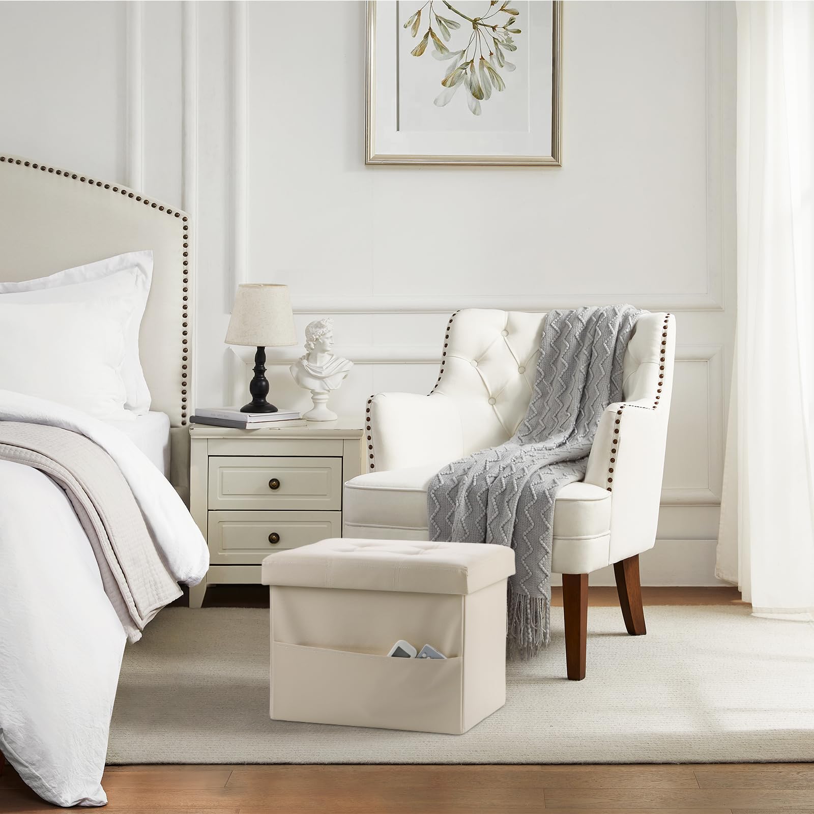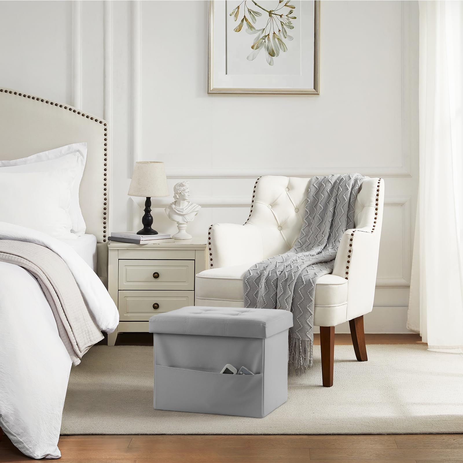 • PERFECT FOOT REST STOOL: L17 x W13 x H13in, Specially designed size and high-quality thicker soft foam, bring more comfort for your foot rest. Spacious hidden storage room for sundries including clothes, blankets, children's toys or many other stuffs inside; organize your living room, bedroom and hallway.an