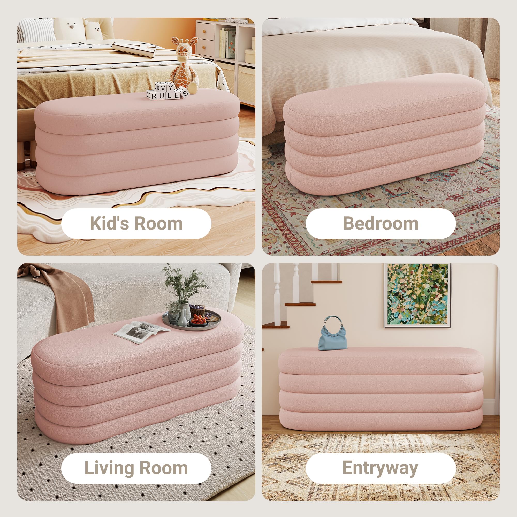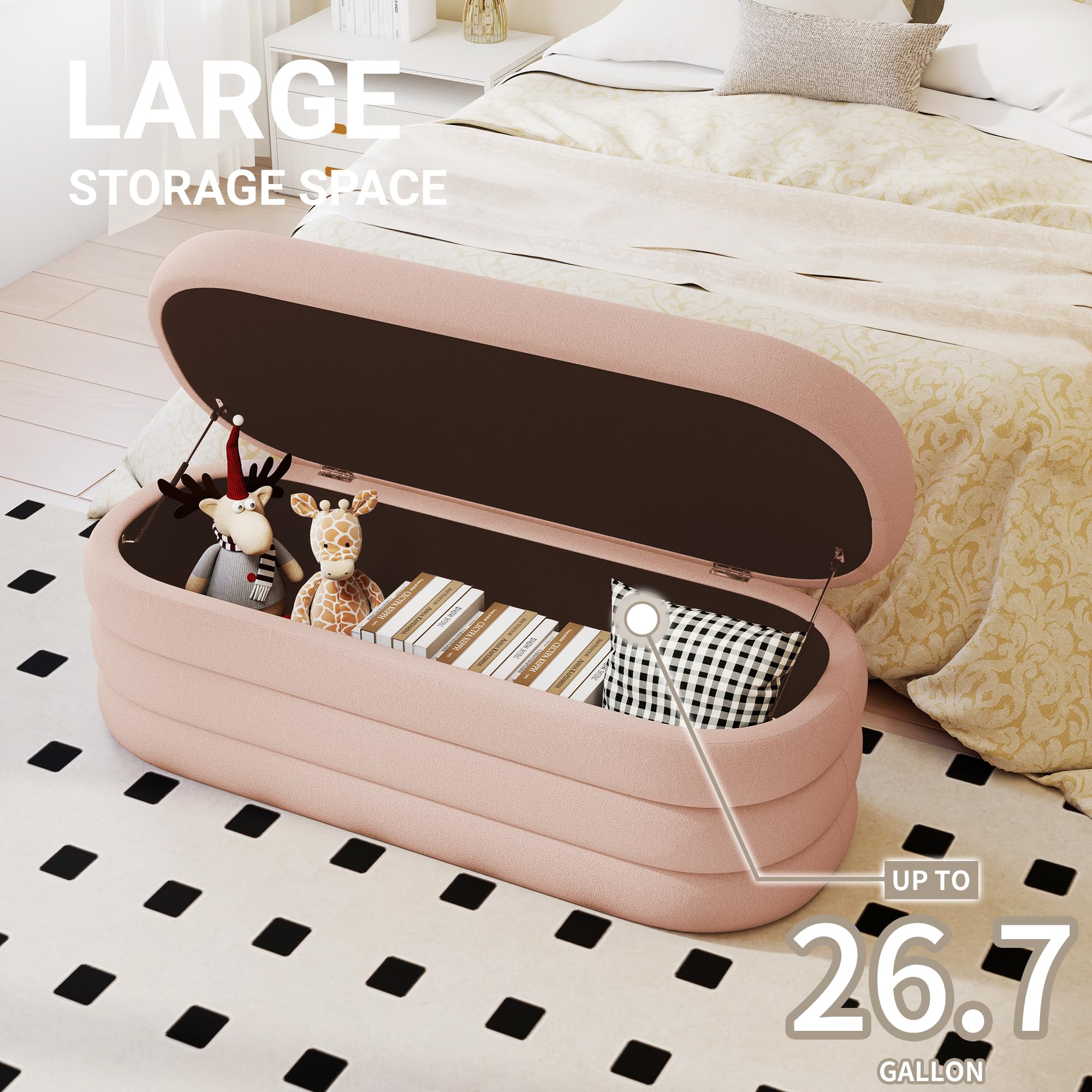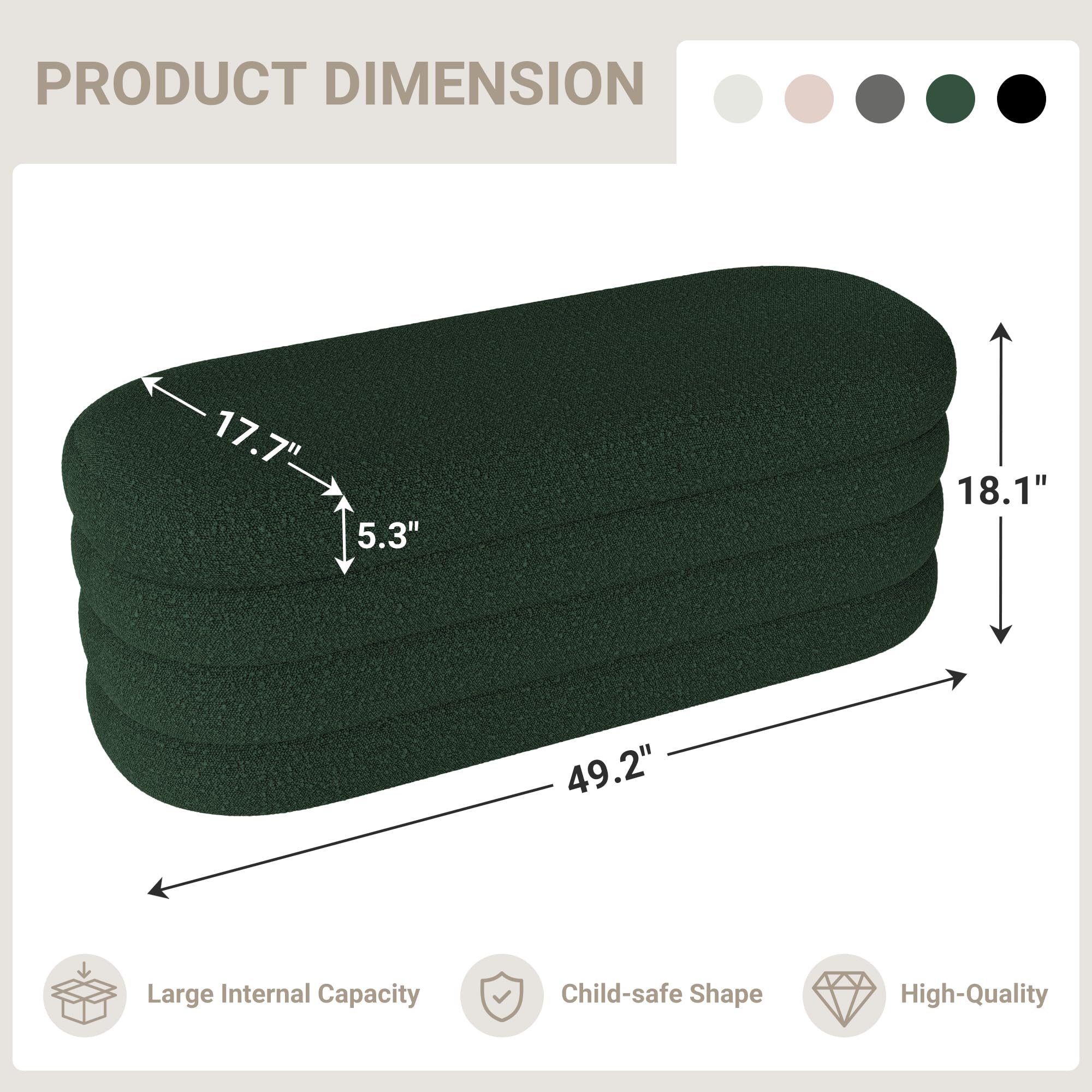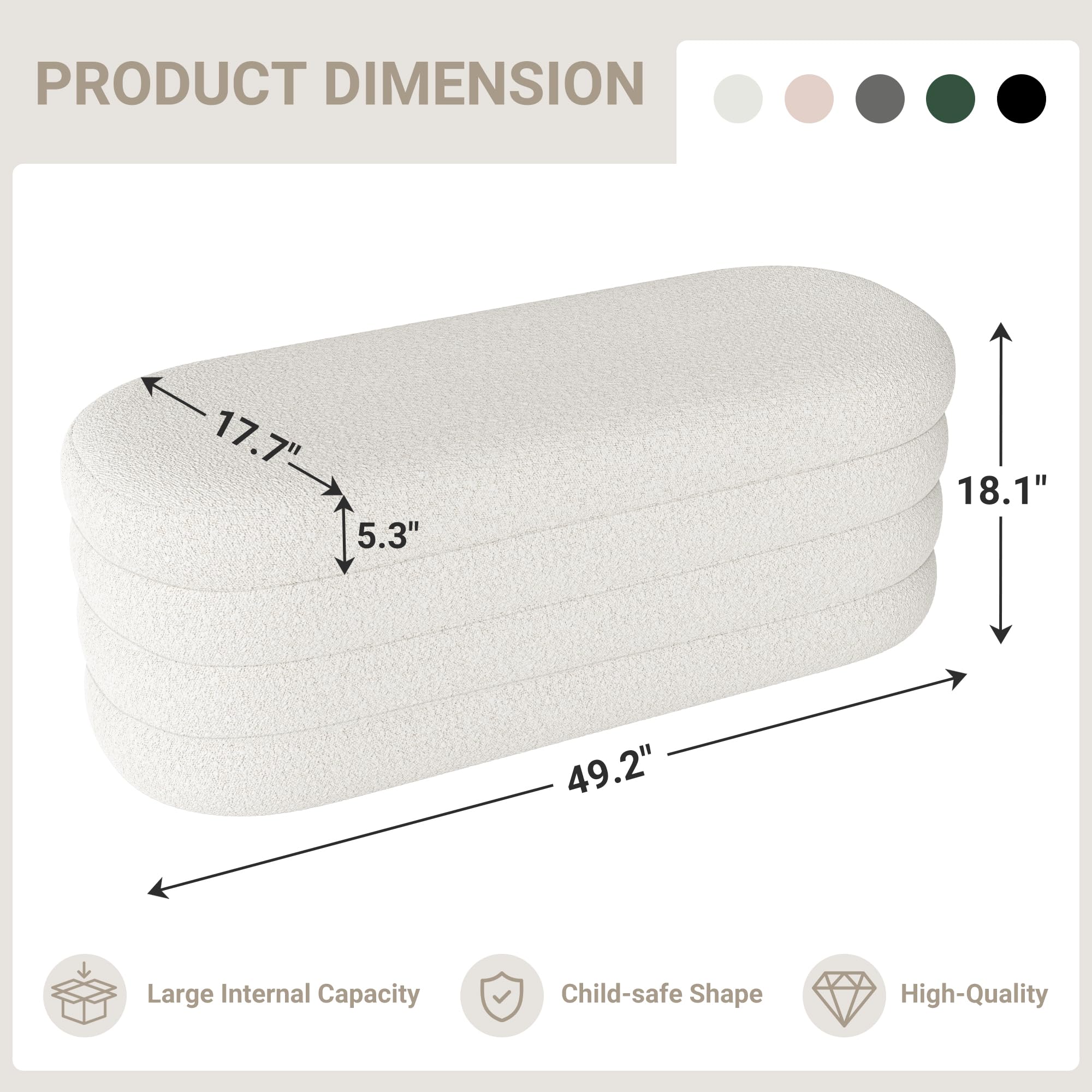 Busaurus Storage Ottoman Bench 49.2 Inch Upholstered Fabric Storage Bench for Bedroom End of Bed Aesthetic Large Oval Ottoman for Living Room Entryway (Ivory)