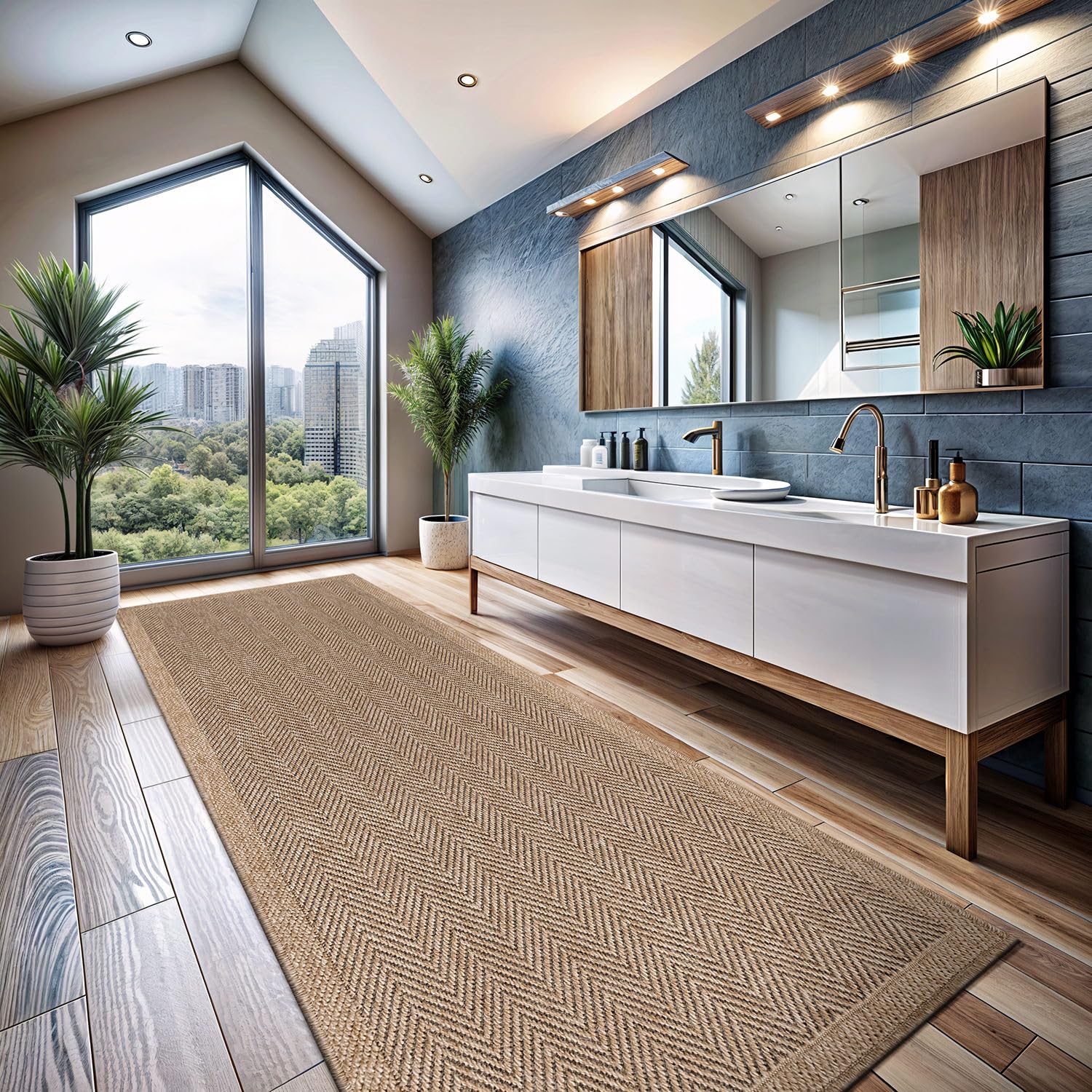• [ EASY JUTE RUG ] Experience the enchantment of a resilient rug mimicking the appearance of natural jute, courtesy of our latest Easy-Jute rugs. (Jute-free in reality) Crafted from secure polypropylene, these rugs are resistant to cracking, ensuring they remain free from scratches, shedding, or unraveling over time.