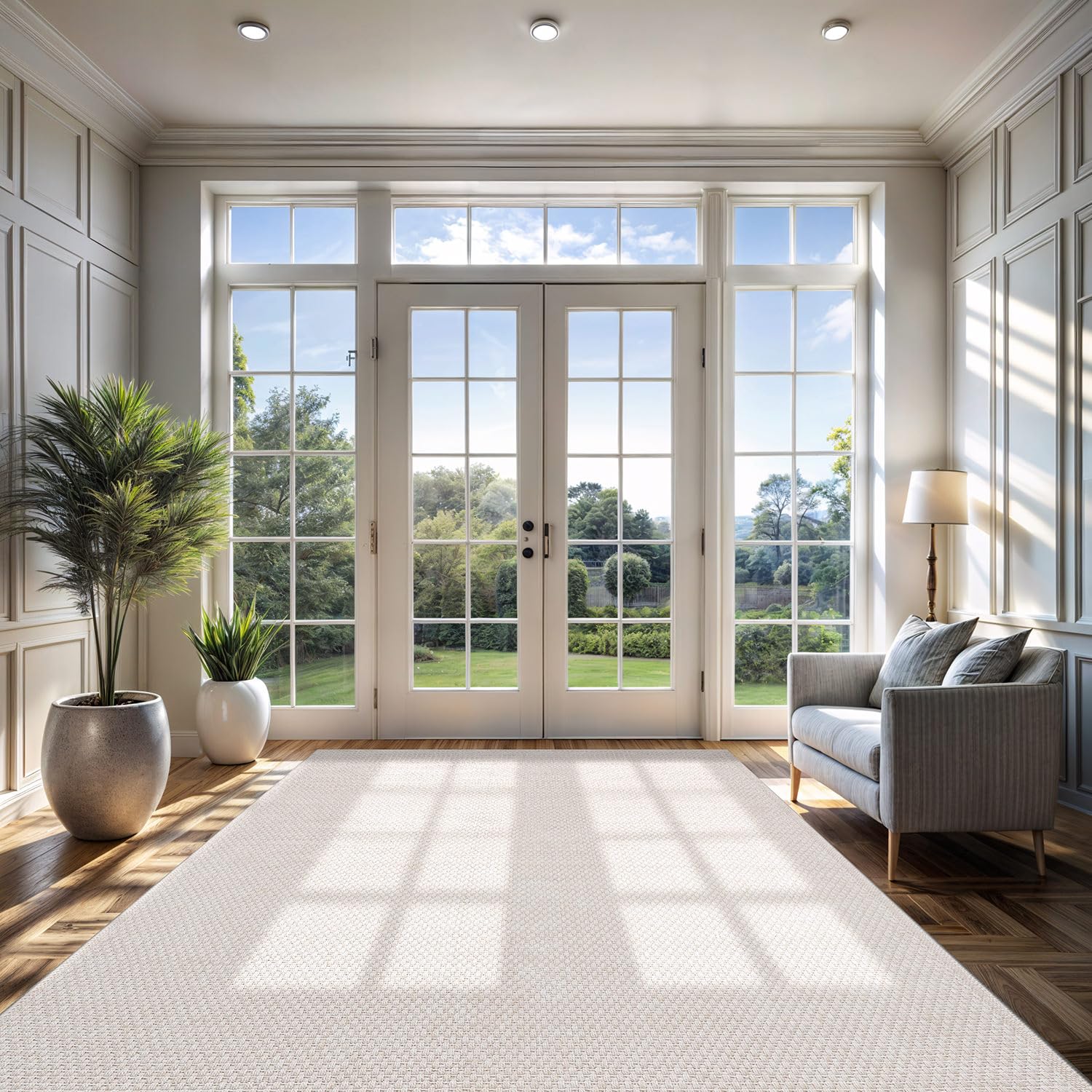 CAMILSON Easy Jute Rug 10x14, Indoor Outdoor Natural Color Fiber Area Rugs for Living Room Patio and Kitchen Rug, Sisal Boho Woven Design, Easy-Cleaning, Washable Outside Carpet Alfombras (10 x 14)