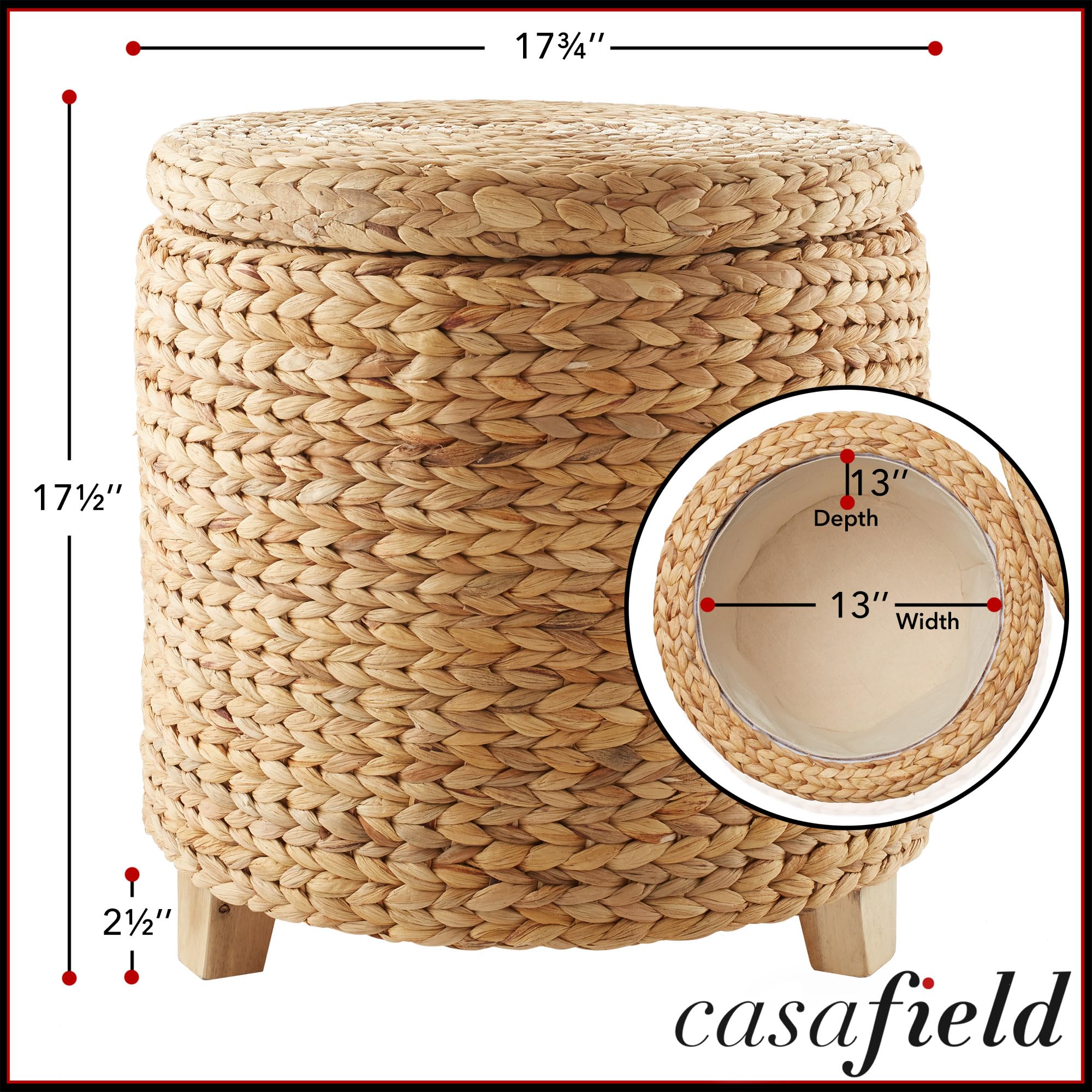 Dimensions: This round storage ottoman measures 17-3/4" Diameter x 17-1/2" High and will fit easily into small spaces. Its compact size provides a multipurpose storage solution and will not overpower your room's decor and living space. Due to the handmade nature of these products, each piece is unique; please allow for slight variation in measurements.