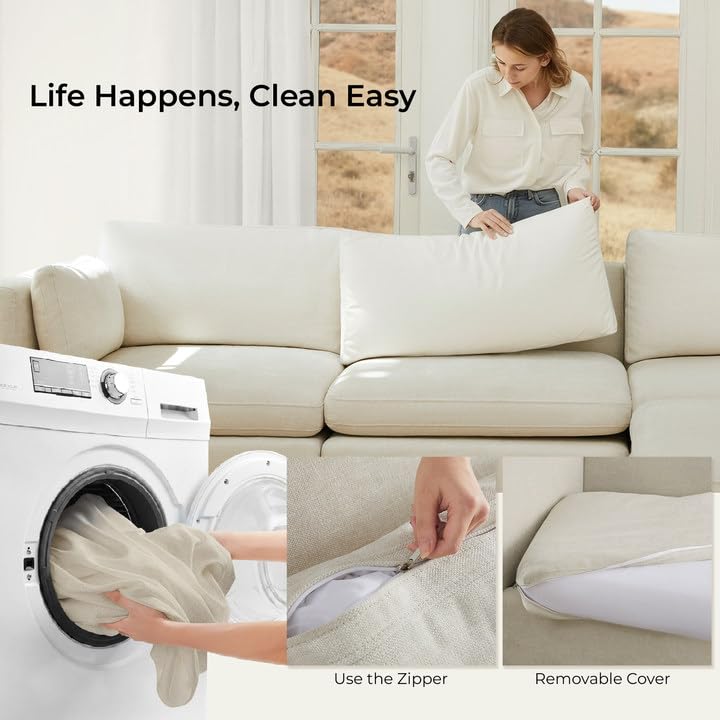 CHITA Oversized Modular Sectional Sofa, FSC Certified L Shaped Sectional Couches for Living Room, 112 inch Width,4 Seat Modular Sofa with Storage Ottoman, Linen