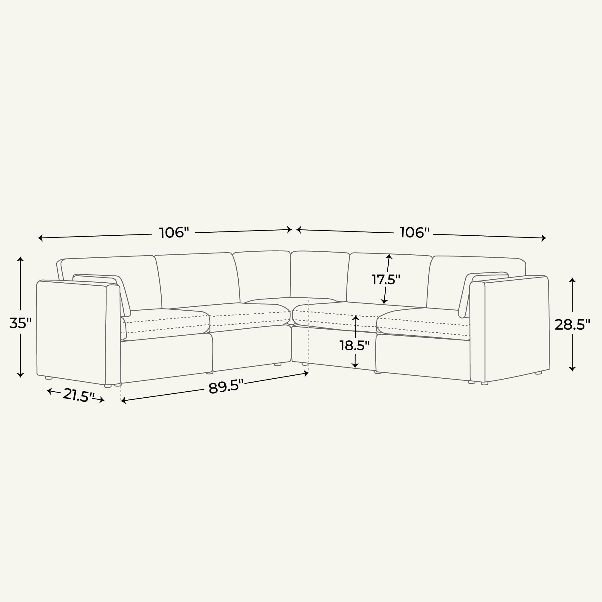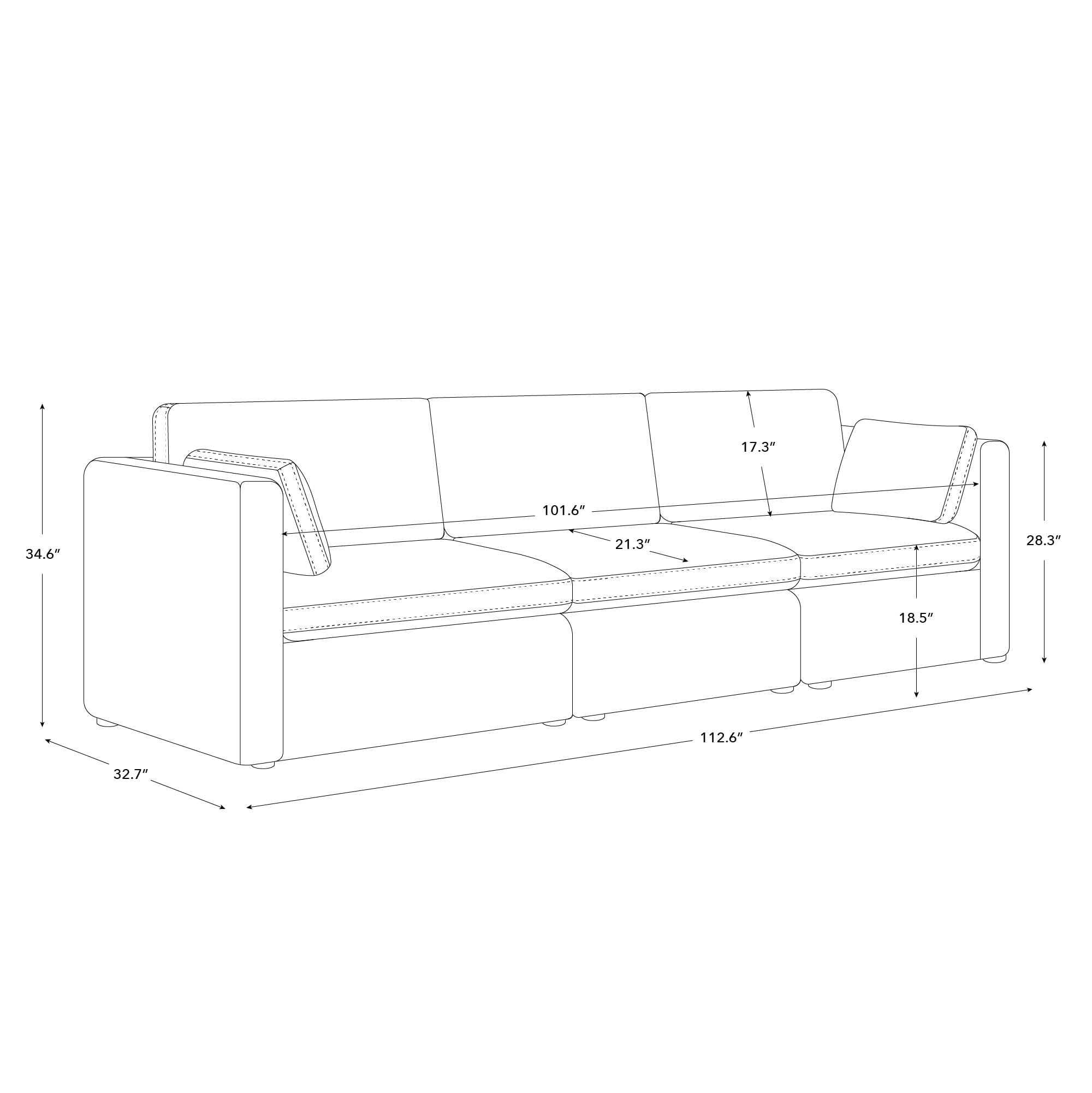 • 4-Piece Modular Sofa Chaise with Larger Seats - CHITA modular couches feature clean and classic design with comfortable and wider seats to offer you a never ending relax after a long day. Each seat has a 34'' seat width - 30% larger than most counterparts. Individual seat dimension: 34''W x 21.5''D x 18.5''H. Only three seats are needed to achieve a 112'' overall width.