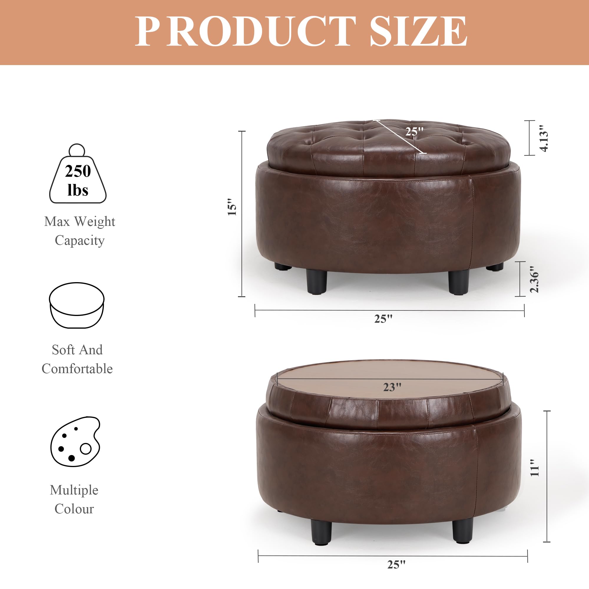 ✅Dimension – Ottoman:25"L*25"W*15"H,Weighing at 17.31 lbs our Round Ottoman Storage supports a capacity of up to 250lbs .If you have any questions about the products, please feel free to contact us, we will always be online and within 24 hours to respond to your questions in a timely manner to solve your confusion and worries