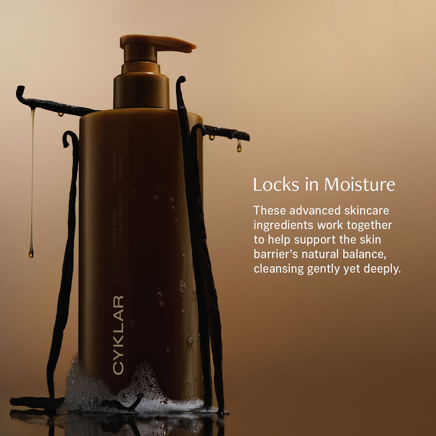 CYKLAR Sensorial Body Wash. Vanilla Verve Hydrating Cleanser with Moisture Locking Multi-Oil Complex, Sodium PCA and Glycerin. Nourishing Shower Gel for Women and Men, 16.5 Fl Oz Luxury Bodywash