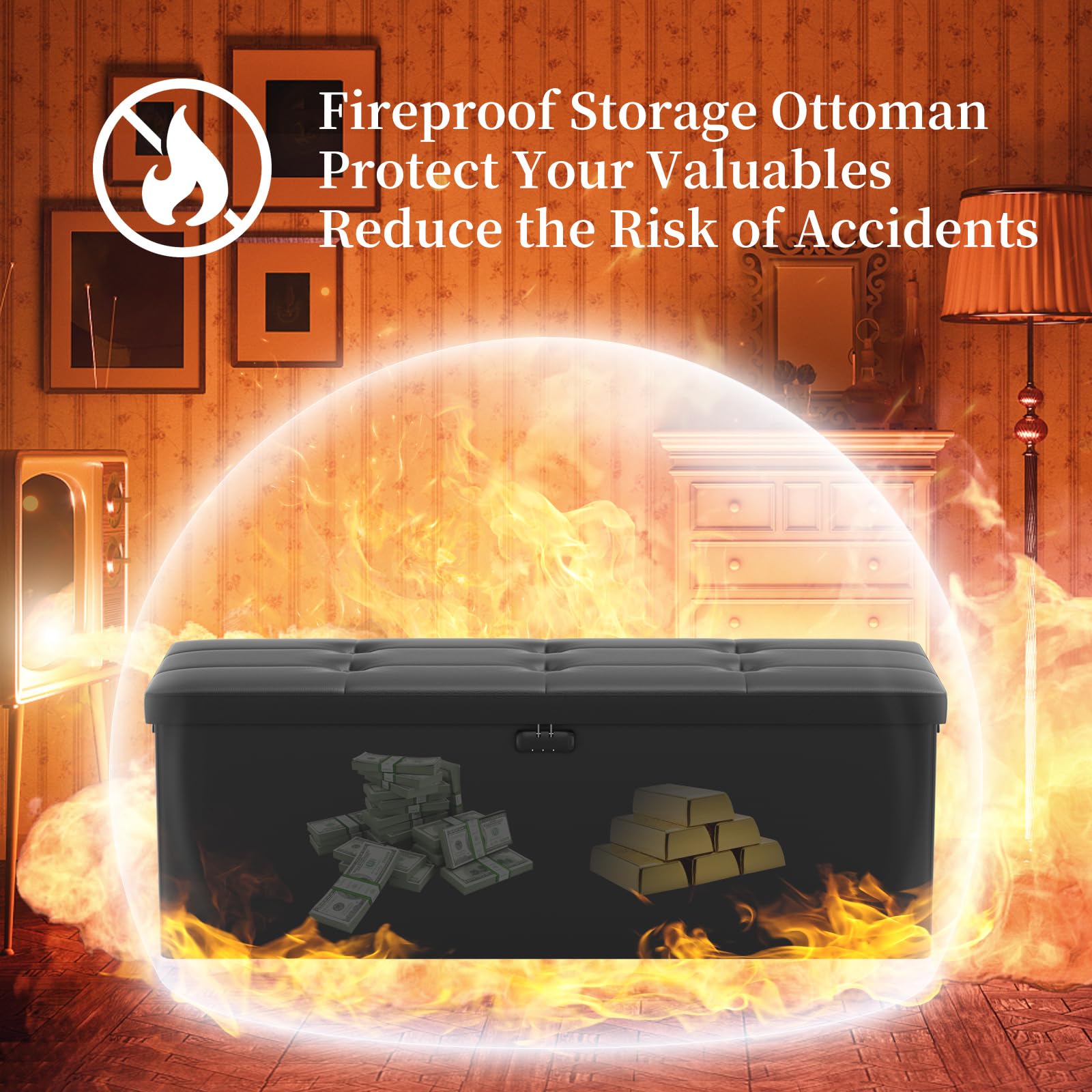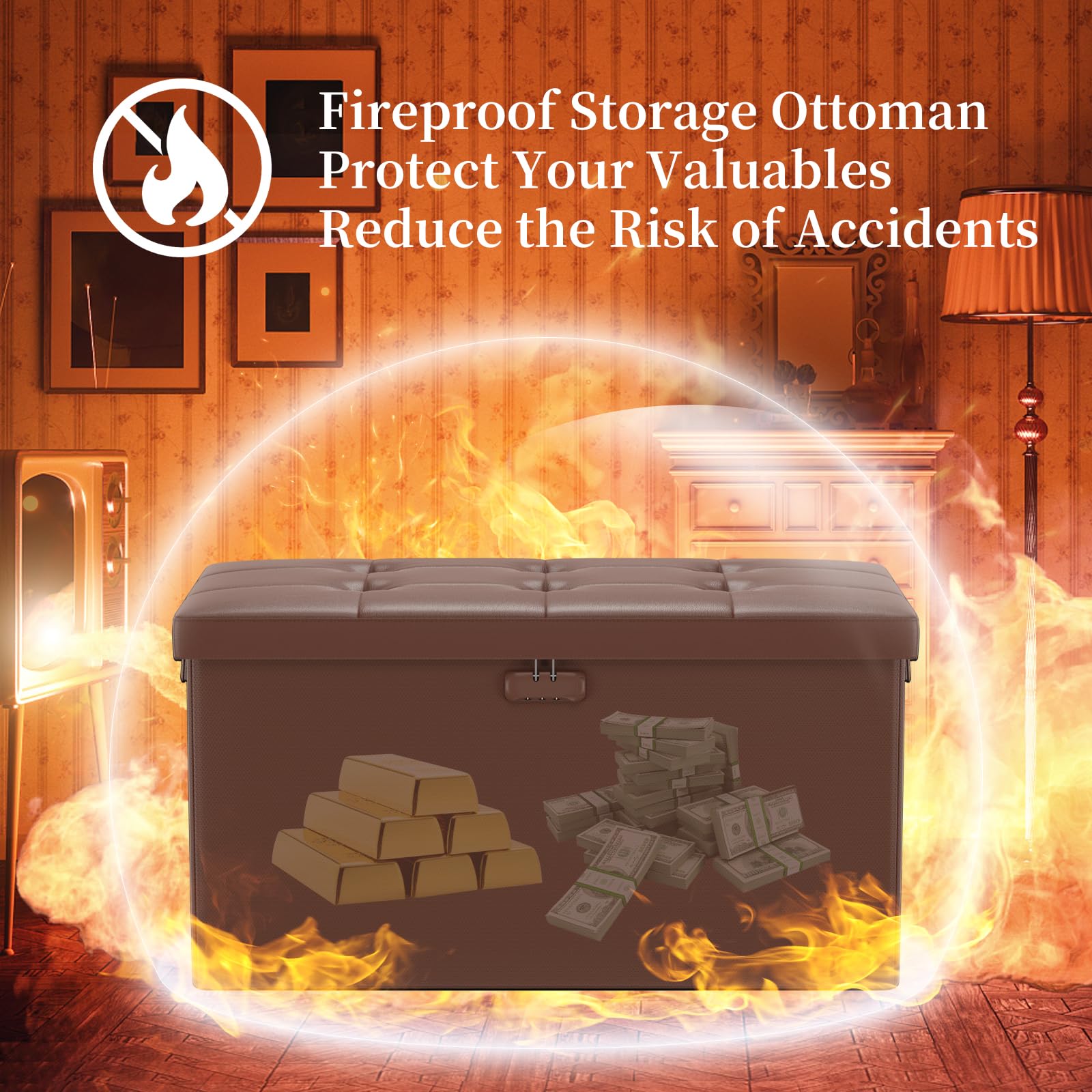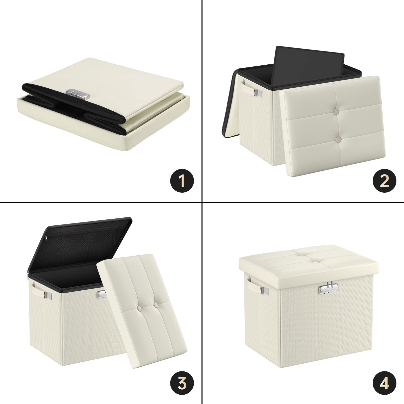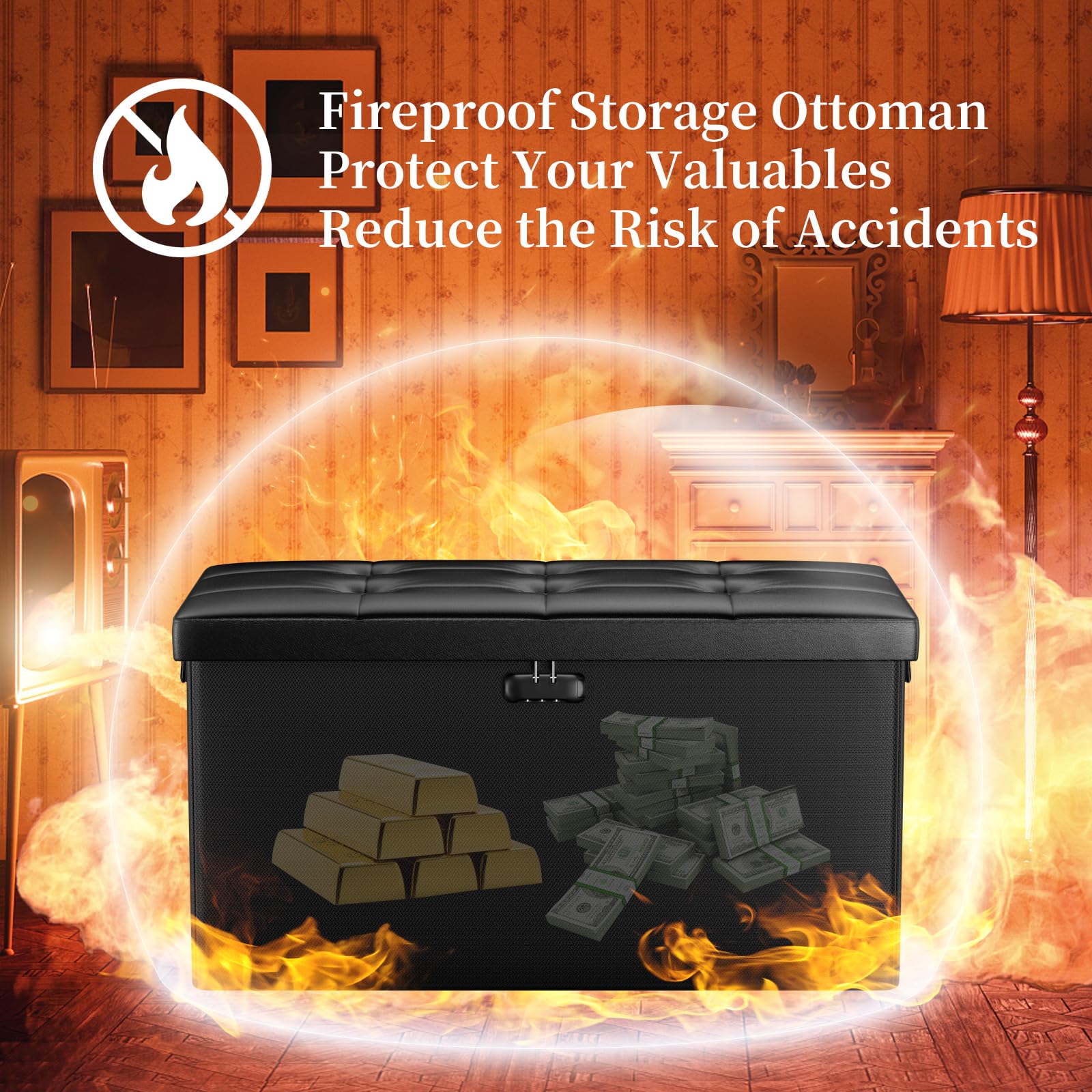 • Trusted After Sales Service: Easily folded up when not in use.For the file&money, this is a great alternative to a heavy fireproof safe that would be very difficult to move in case of a true emergency. This is one you could pick up and toss in your car/truck as you leave the premises.Our ottoman is so lightweight that in the event of a disaster you can just grab it and go.If there any quality problem,please feel free to let us know.We promise to arrange a REPLACEMENT or 100% REFUND immediately.