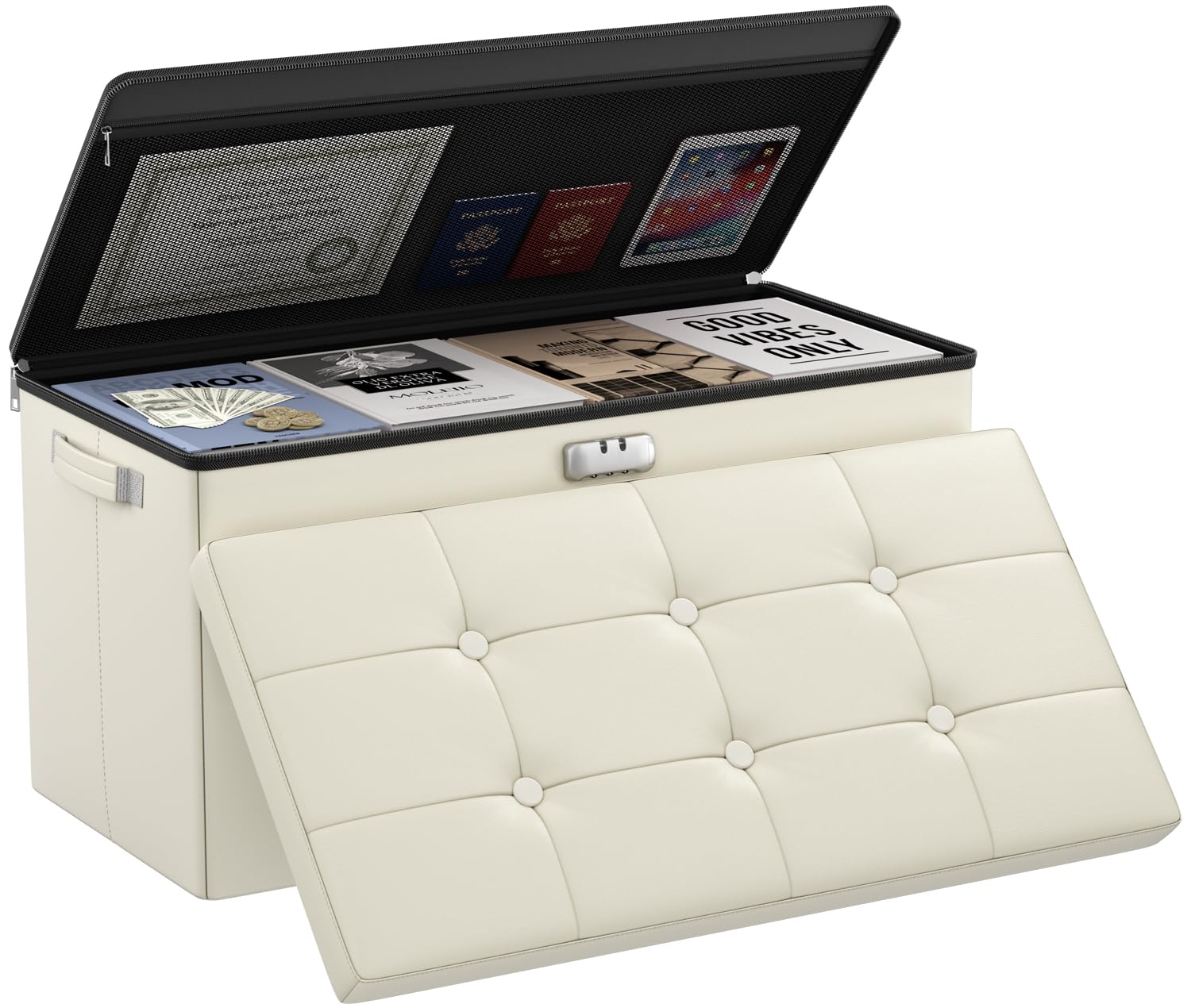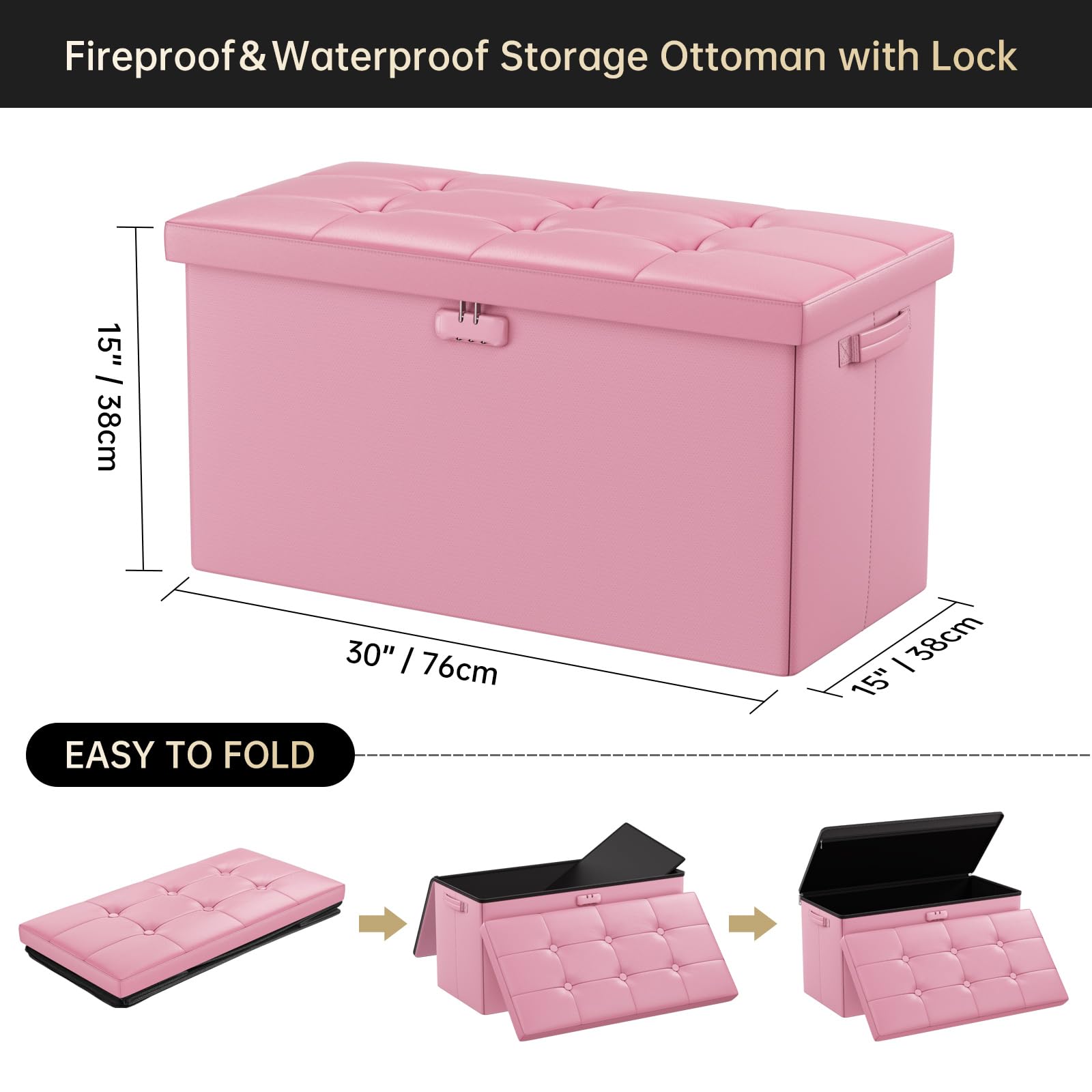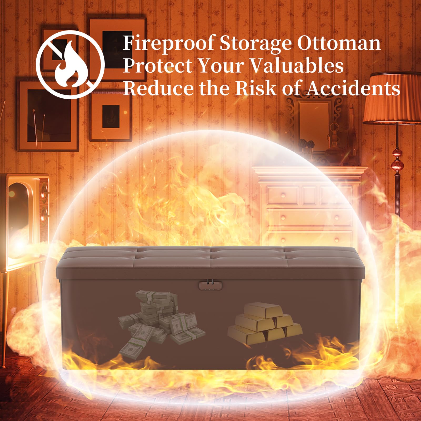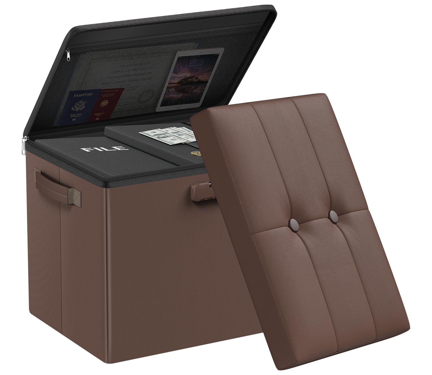 • Trusted After Sales Service: Easily folded up when not in use.For the file&money, this is a great alternative to a heavy fireproof safe that would be very difficult to move in case of a true emergency. This is one you could pick up and toss in your car/truck as you leave the premises.Our ottoman is so lightweight that in the event of a disaster you can just grab it and go.If there any quality problem,please feel free to let us know.We promise to arrange a REPLACEMENT or 100% REFUND immediately.