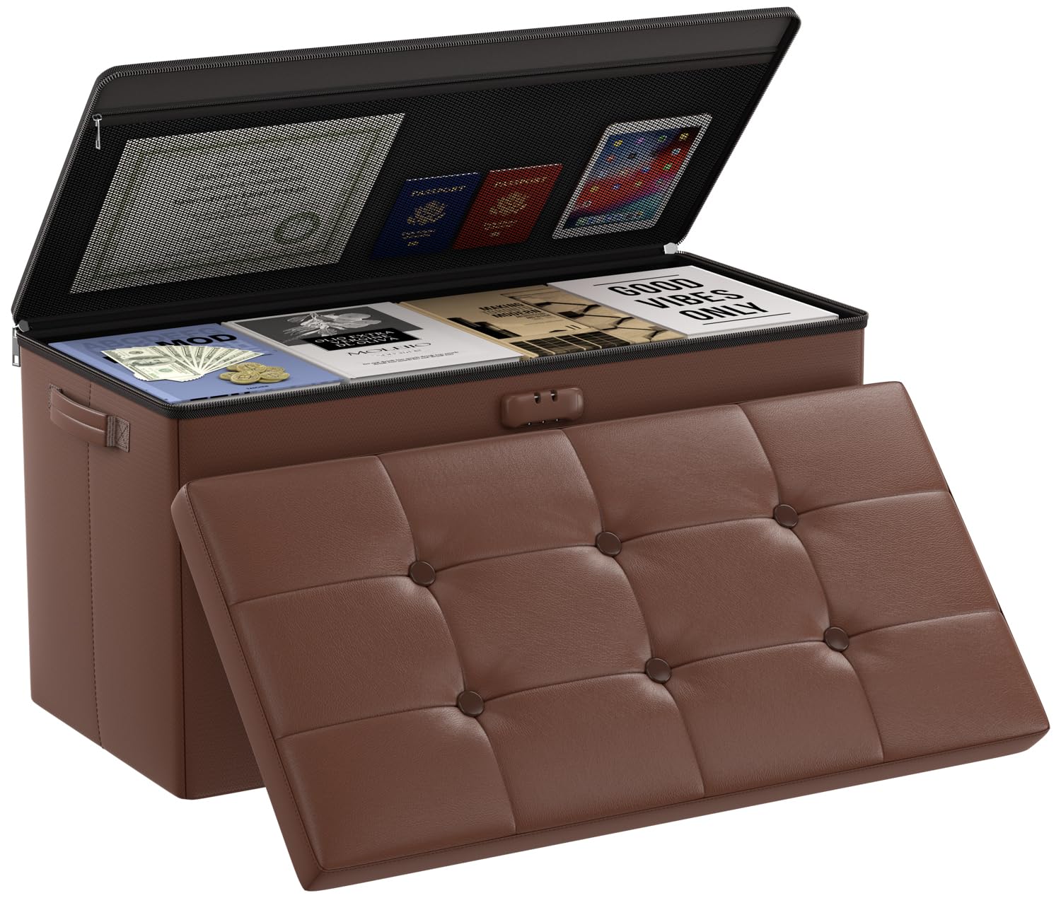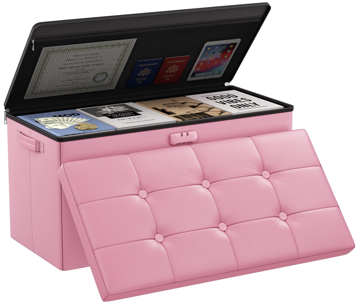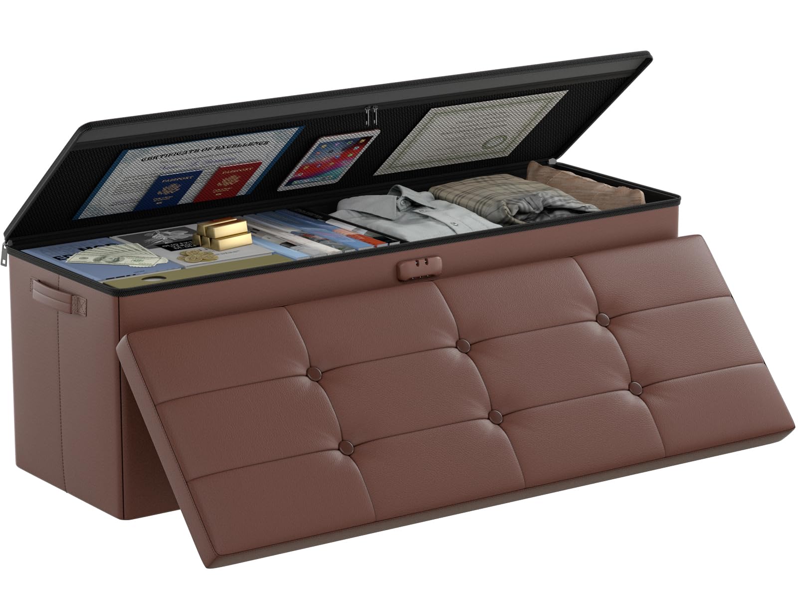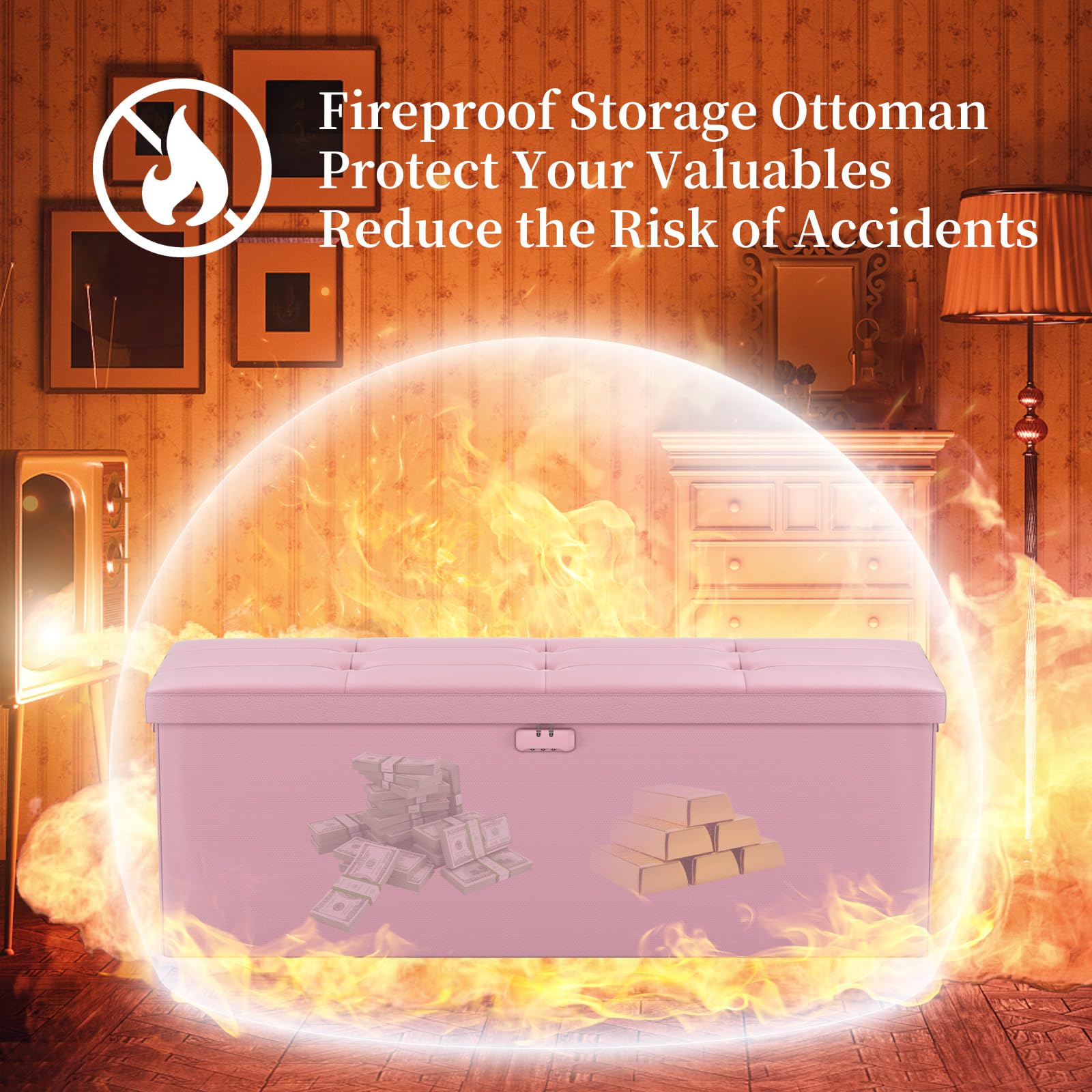 • Trusted After Sales Service: Easily folded up when not in use.For the file&money, this is a great alternative to a heavy fireproof safe that would be very difficult to move in case of a true emergency. This is one you could pick up and toss in your car/truck as you leave the premises.Our ottoman is so lightweight that in the event of a disaster you can just grab it and go.If there any quality problem,please feel free to let us know.We promise to arrange a REPLACEMENT or 100% REFUND immediately.