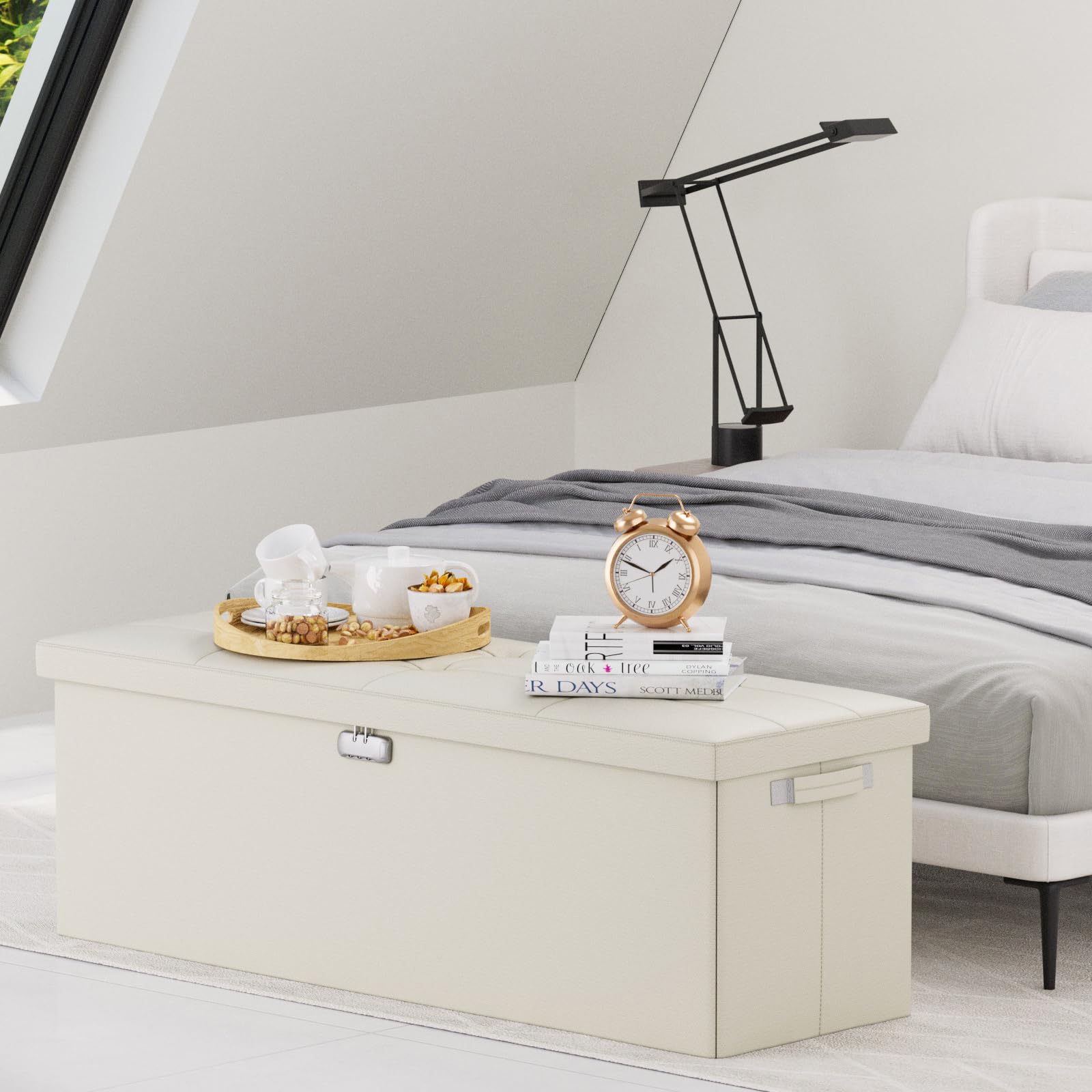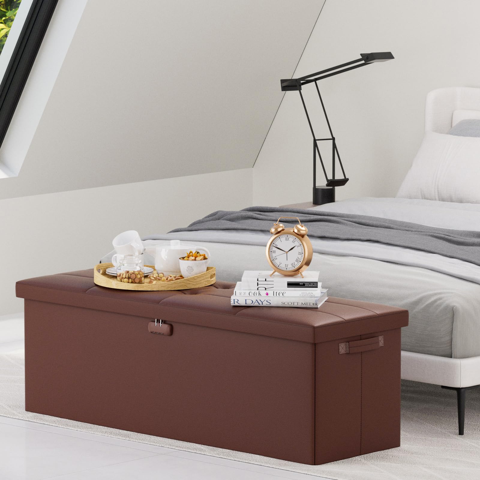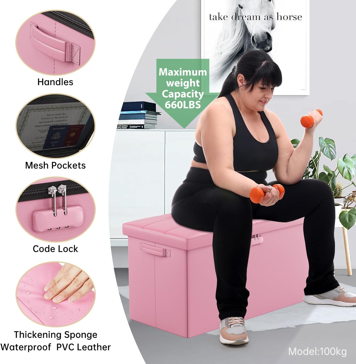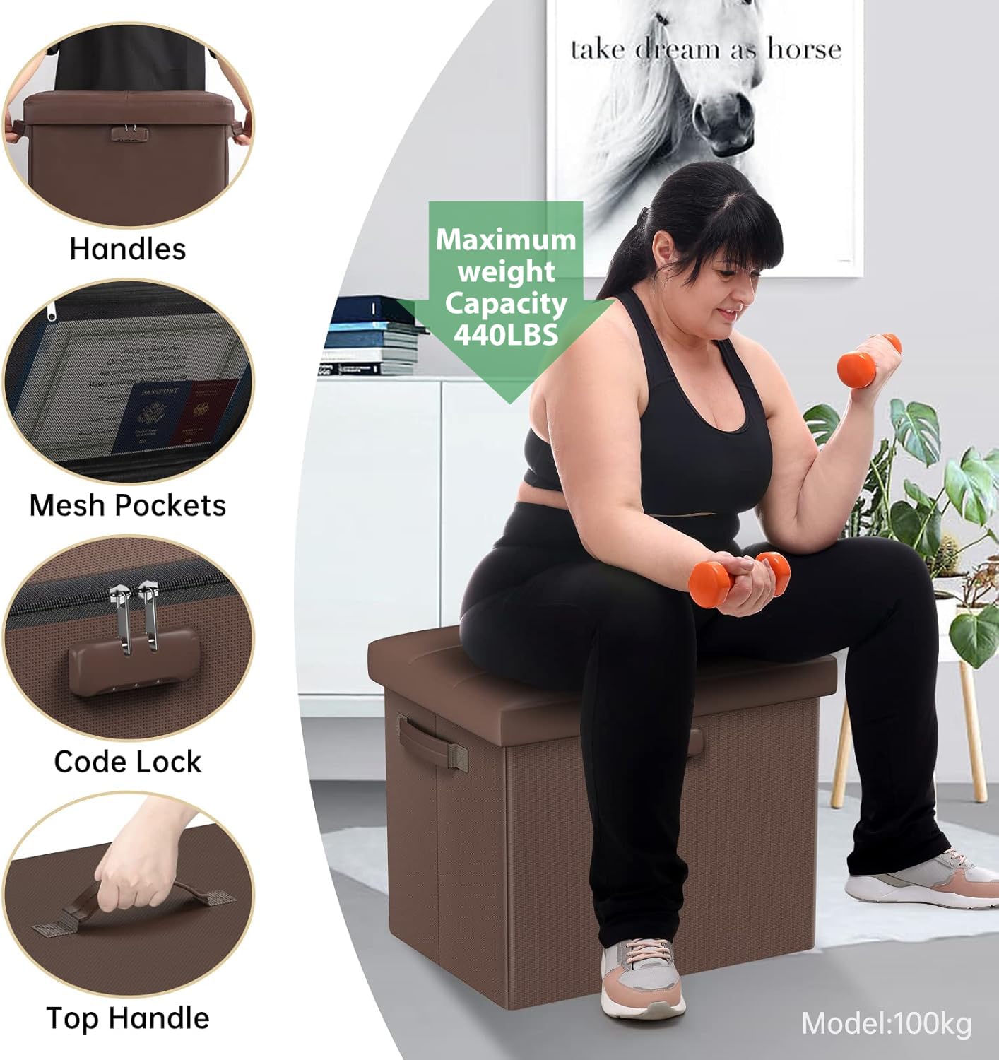• 47L Hidden Storage Space: Reduce the clutter in your home by storing electronic product,blankets,books or even for storing some valuable files,cash,Certificates. It's fun to keep valuables in a conspicuous bench with hidden space(mesh pocket on the lid for storing files).Fireproof storage ottoman can be used as a safe stroage box,coffee table,small seat,chair stool,bed footstool,climbing tool,perfect for study, bedroom, living room, student dormitory, RV,leg rest,living room storage, field