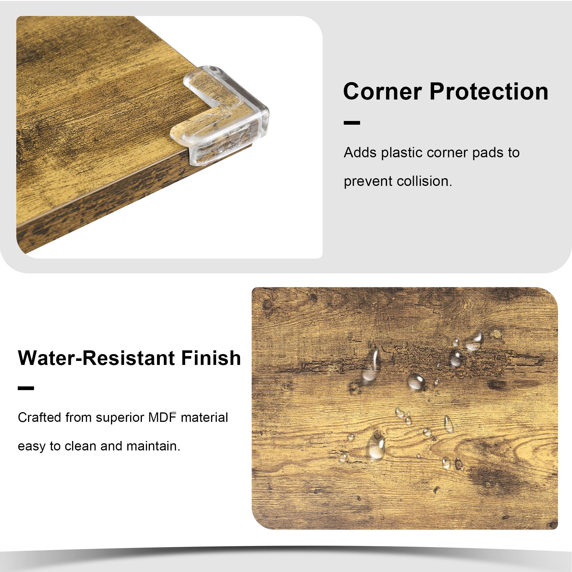 Easy to Assemble and Maintain: All needed hardware, tools and instructions are included in one package, convenient for quickly completing the assembly within 40mins. The splashproof treated surface is waterproof and scratch-resistant, when there are water or food spills, simply wipe it