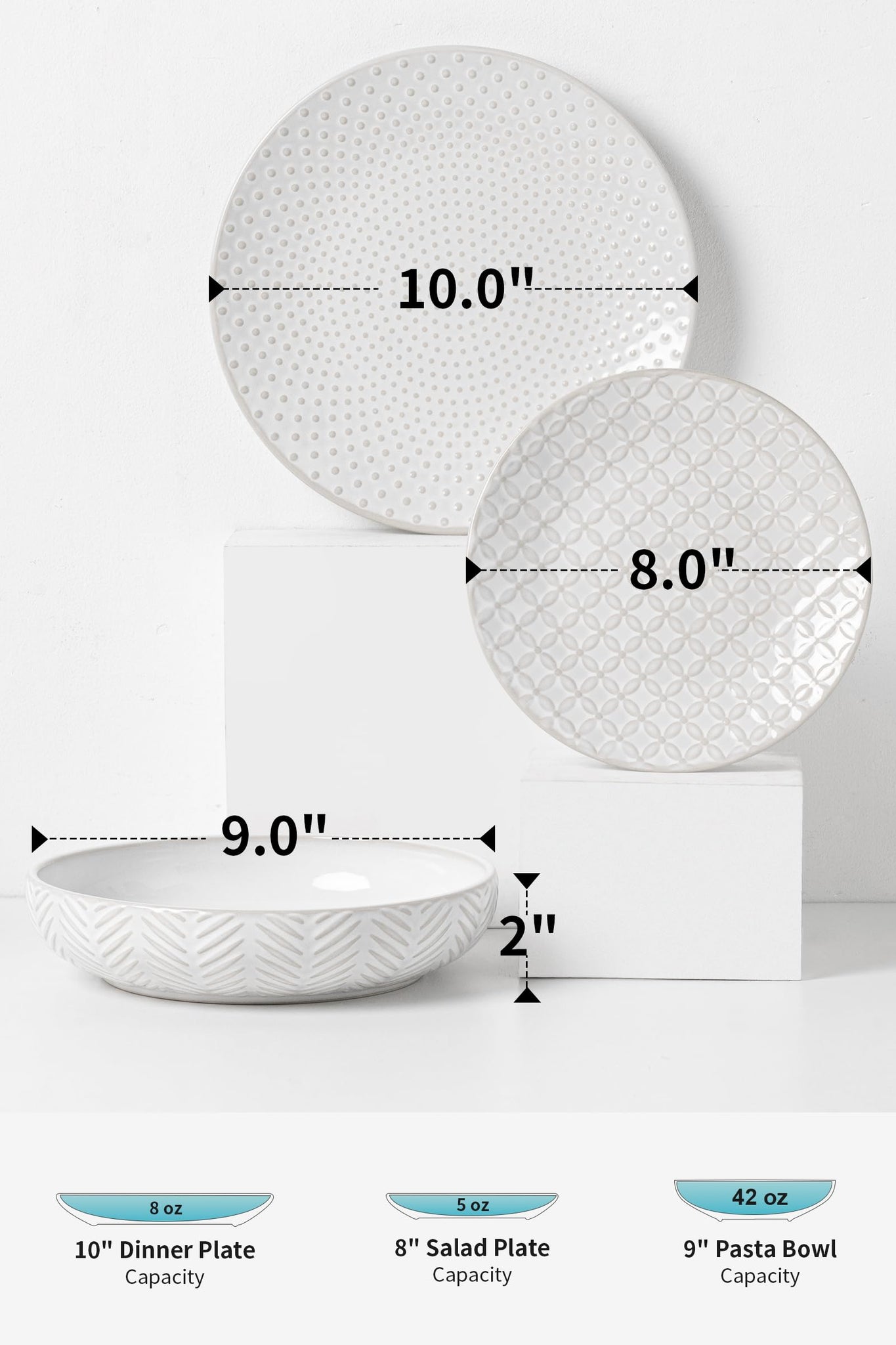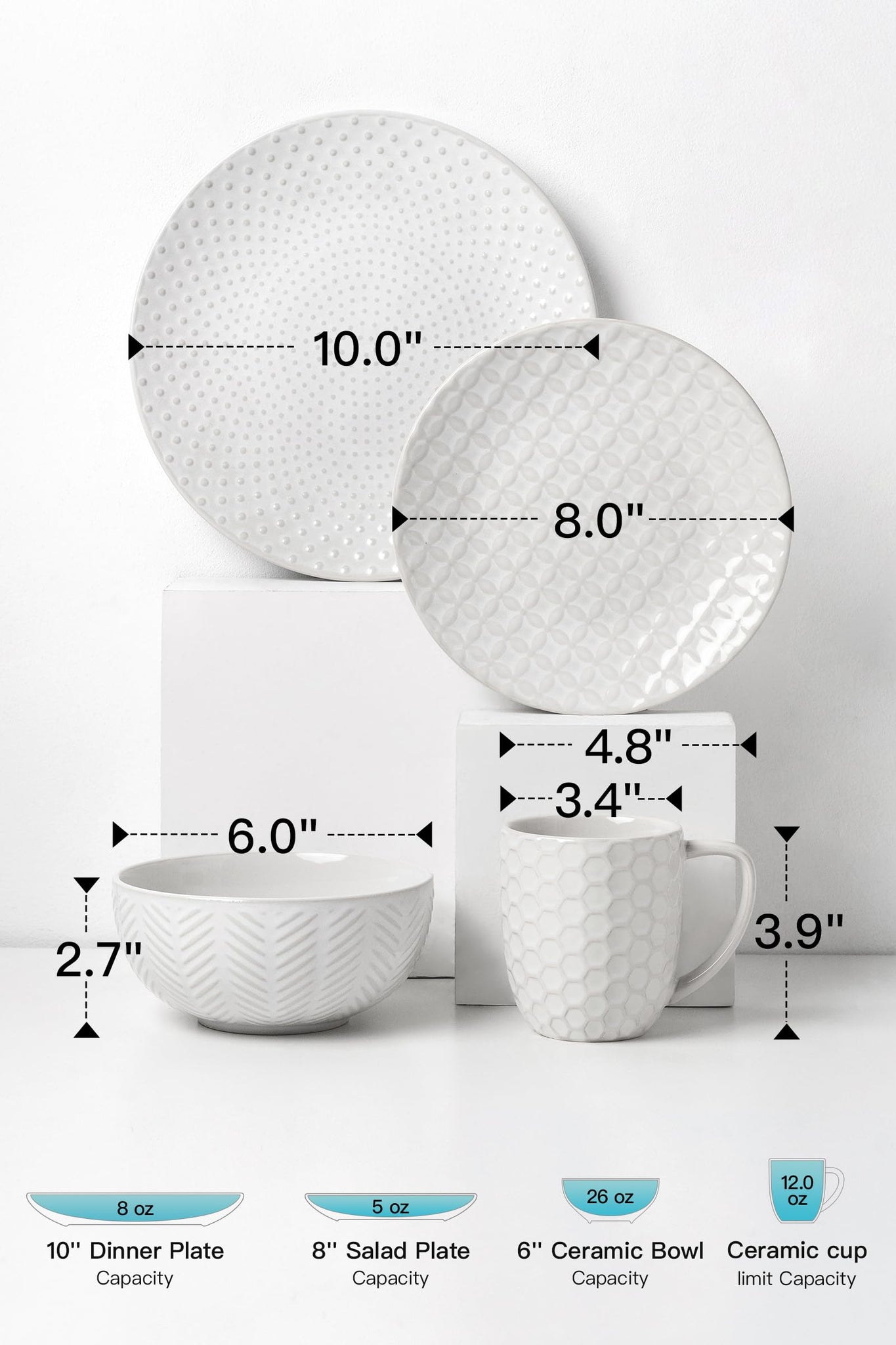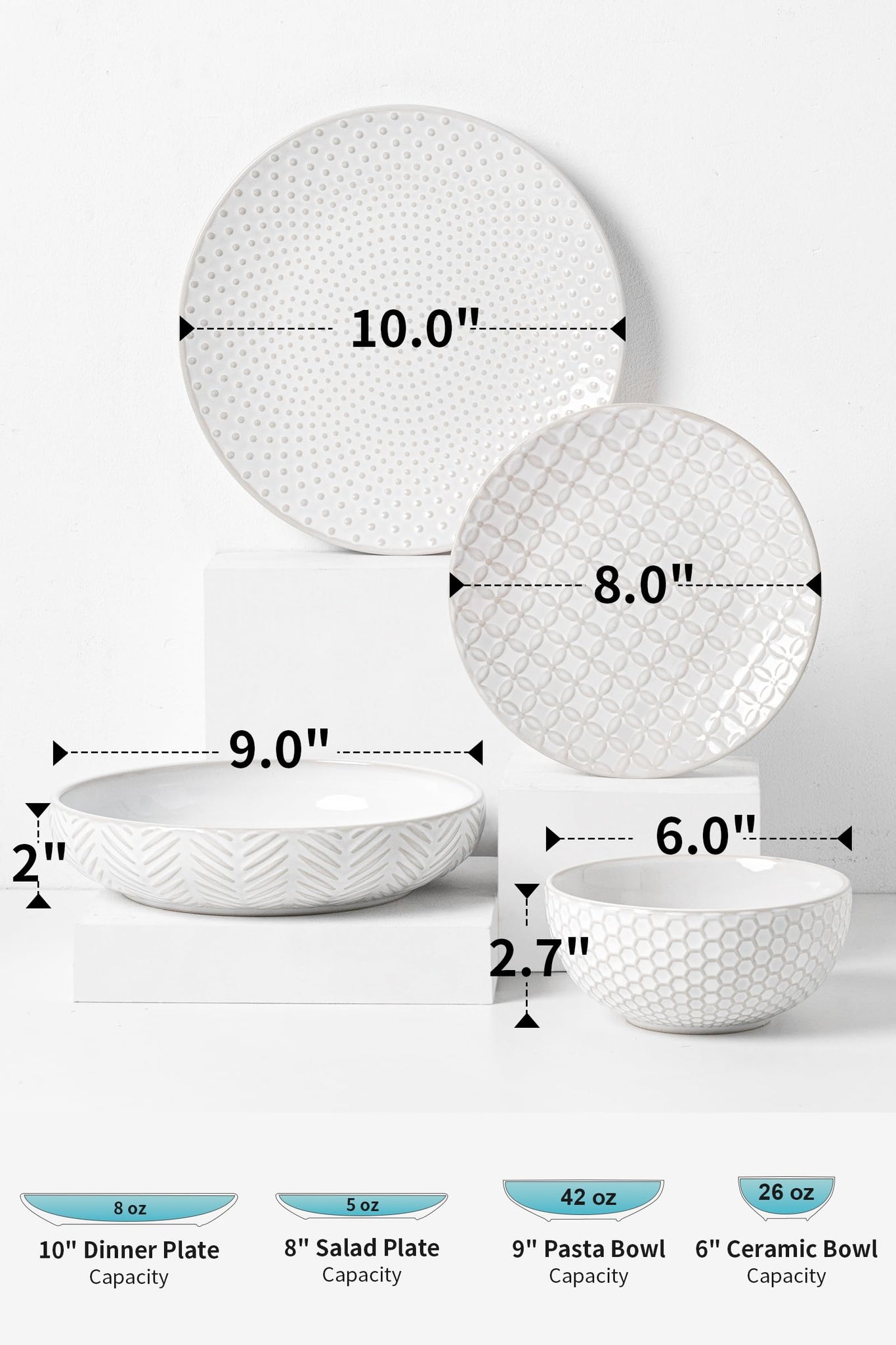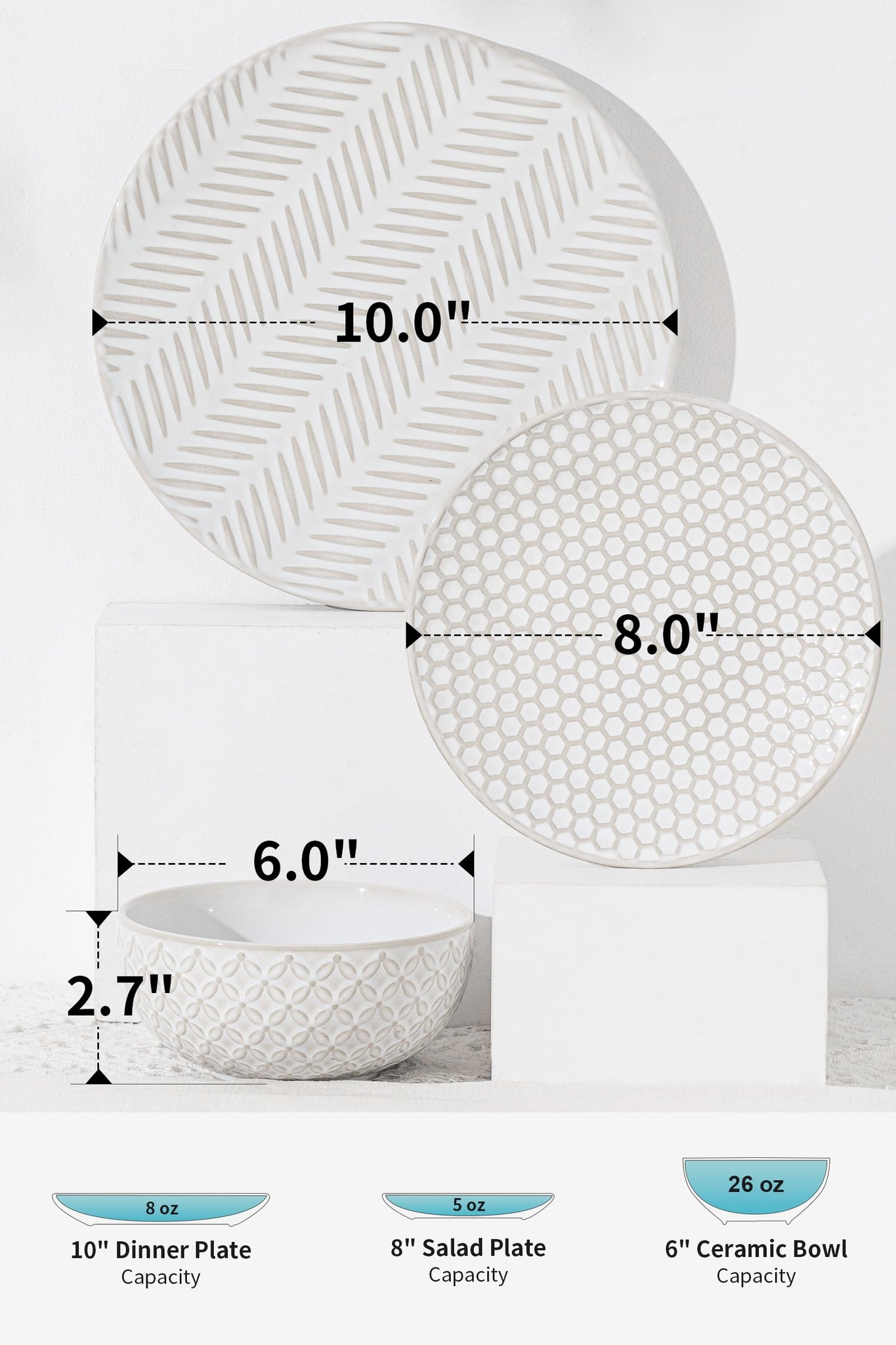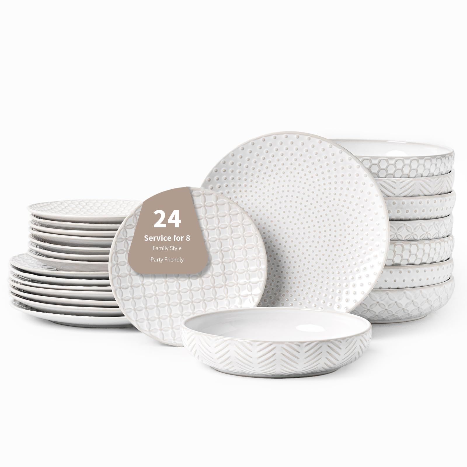 FOBENTA 24 Piece Dinnerware Sets for 8, Premium Stoneware Plates and Bowls Sets, Microwave & Dishwasher Safe, Elegant Dishes for Entertaining & Special Occasions โ A Stunning Gift for Large Families