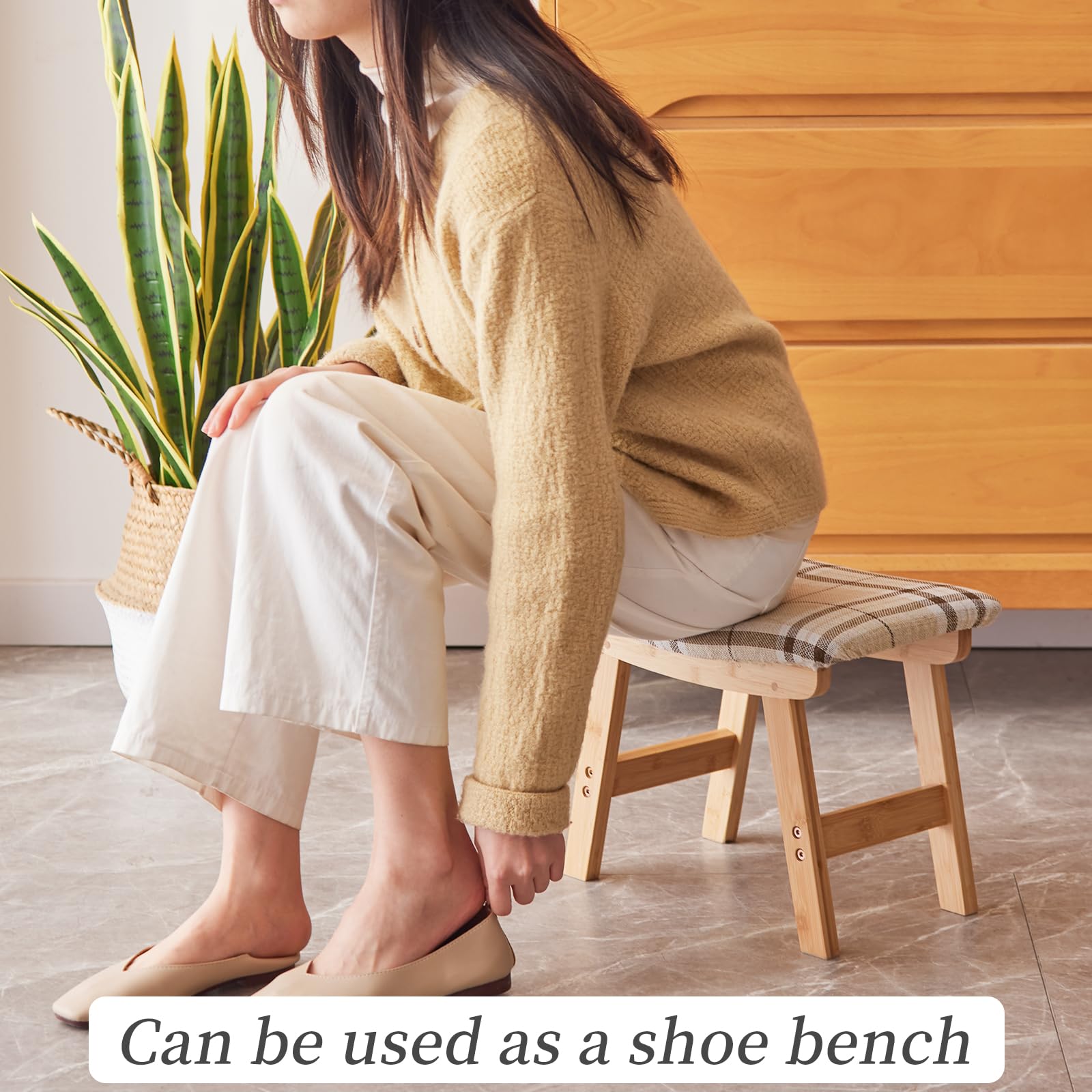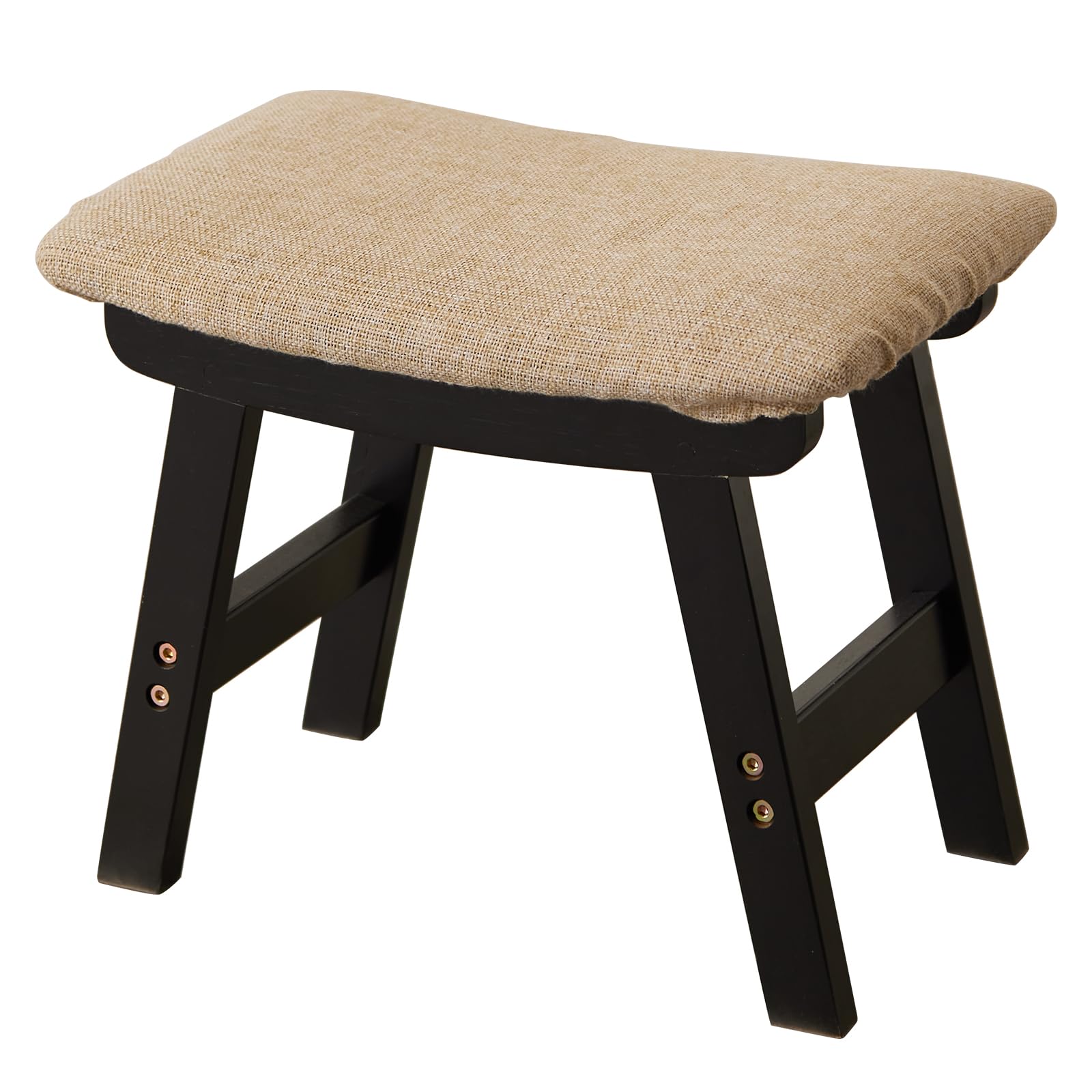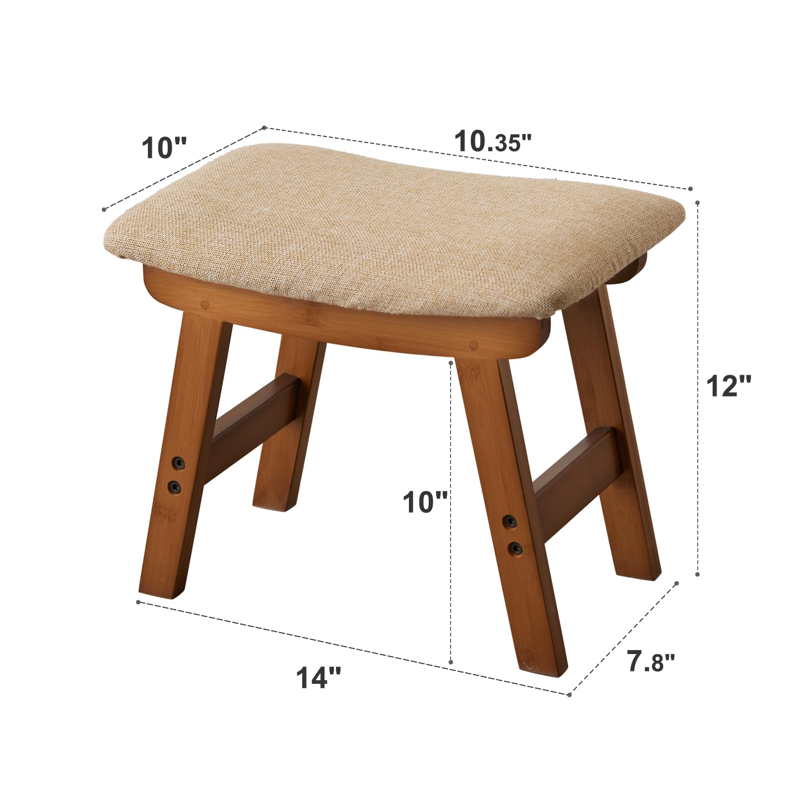 Foot Stool,Ottoman,Bamboo Small Sofa Foot Rest Under Desk,Extra Seating for Living Room, Bedroom and Kitchen(Brown Stool Legs - Beige Surface)