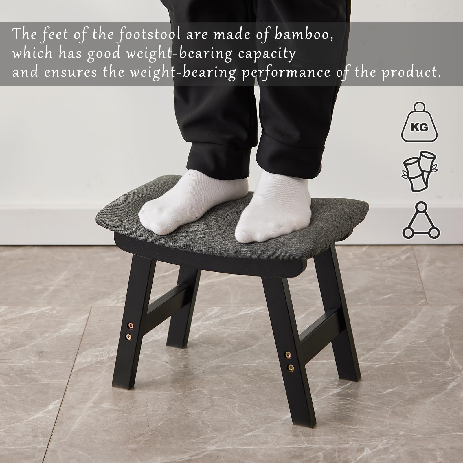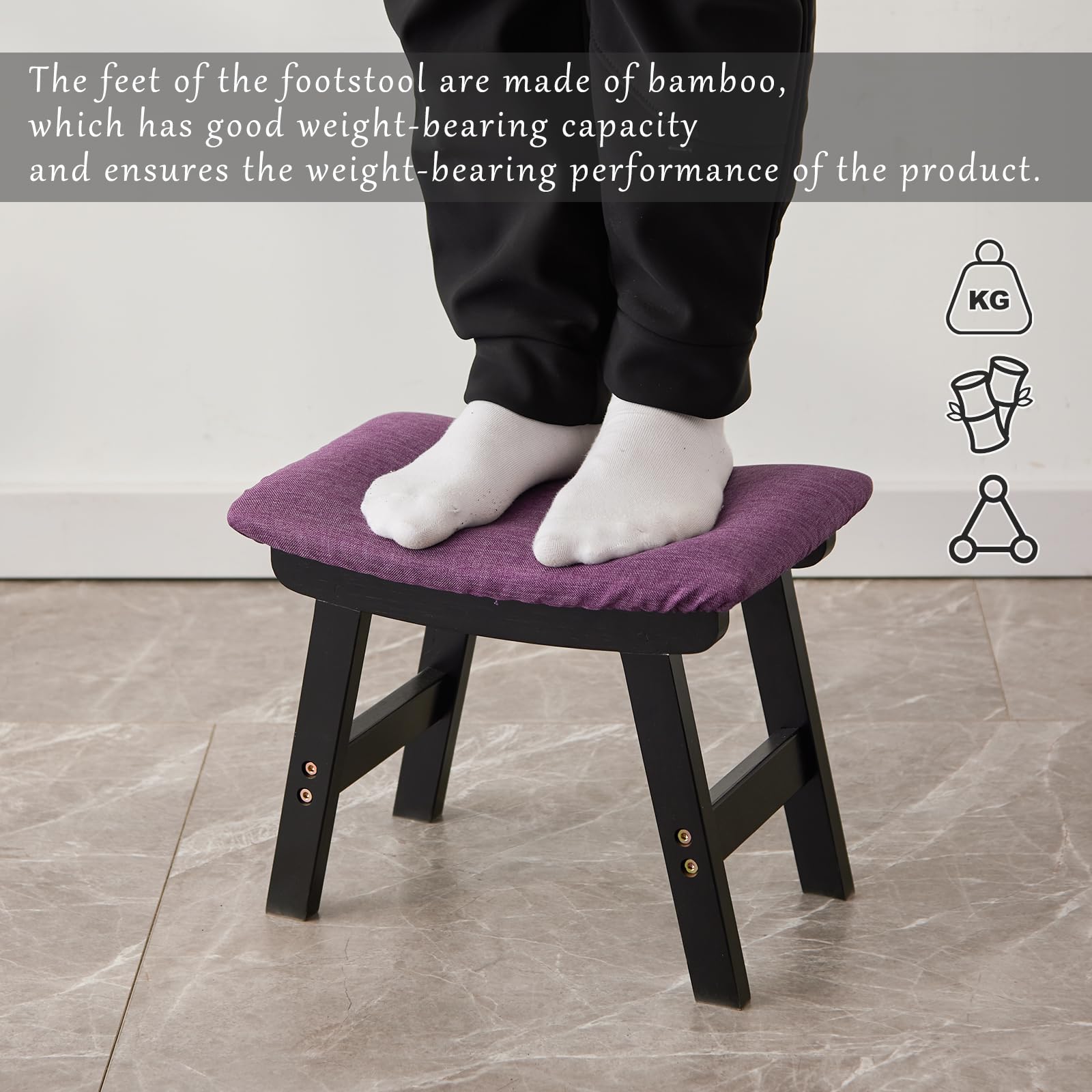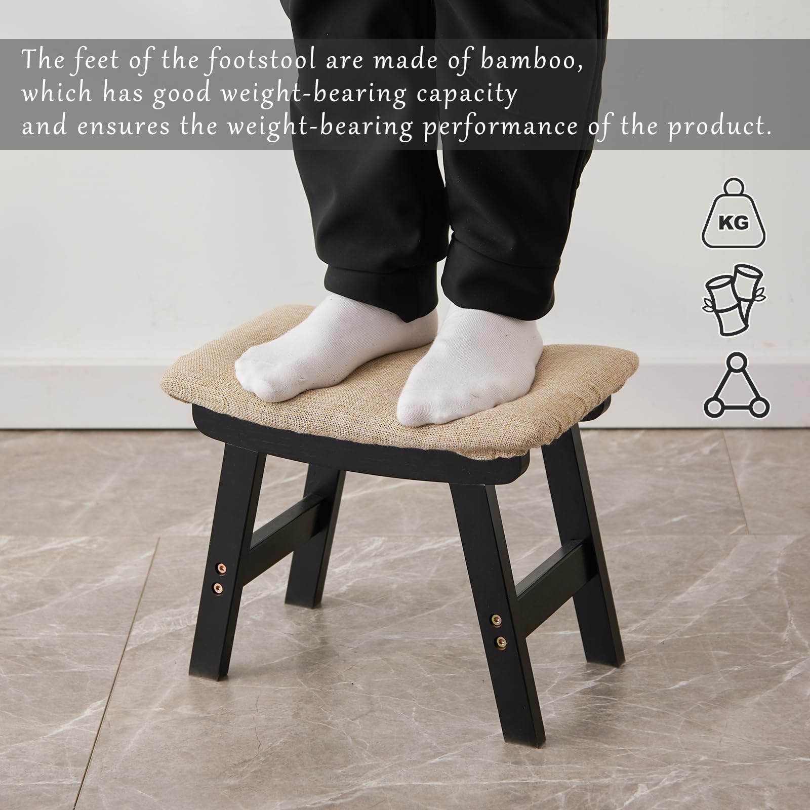 • 【Legs made of bamboo】The feet of the footstool are made of bamboo, which has good weight-bearing capacity and ensures the weight-bearing performance of the product.
