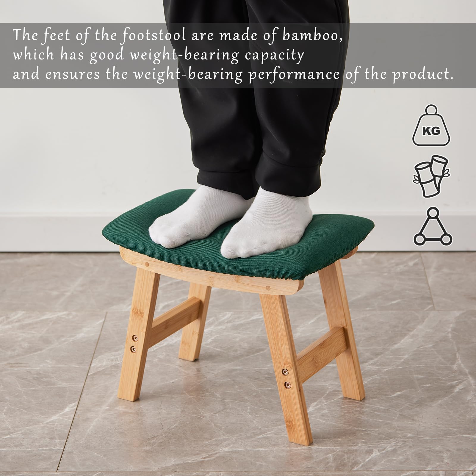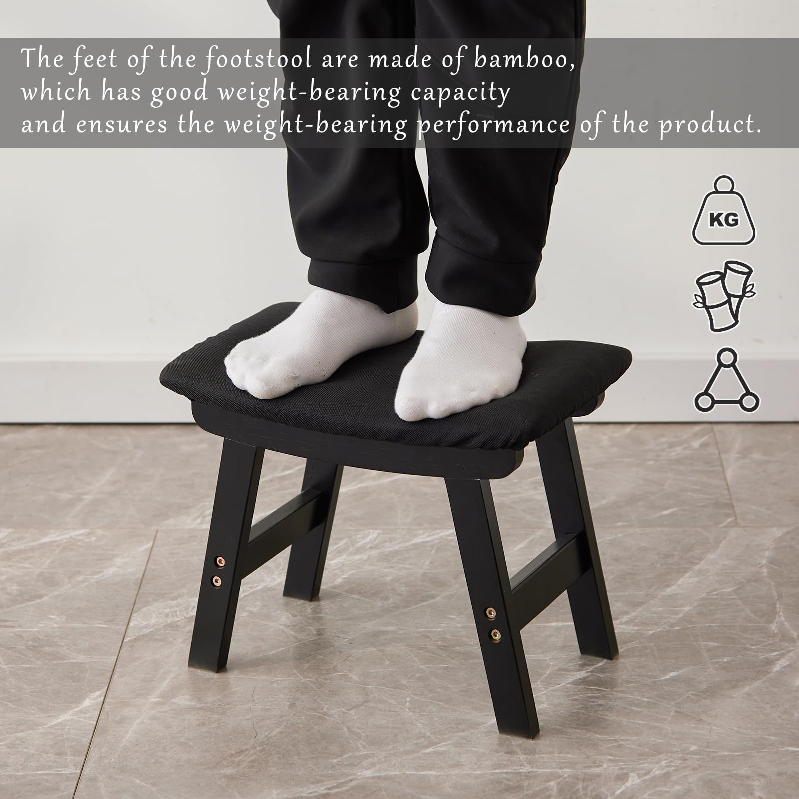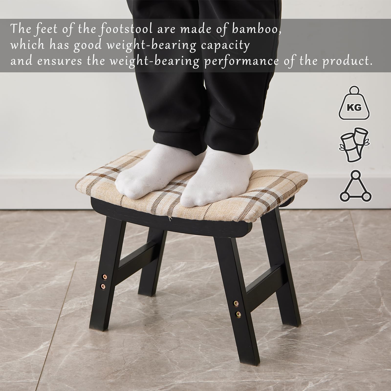 • 【Legs made of bamboo】The feet of the footstool are made of bamboo, which has good weight-bearing capacity and ensures the weight-bearing performance of the product.