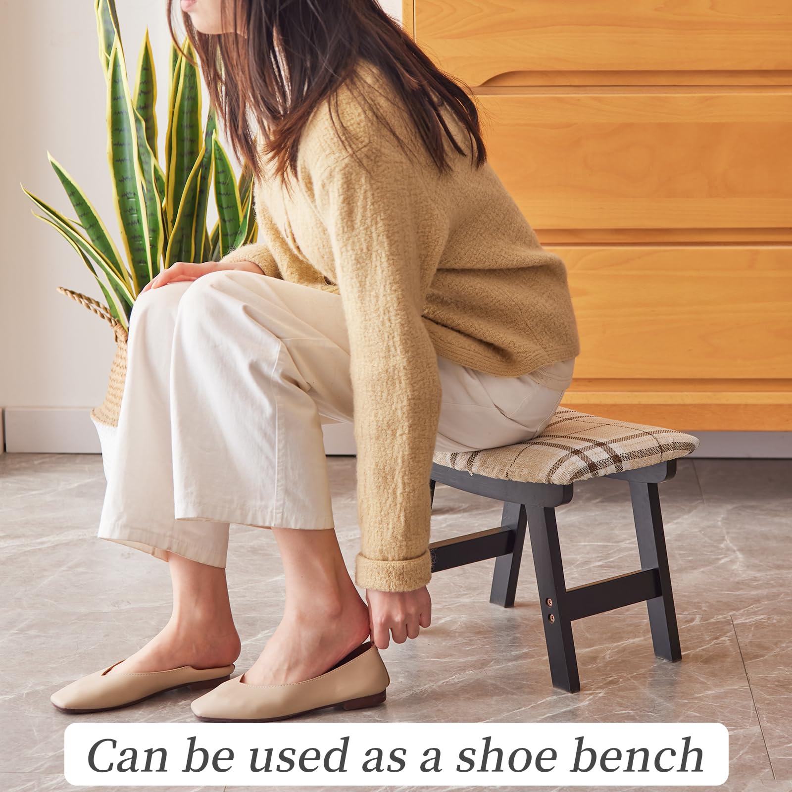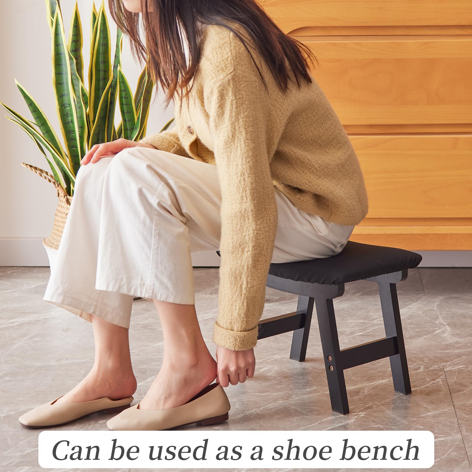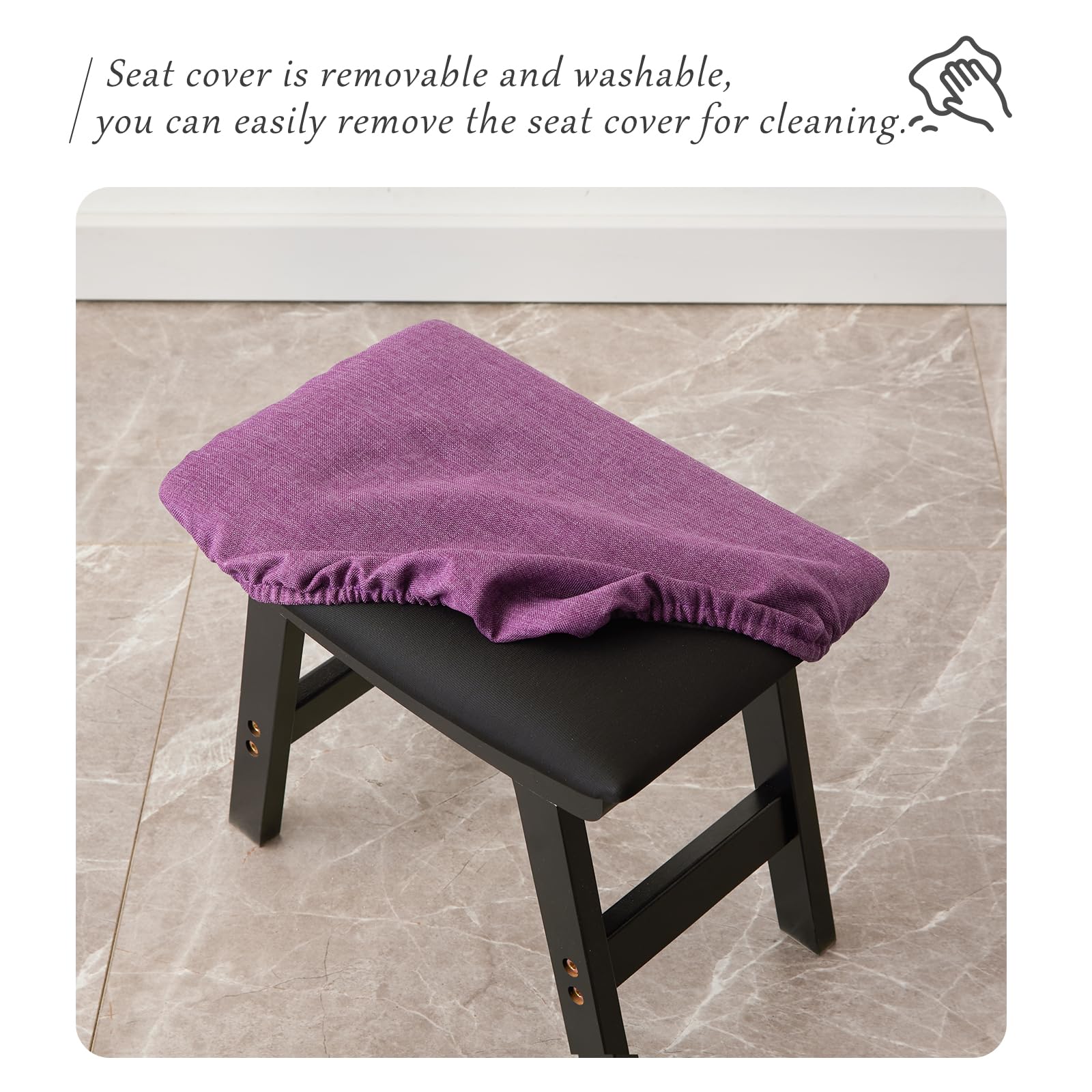 • 【Cushioned seat surface】The surface of the footstool is wrapped with sponge, and the fabric of the seat cover is comfortable to the touch, which makes you feel more comfortable.