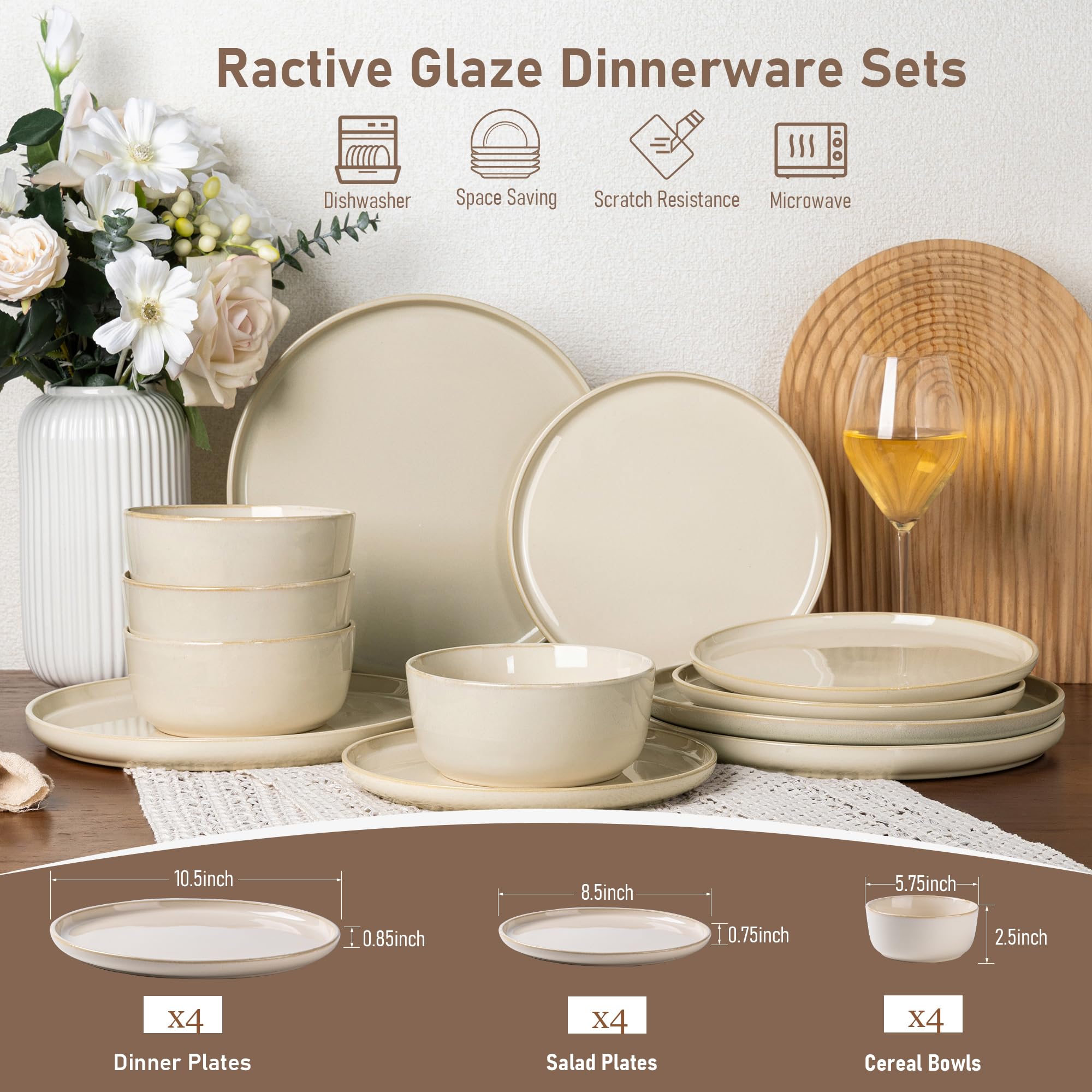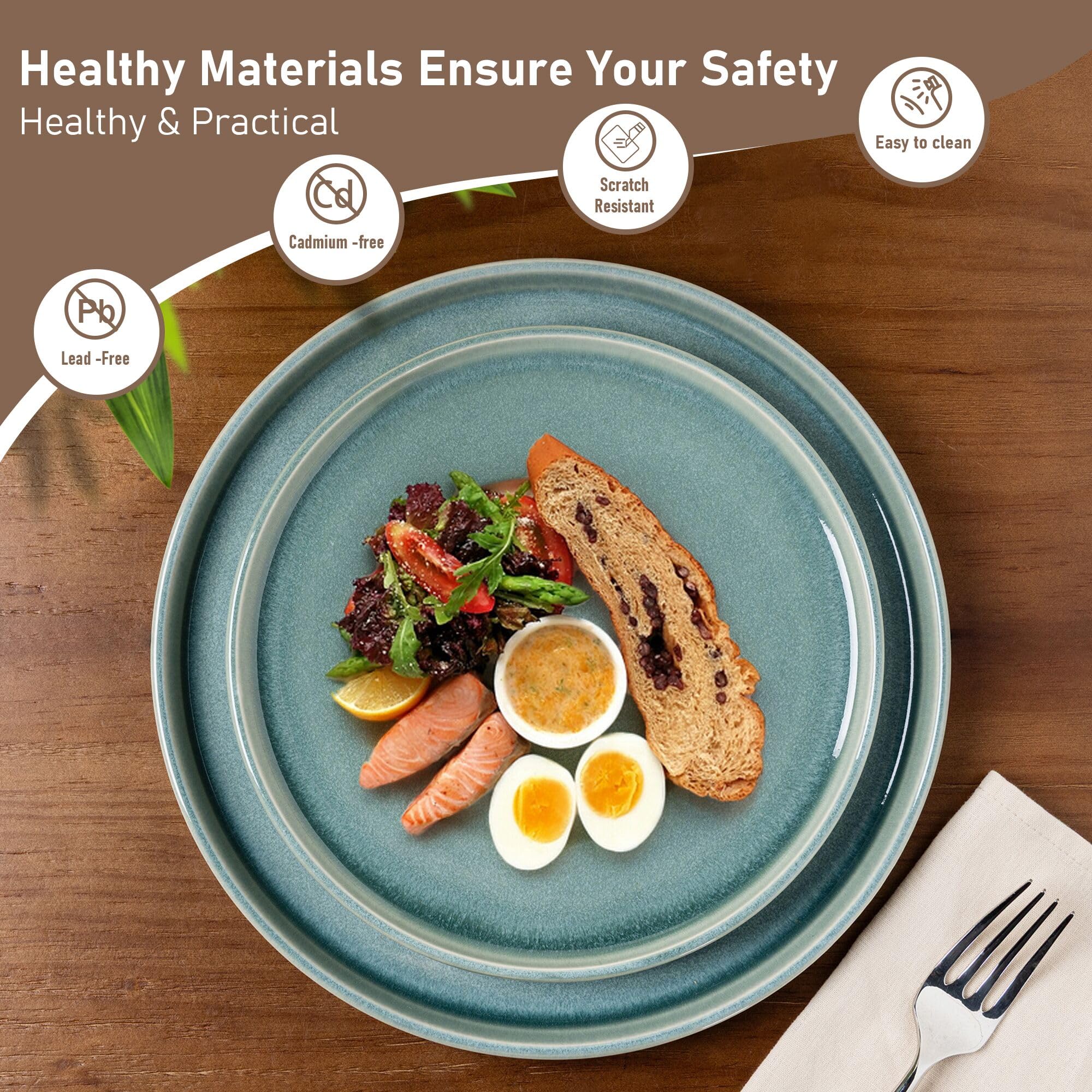 • BEAUTIFUL REACTIVE GLAZE AND SCRATCH RESISTANT: Feature a unique reactive glaze finish, each piece with handcrafted decorative is beautifully individual, adding a touch of sophistication to your table setting, our dishes are fired at 2350℉ for 13 hours making it forming a sturdy and durable scratch resistant glaze, no need to worry about scratches from your forks or knives