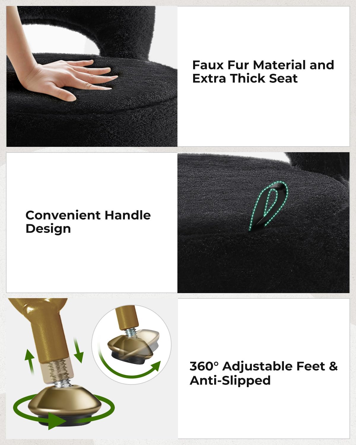• Soft and Luxurious Feel: Crafted from plush furry material, the vanity stool chair provides cloud-like comfort ideal for relaxation or leisure activities like reading