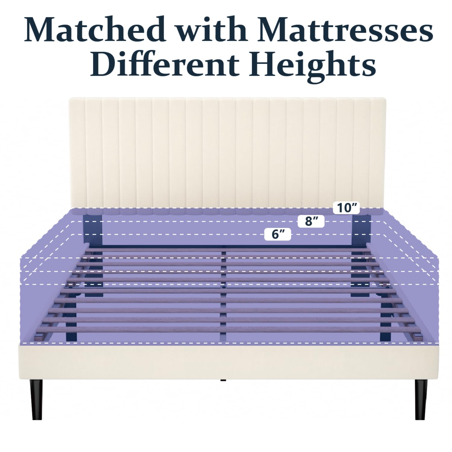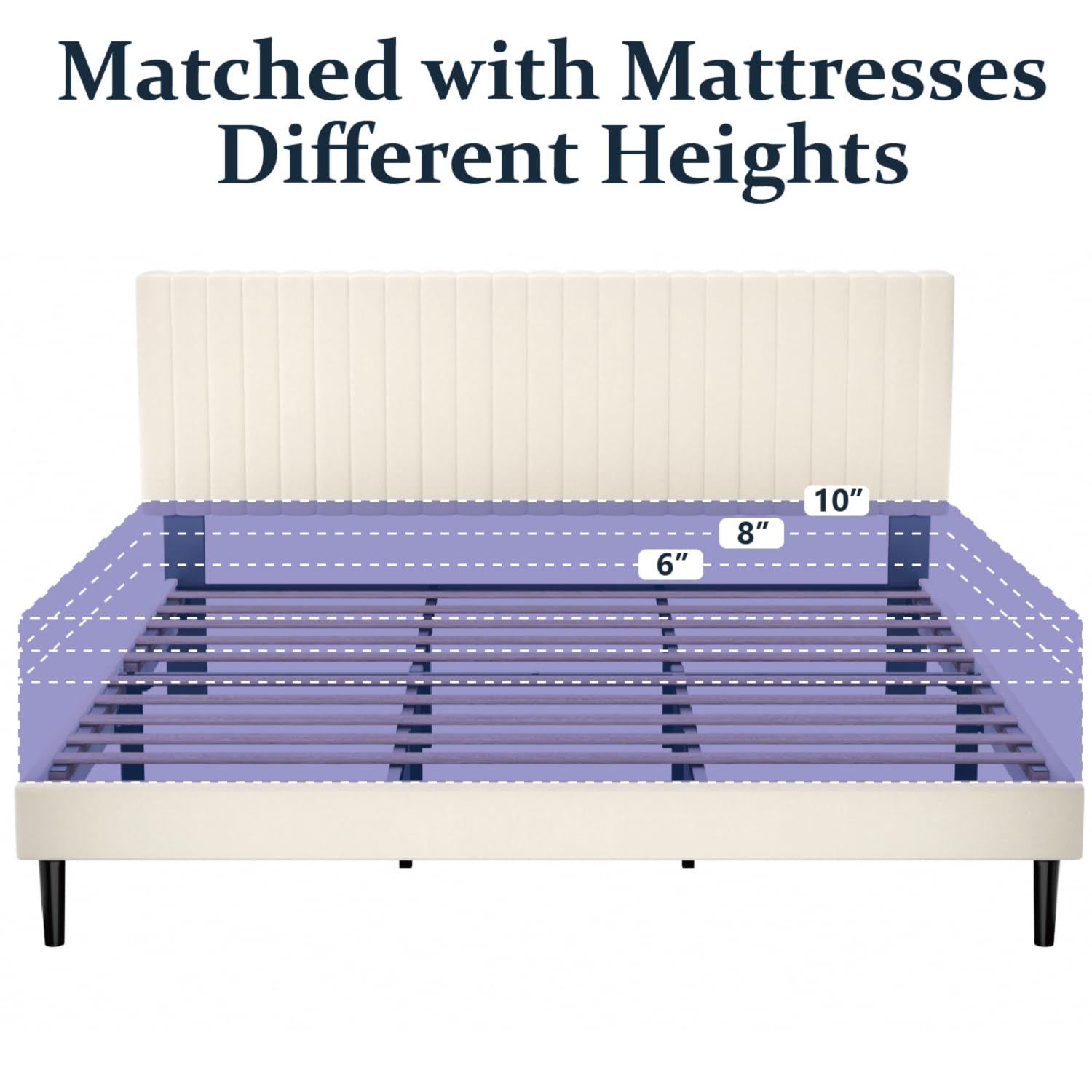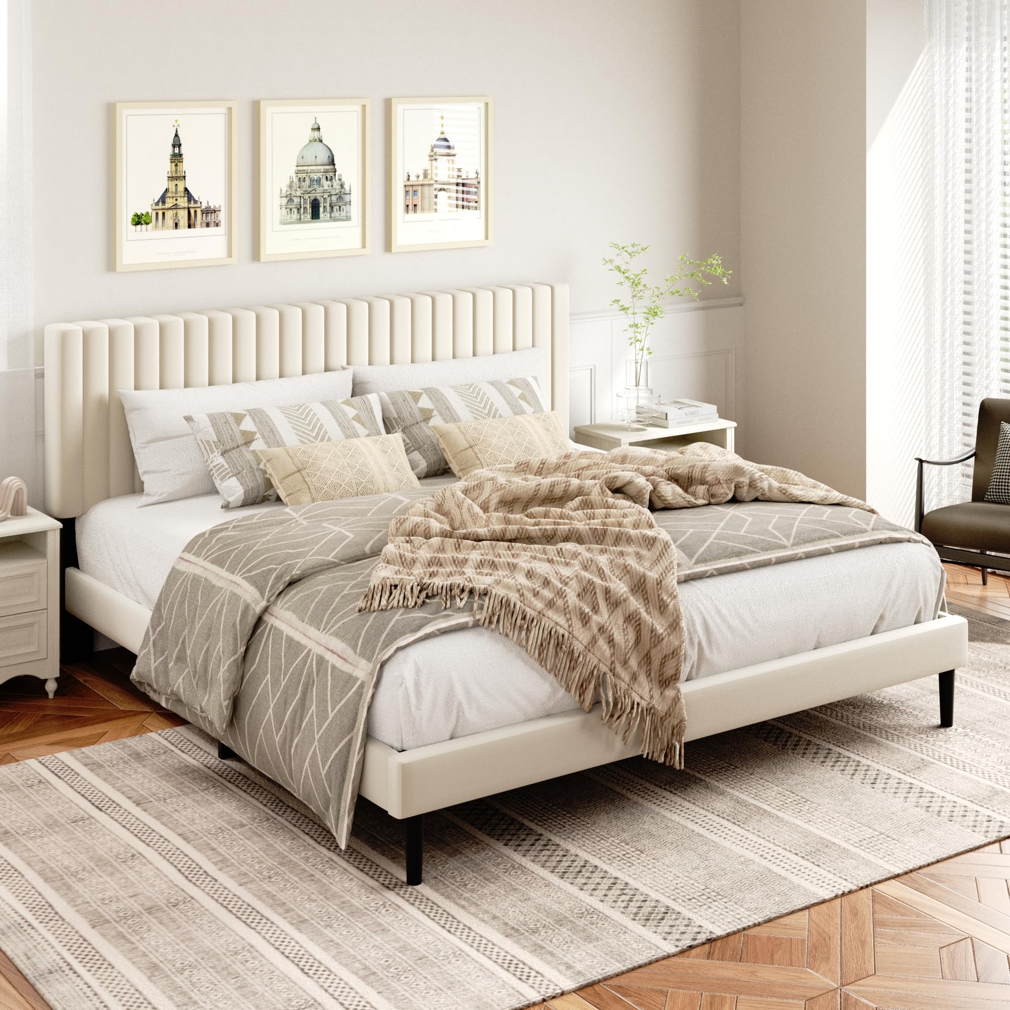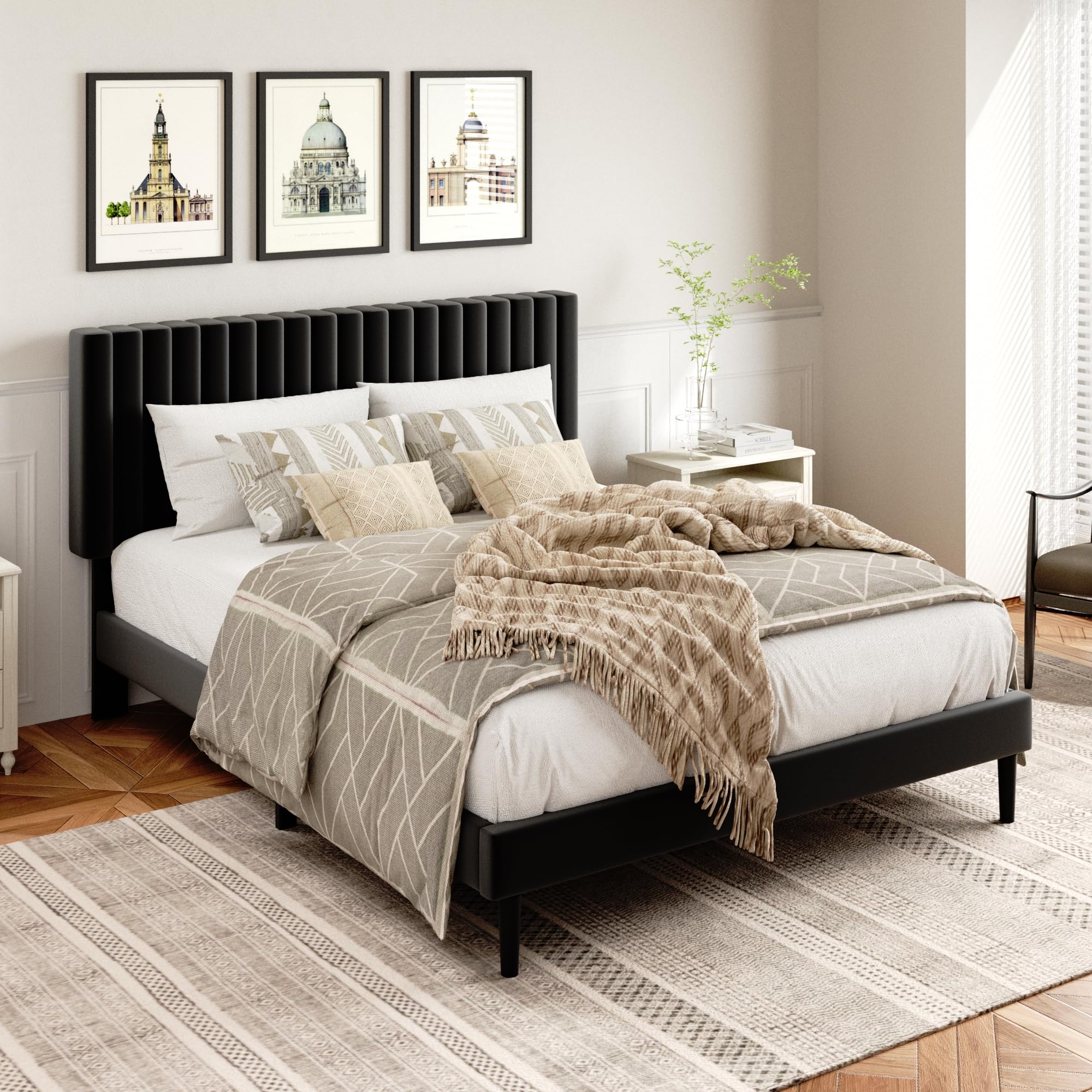 Comfortable and Elegance: The vertical channel tufted headboard is wrapped in smooth velvet and built-in soft foam, introducing a touch of elegance to any bedroom.