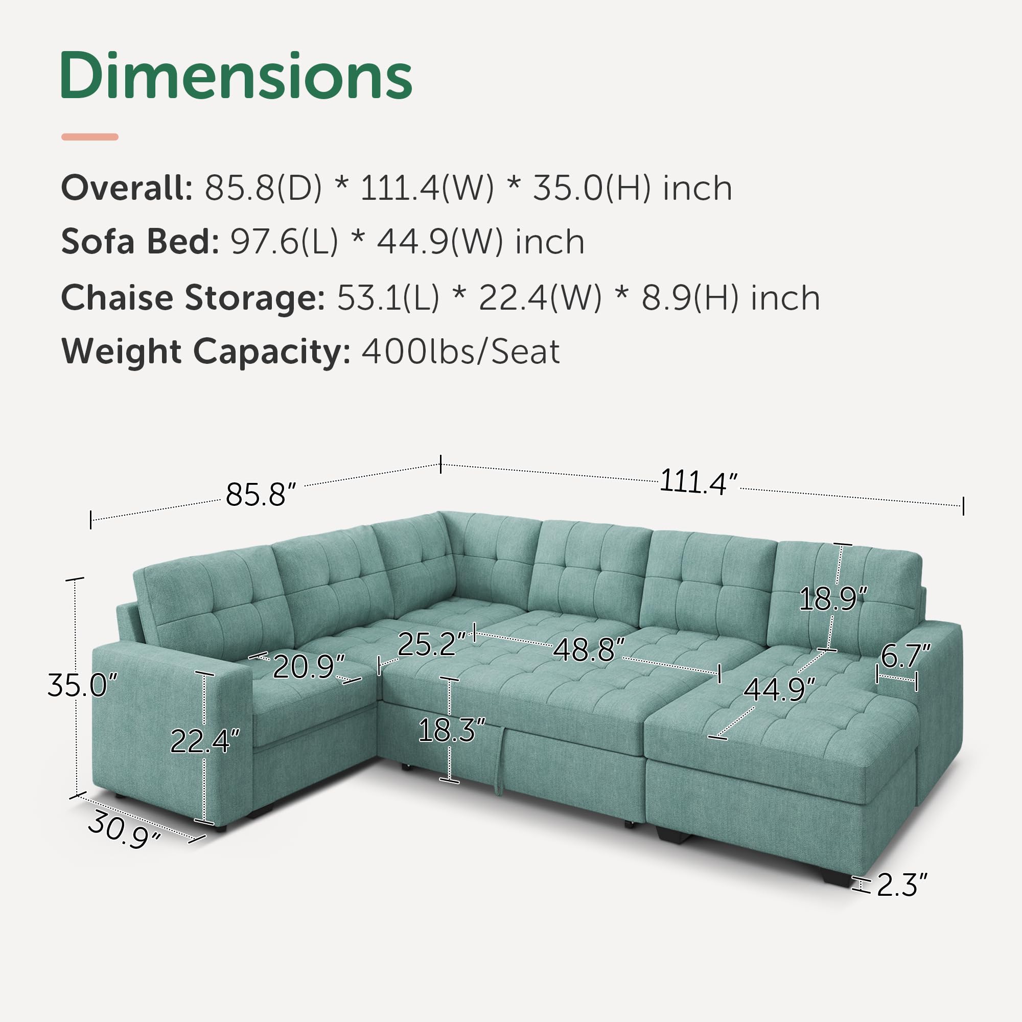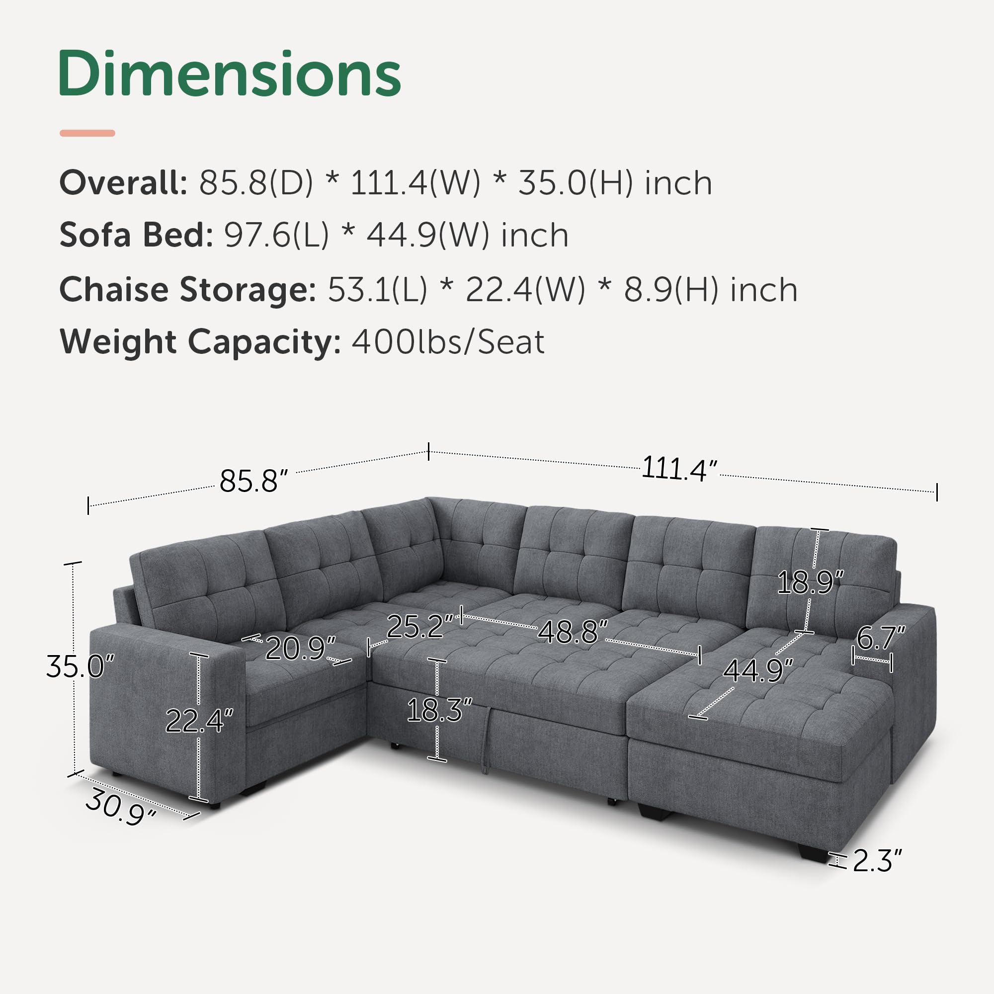 • 【Large Storage Capacity】The sectional couch pullout bed is designed with storage space and can be easily accessed by lifting the cushion. Larger storage space keeps the sofa clean and tidy, making it more comfortable to sit