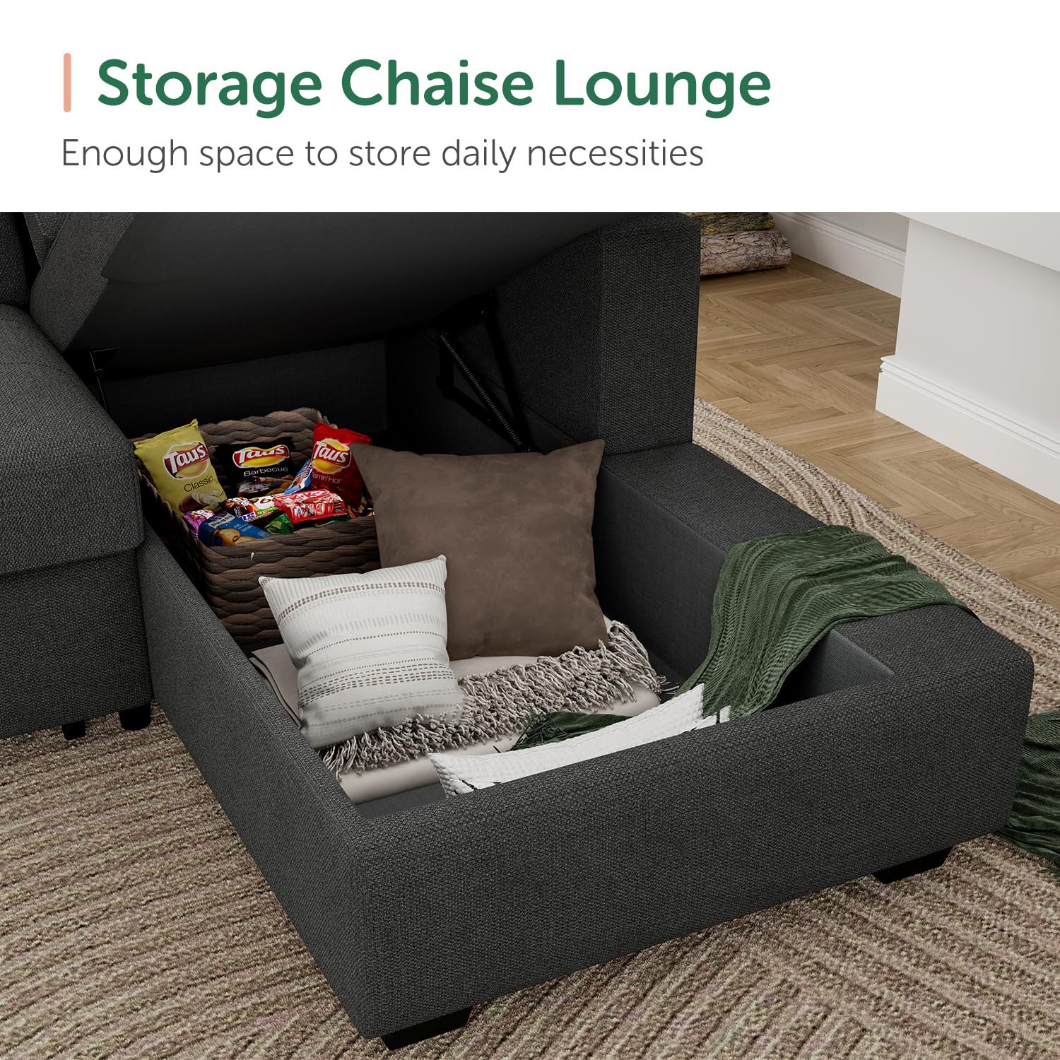 HONBAY Sectional Sleeper Sofa Pull Out Bed with Storage Chaise, Sectional Sofa Couch, Sleeper Couch Bed for Living Room, Dark Grey