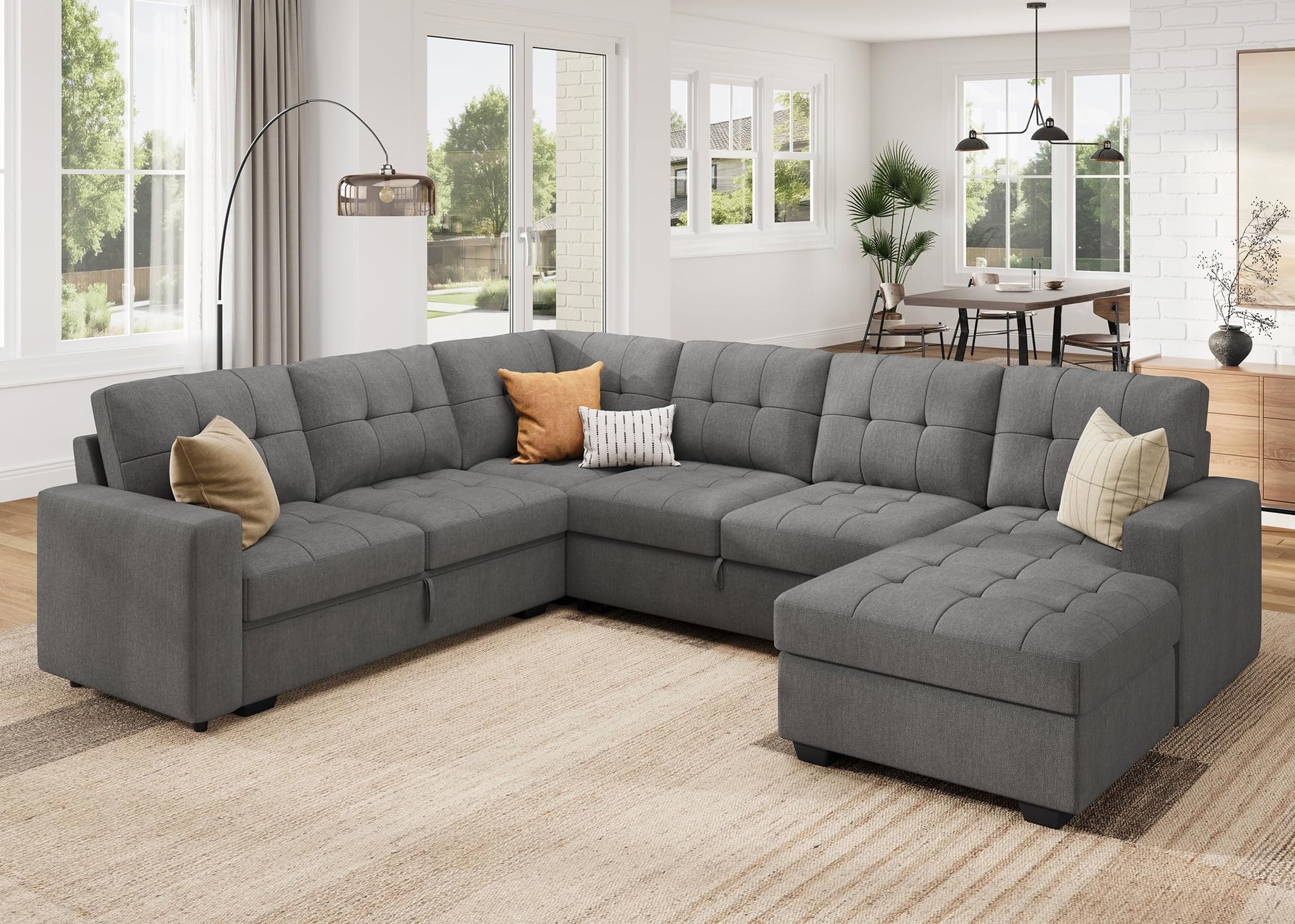 • 【Sectional Sleeper Sofa Bed】Invisible pull-out bed saves space and can be easily converted between sectional sofa and sleeper sofa. U shaped couch is designed to pull out the middle section into a sleeper couch, which allows for maximum utilization and provides you with a place to rest