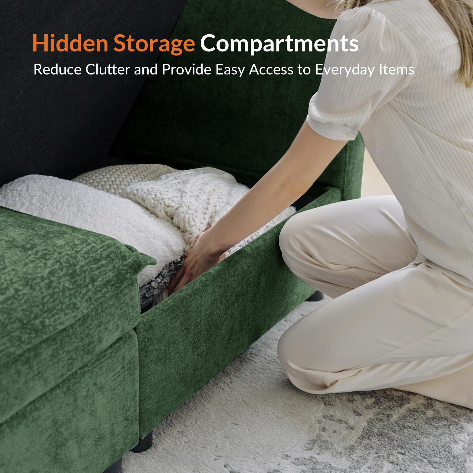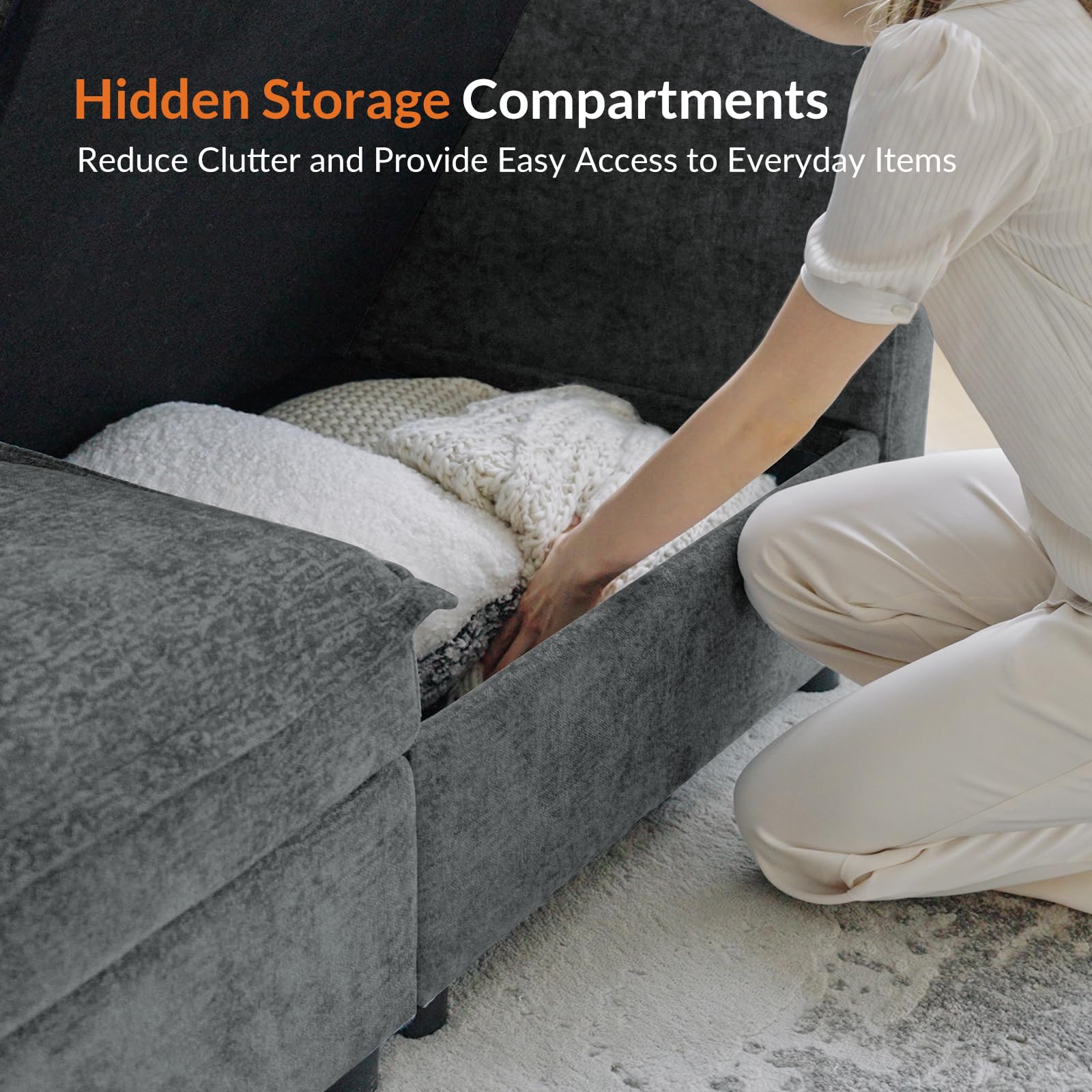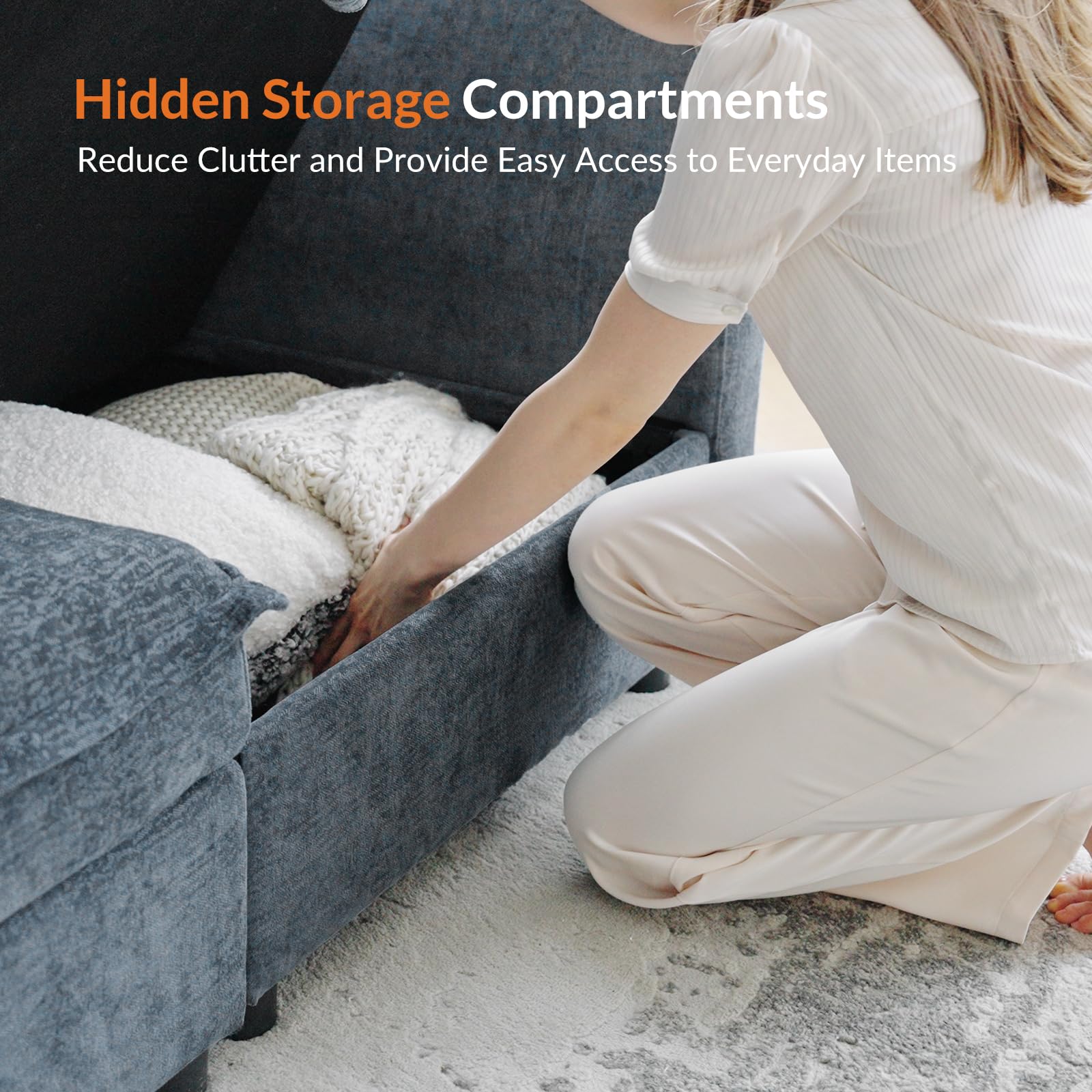 • Hidden Storage Space: Every seat includes a built-in storage compartment, ideal for blankets, toys, remotes, and more. A smart way to reduce clutter and keep your living area neat, organized, and efficient.